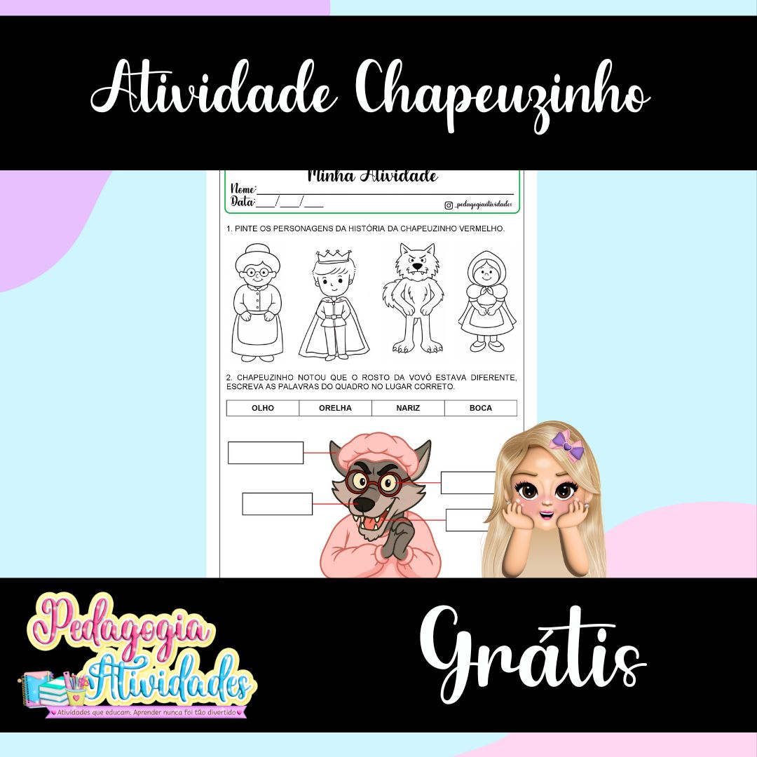 Hoje você pode baixar uma das atividades do Kit Pedagógico – Chapeuzinho Vermelho sem custo algum 🎁