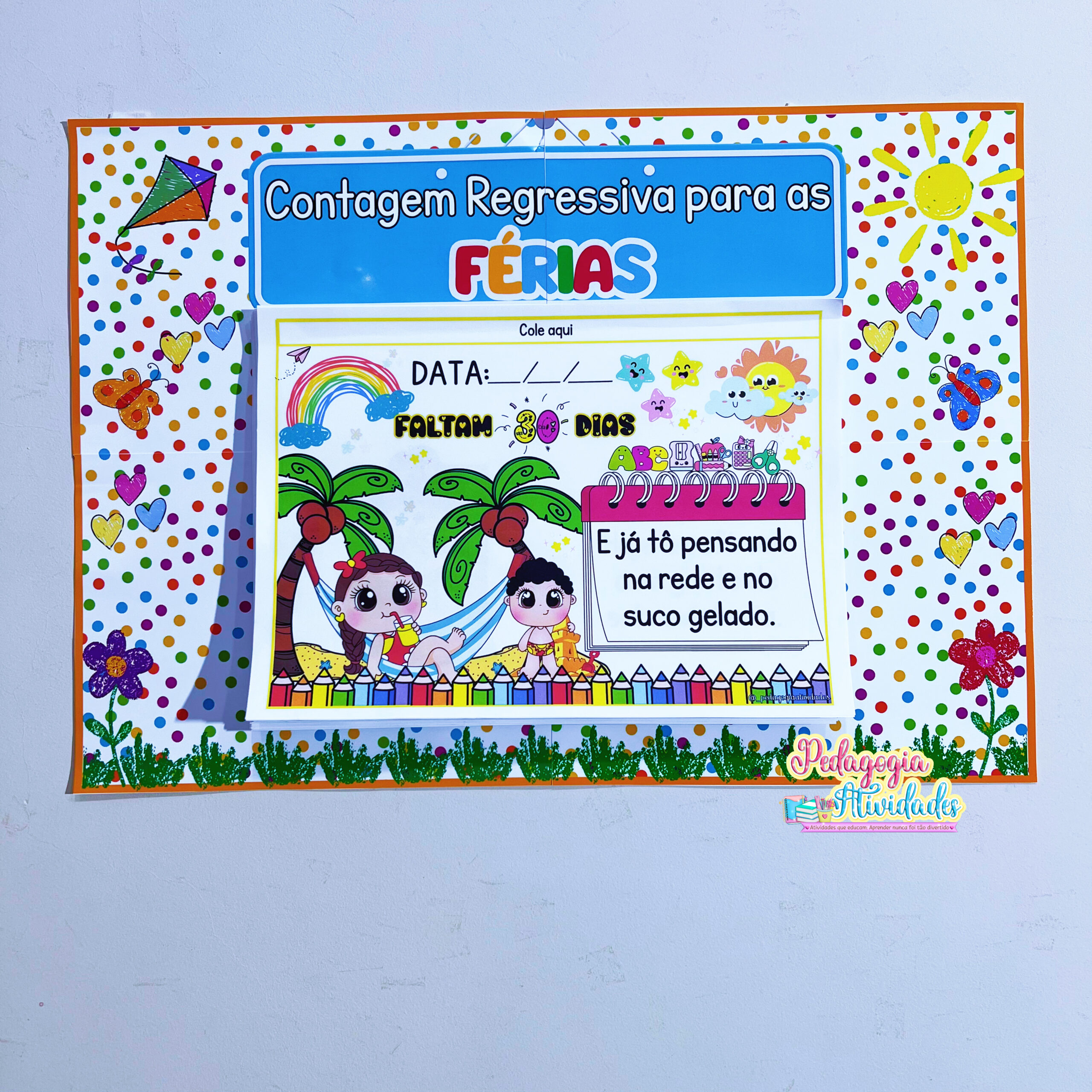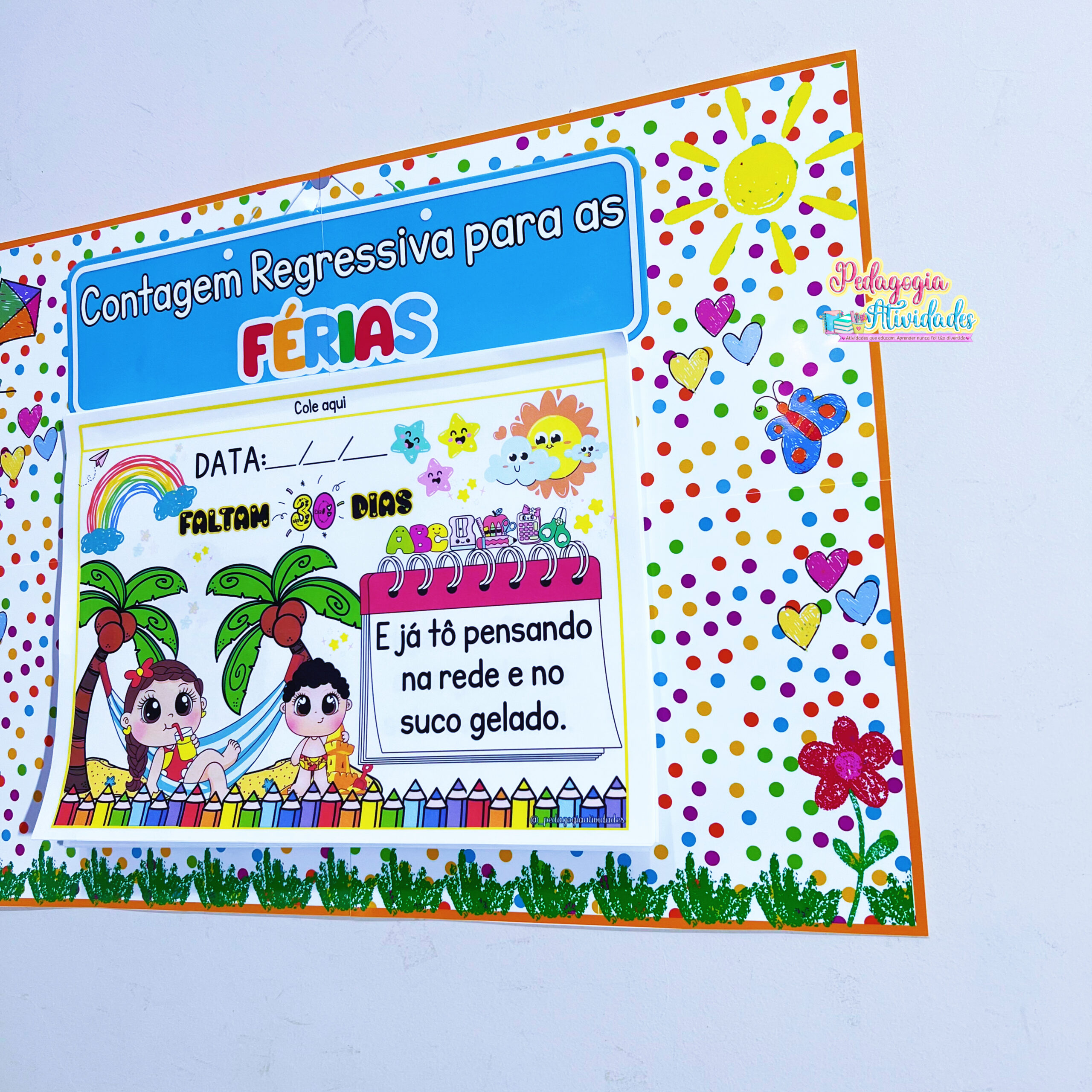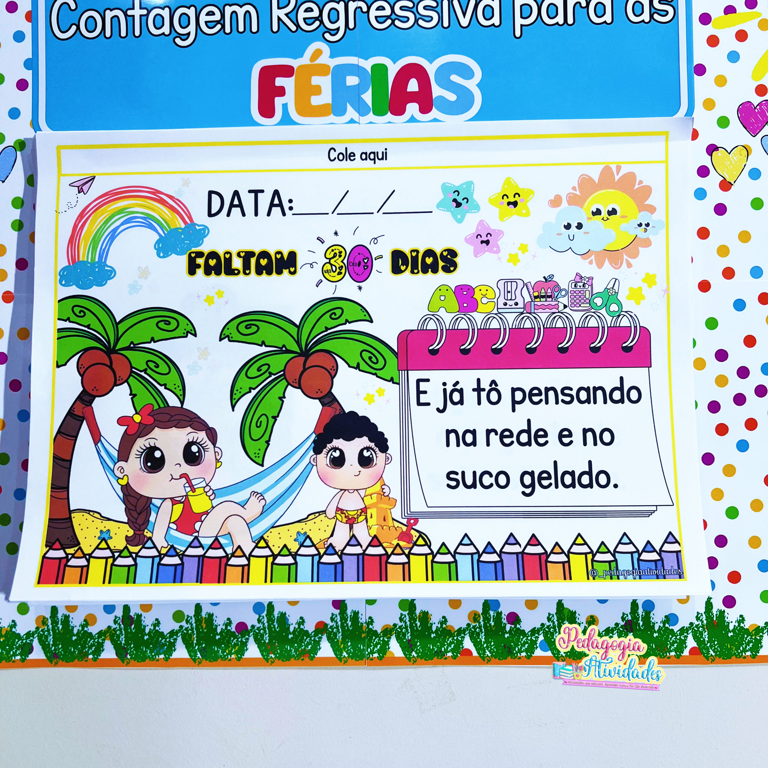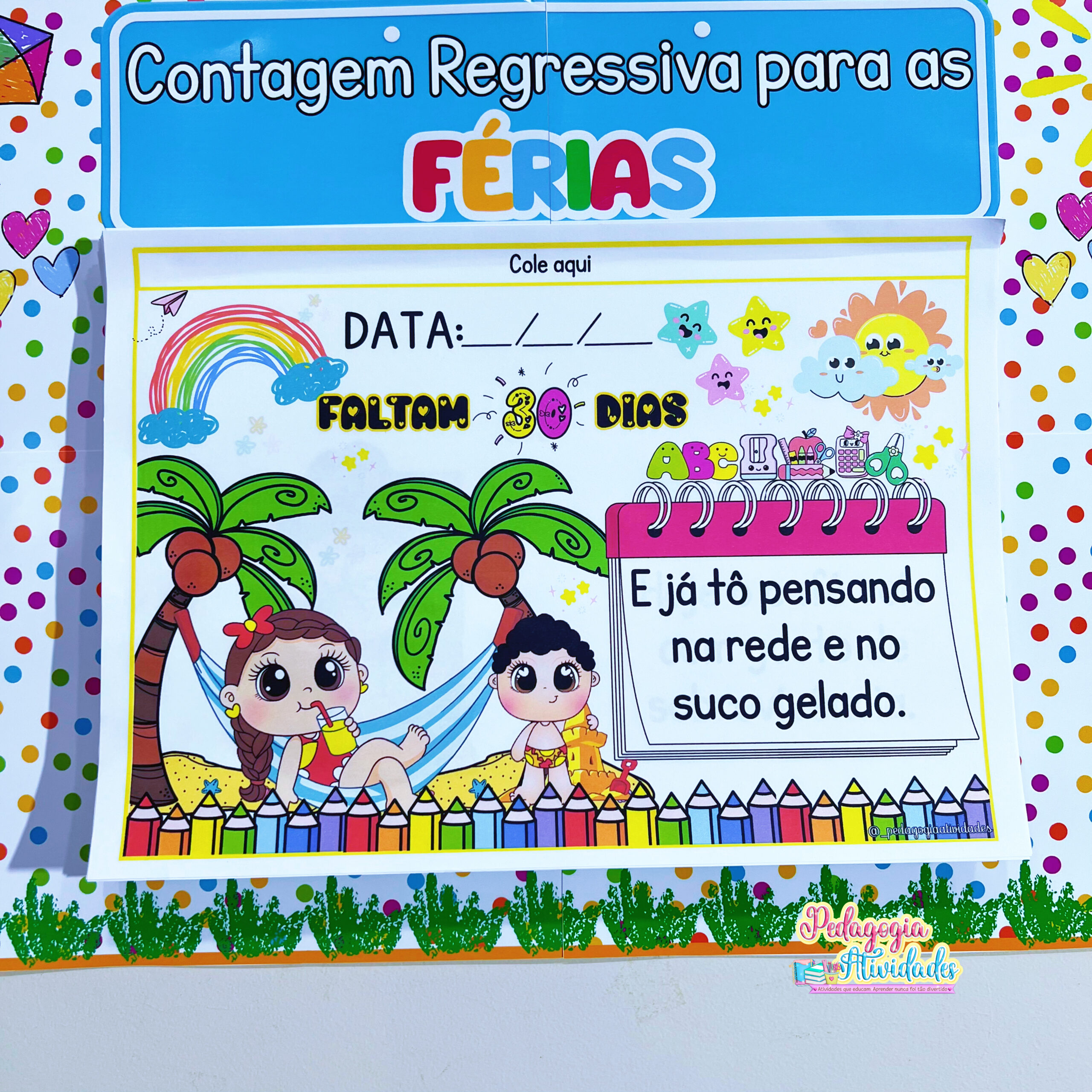 As crianças vão adorar acompanhar os 30 dias que faltam para as férias, colando o calendário no mural e marcando, com muita empolgação, cada dia que passa até o descanso merecido! 😍