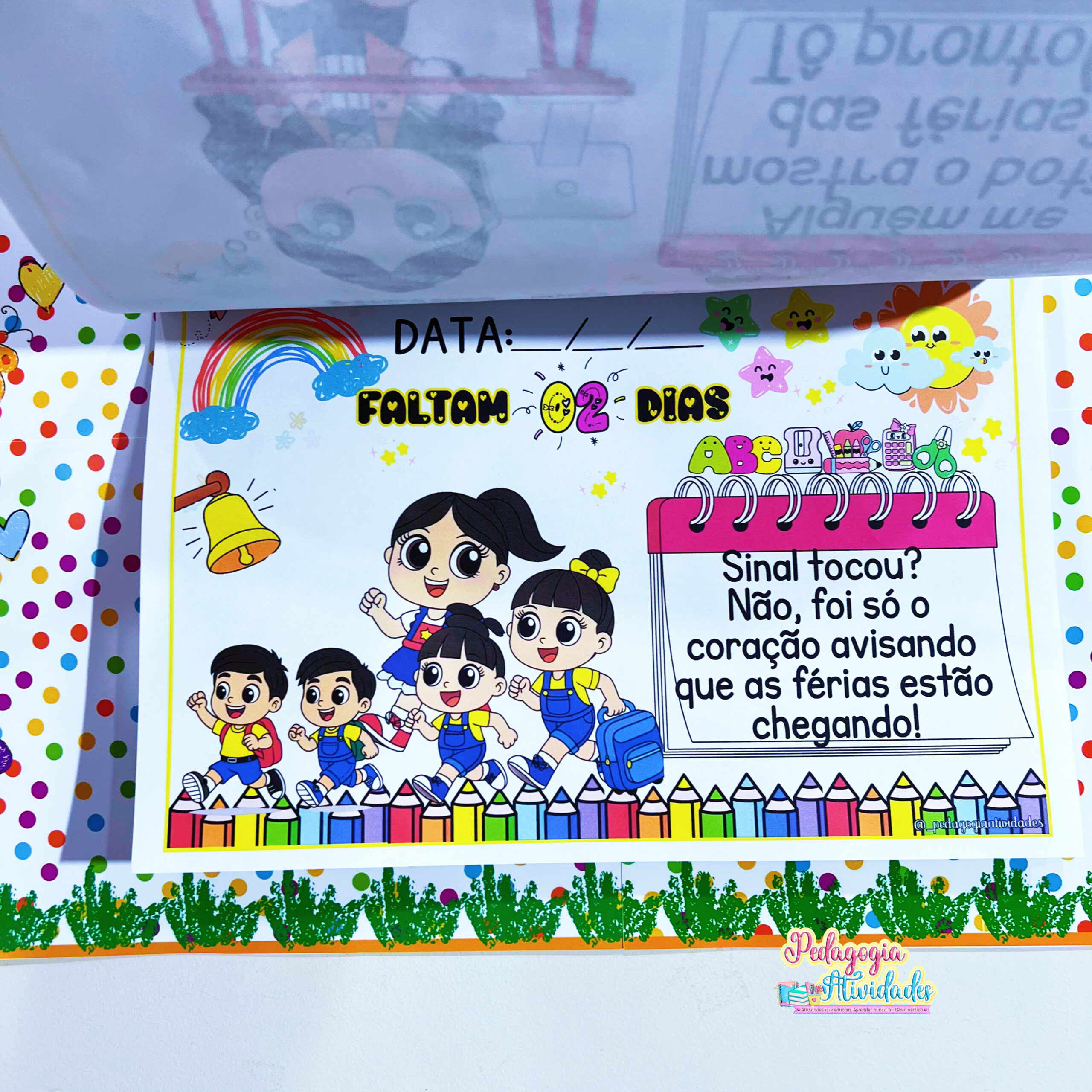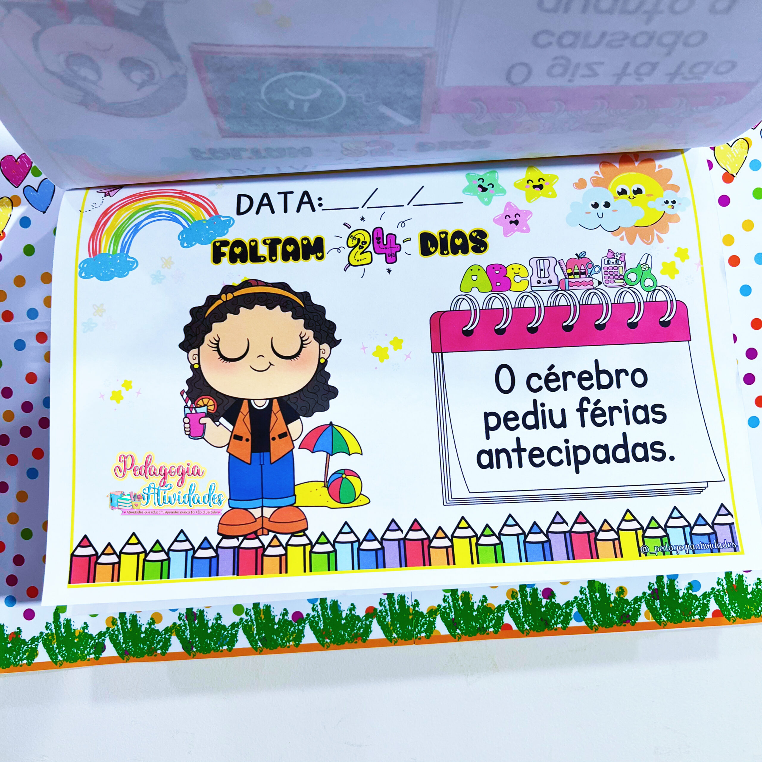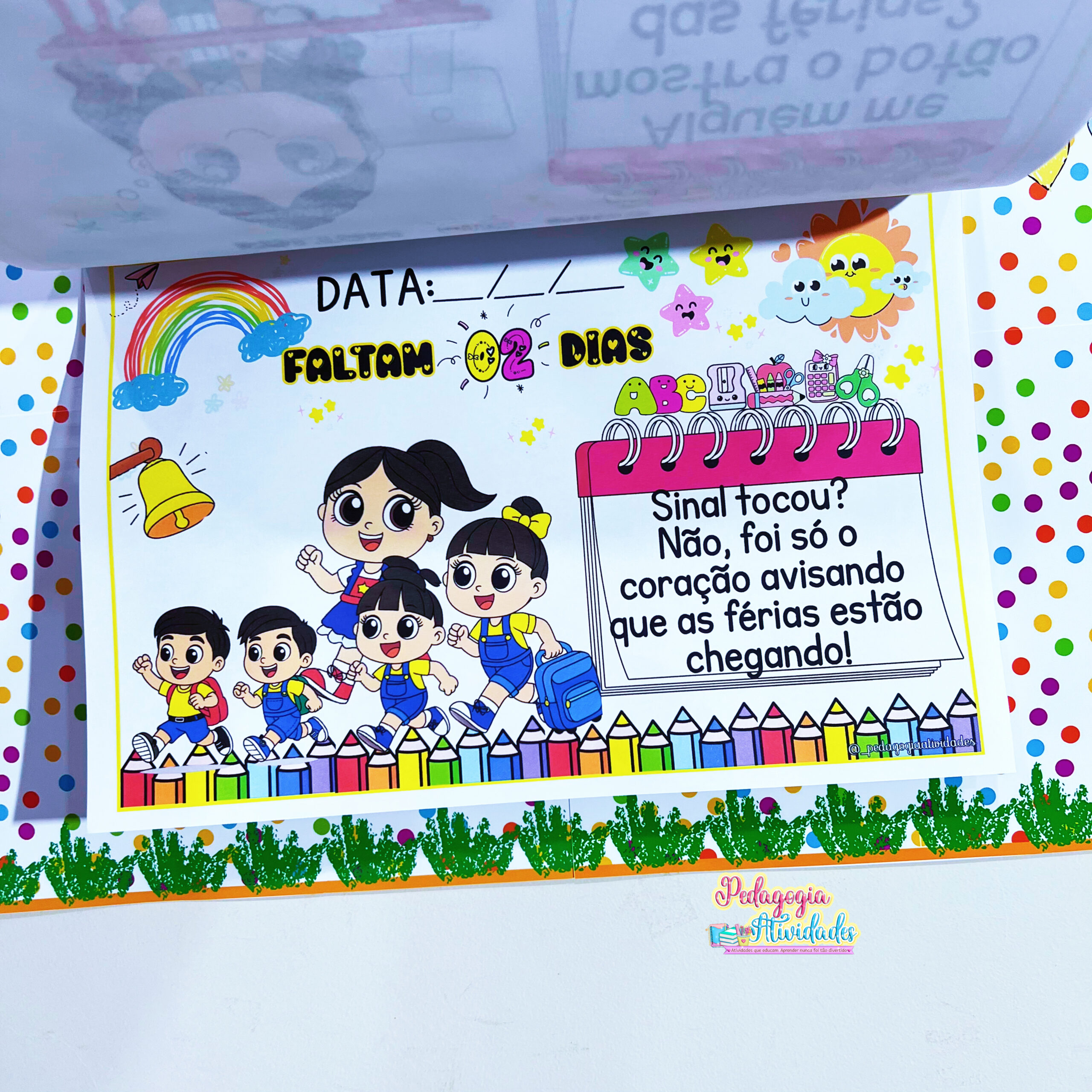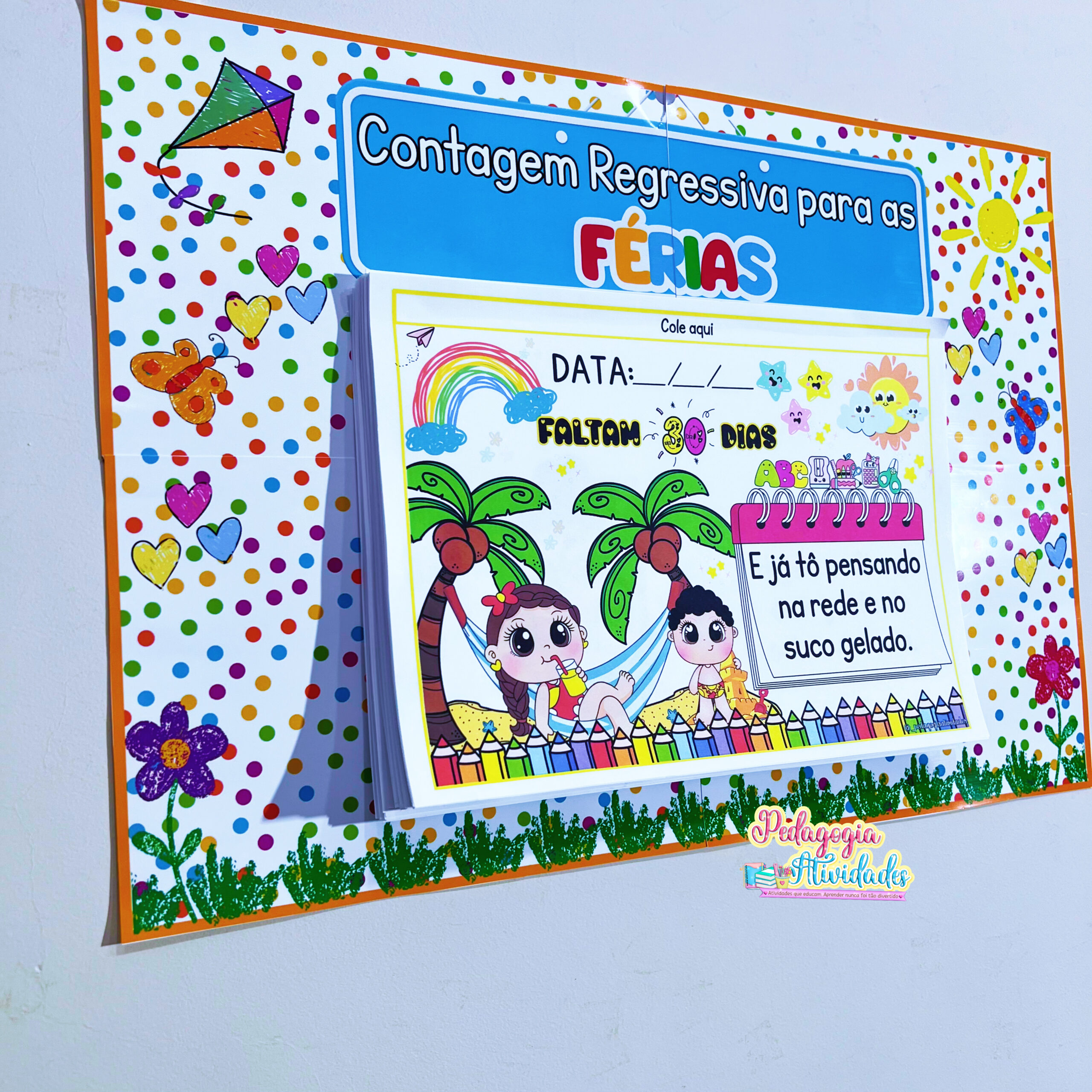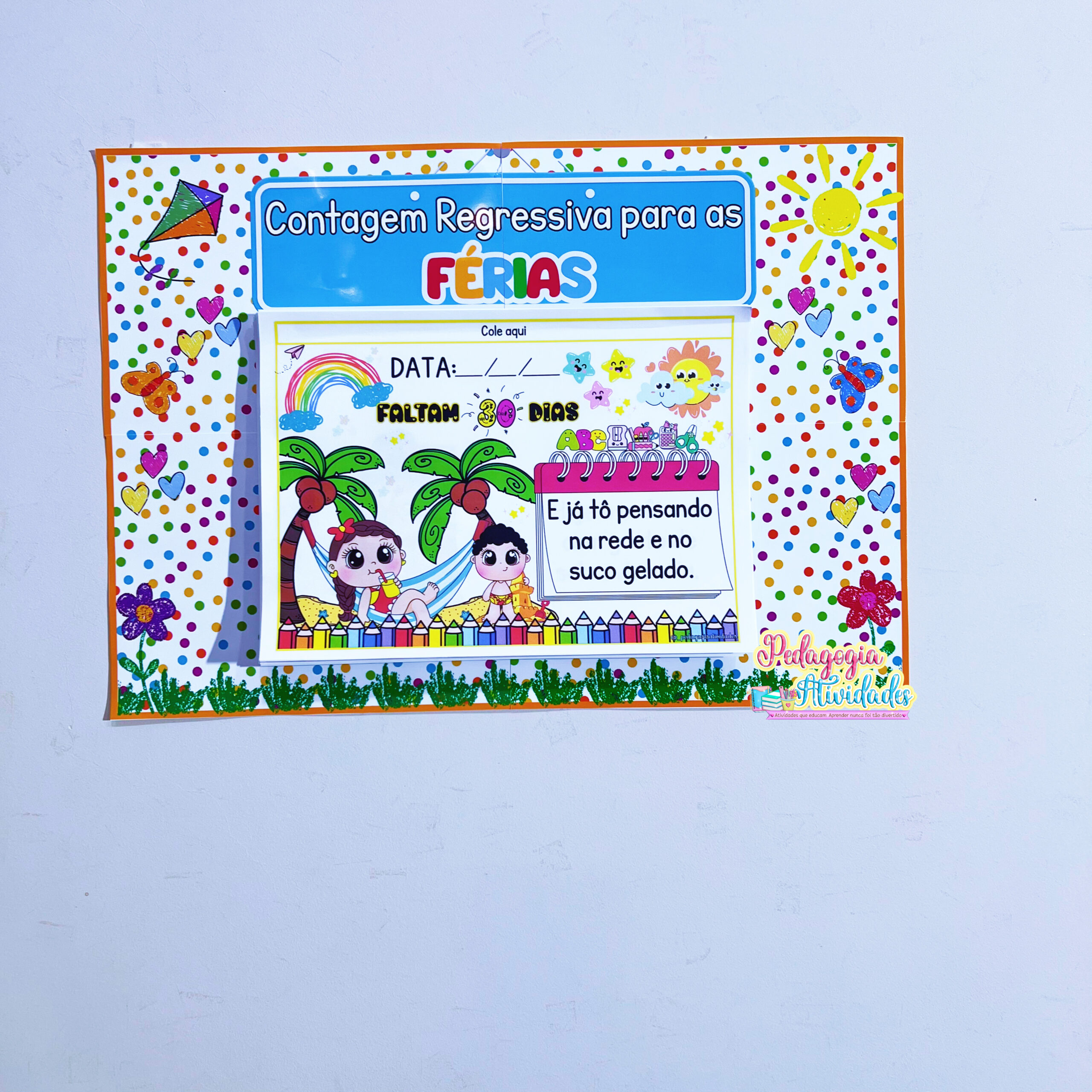 As crianças vão adorar acompanhar os 30 dias que faltam para as férias, colando o calendário no mural e marcando, com muita empolgação, cada dia que passa até o descanso merecido! 😍