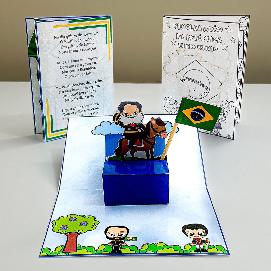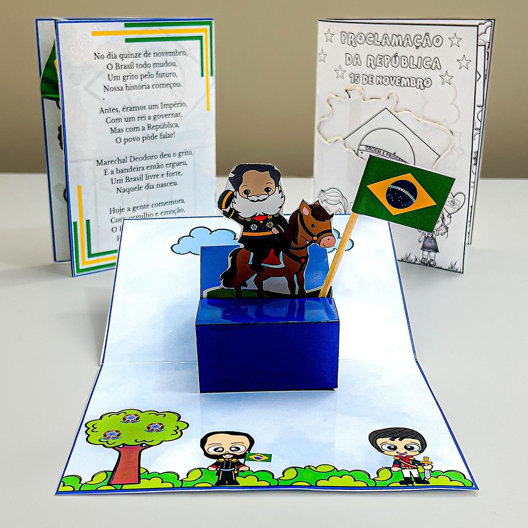 Uma maneira divertida e interativa de ensinar as crianças sobre a Proclamação da República enquanto elas montam e personalizam um cartão 3D!