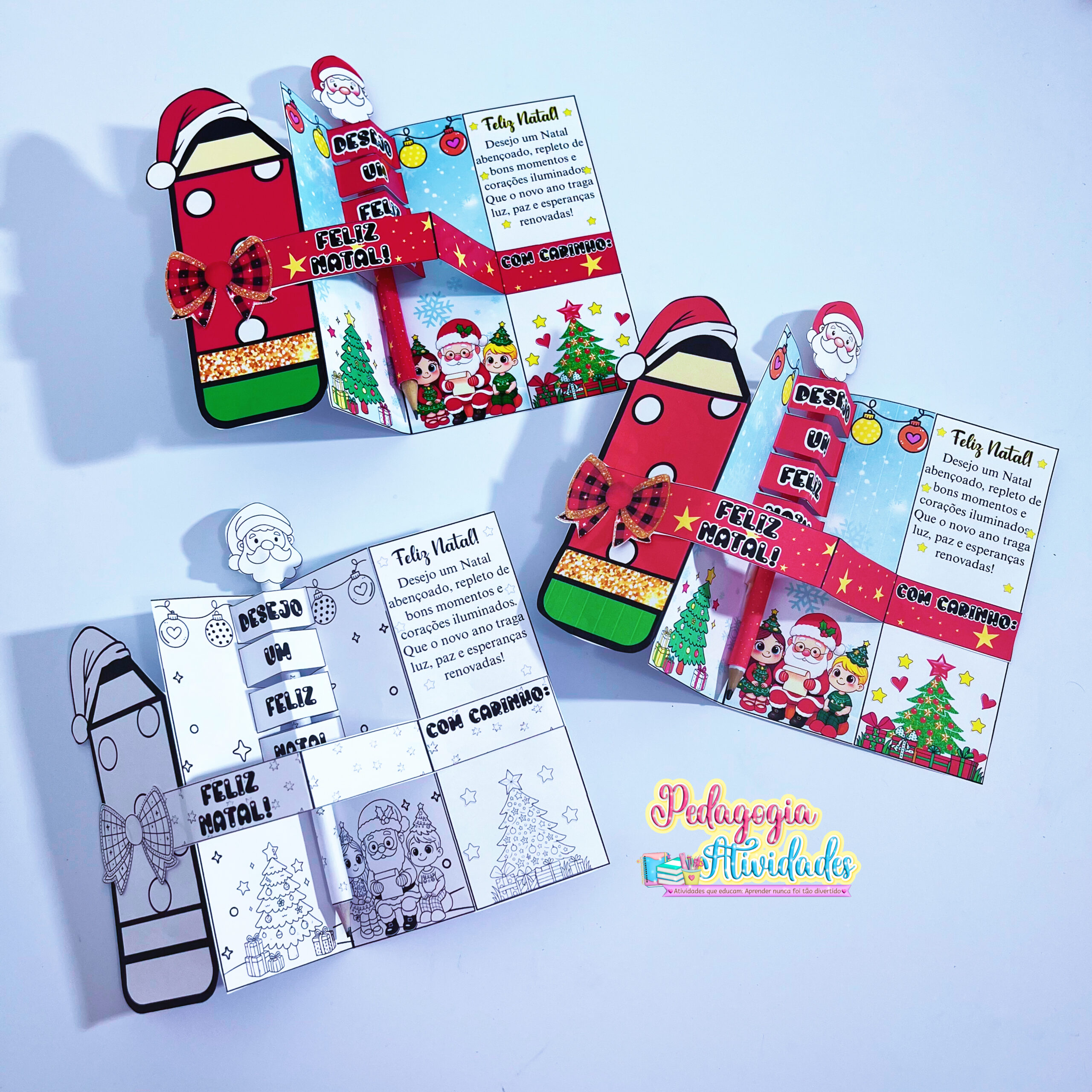 Prepare-se para montar uma lembrancinha diferente, divertida e super criativa — o Cartão 3D de Natal com lápis do Papai Noel! 🎁💫