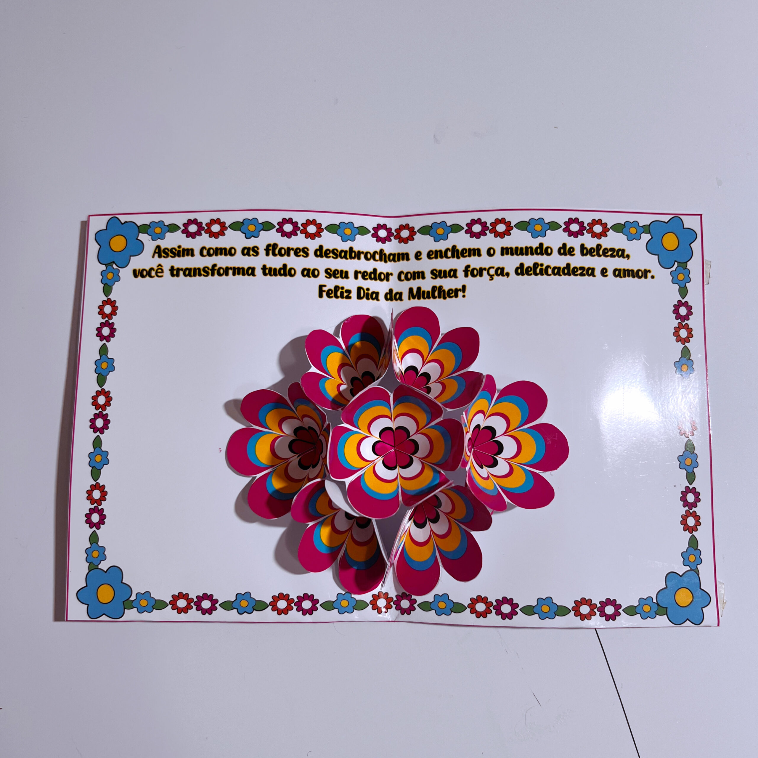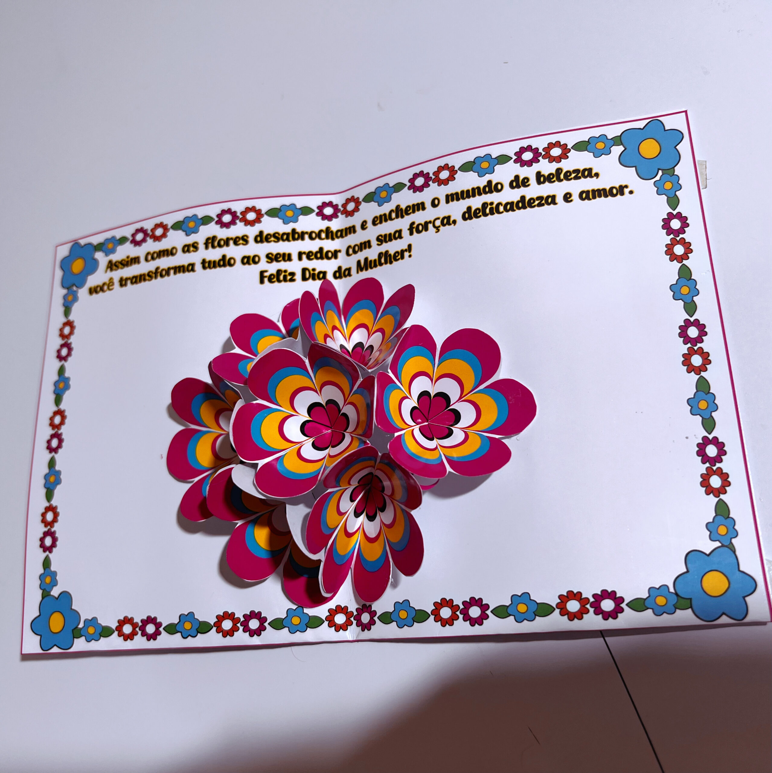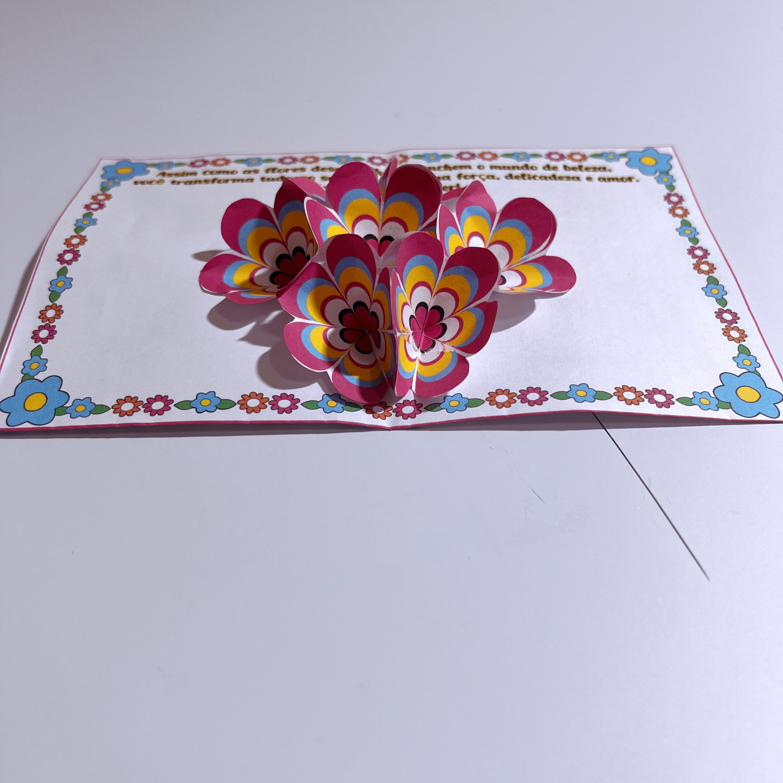 ✔️ Cartão interativo: ao abrir, lindas flores se revelam junto a uma mensagem especial;