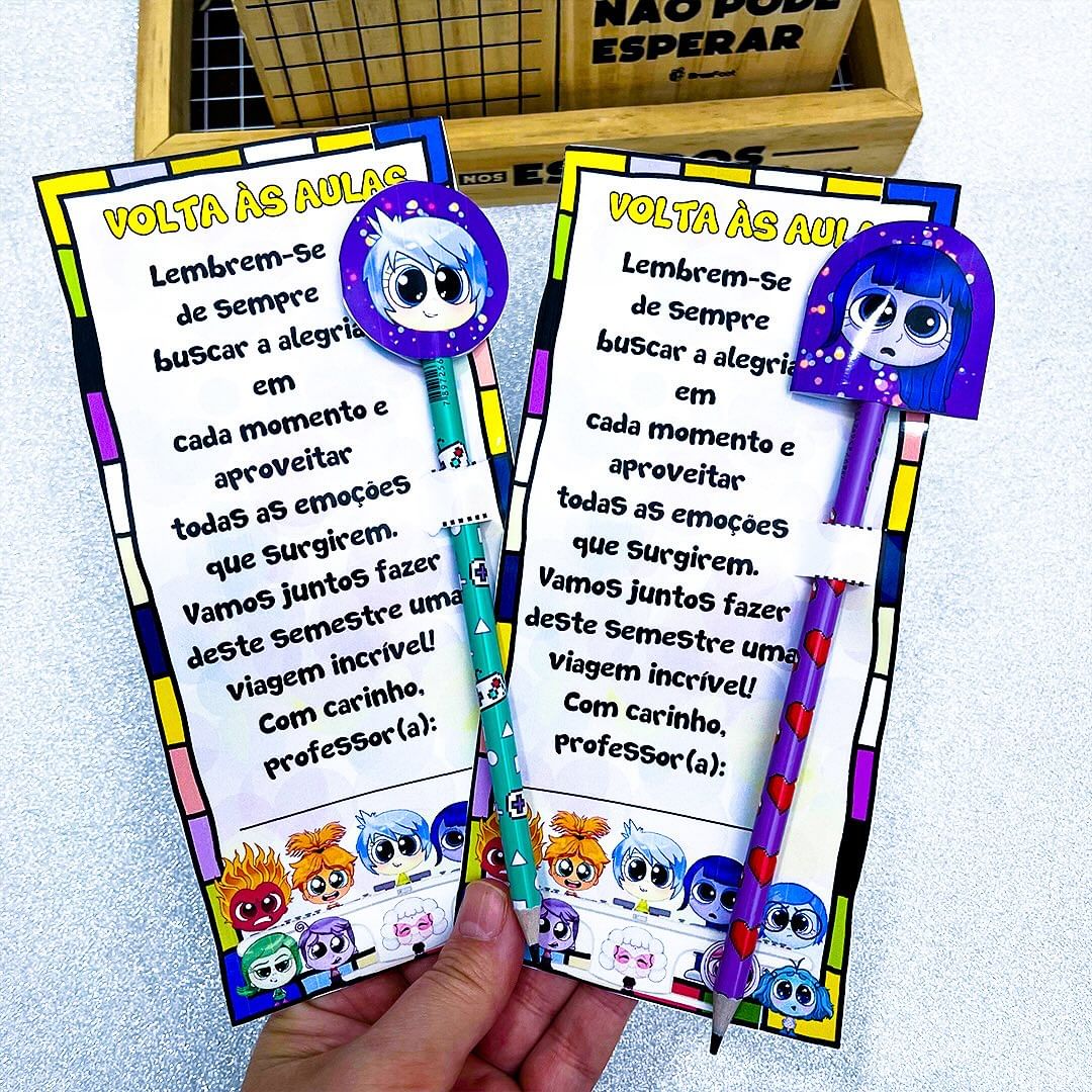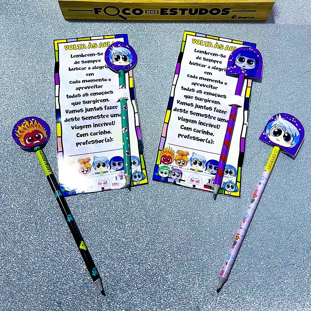 Inspirado no filme Divertida Mente, o cartão é ideal para personalizar com lápis e ponteiras, trazendo ainda mais alegria para as crianças.