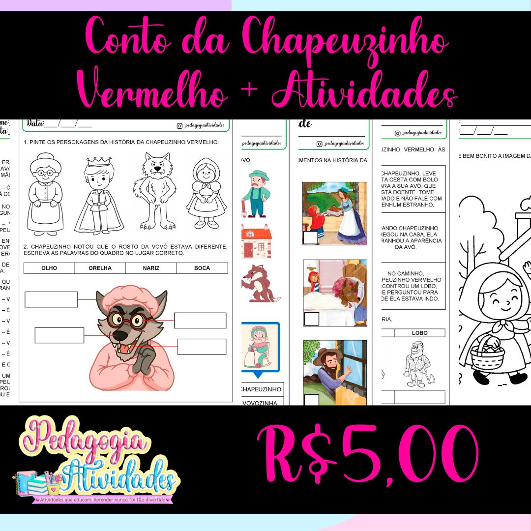 📸 Monte, aplique em sala e registre o encantamento dos alunos ao explorar o clássico da Chapeuzinho Vermelho de forma criativa e pedagógica!