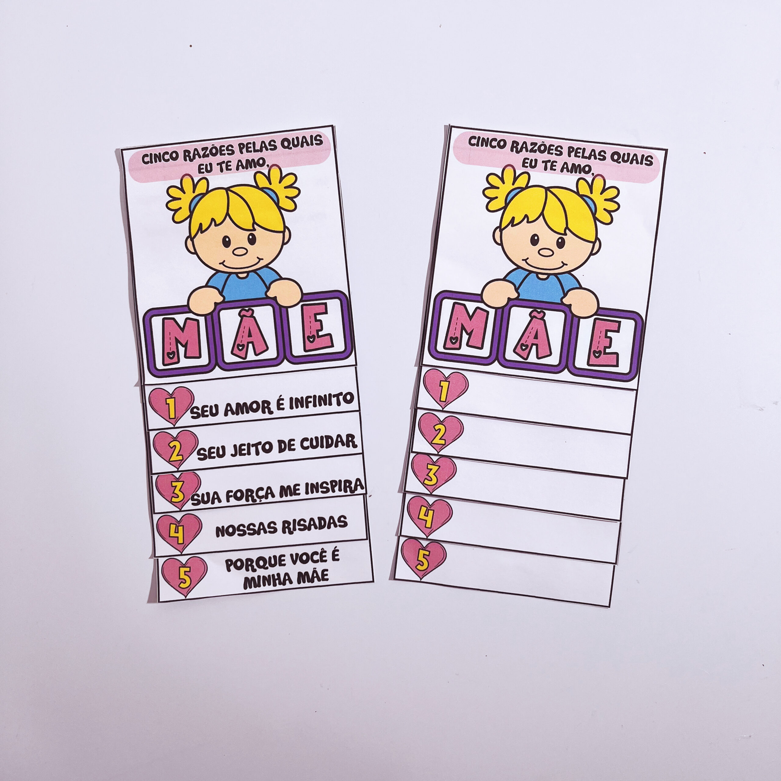 ✔️ Flipbook “5 Razões por que Te Amo, Mamãe”, com formato interativo e divertido;