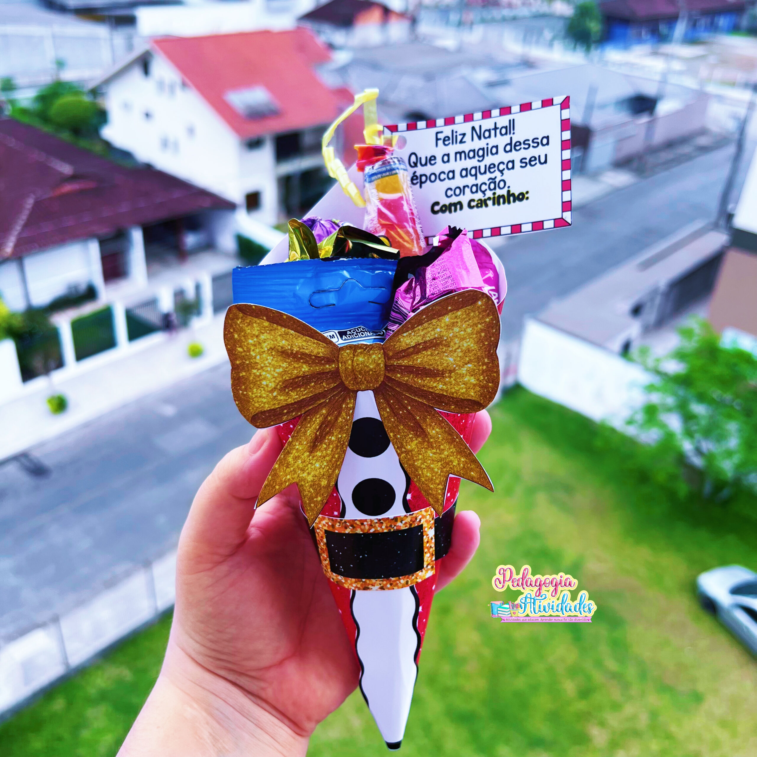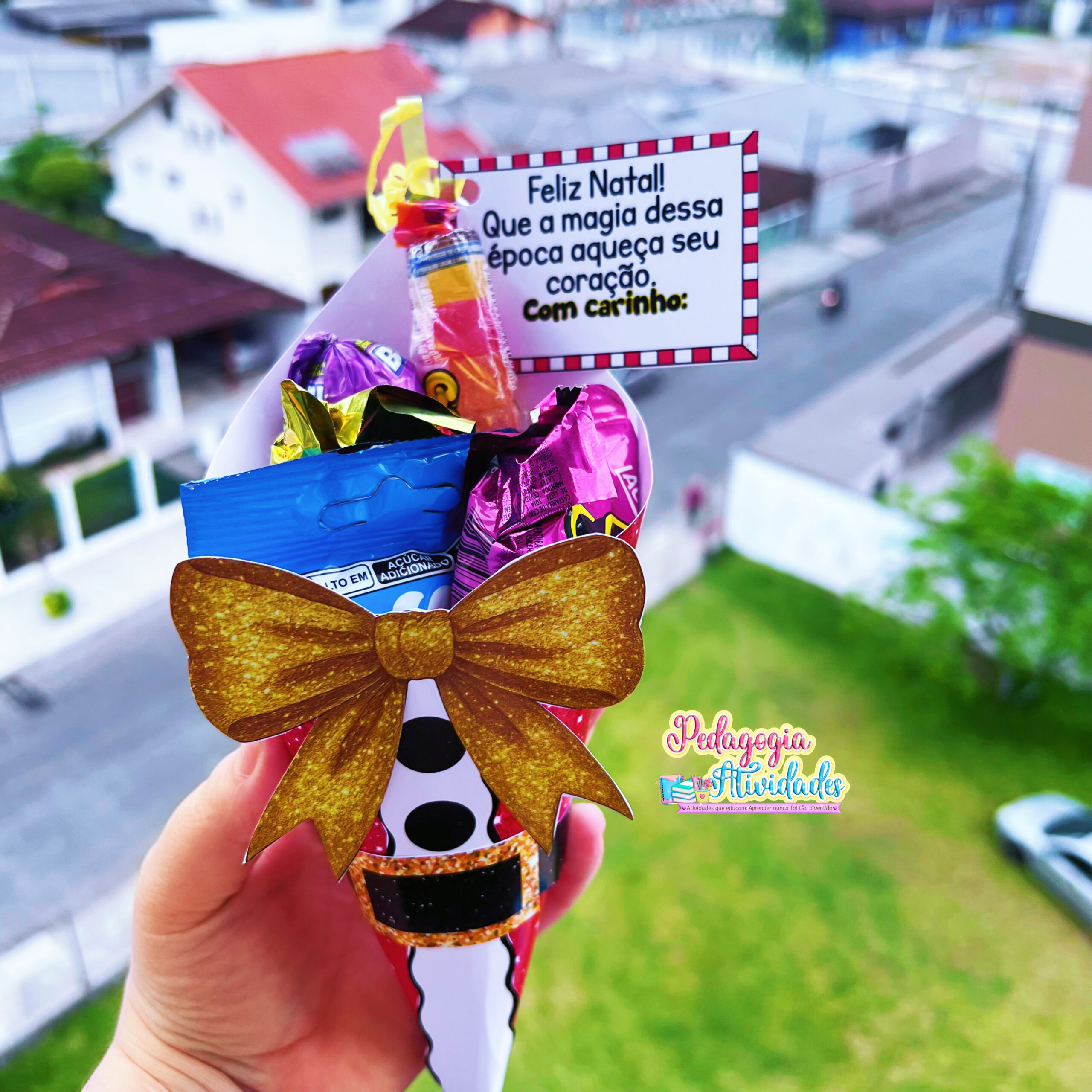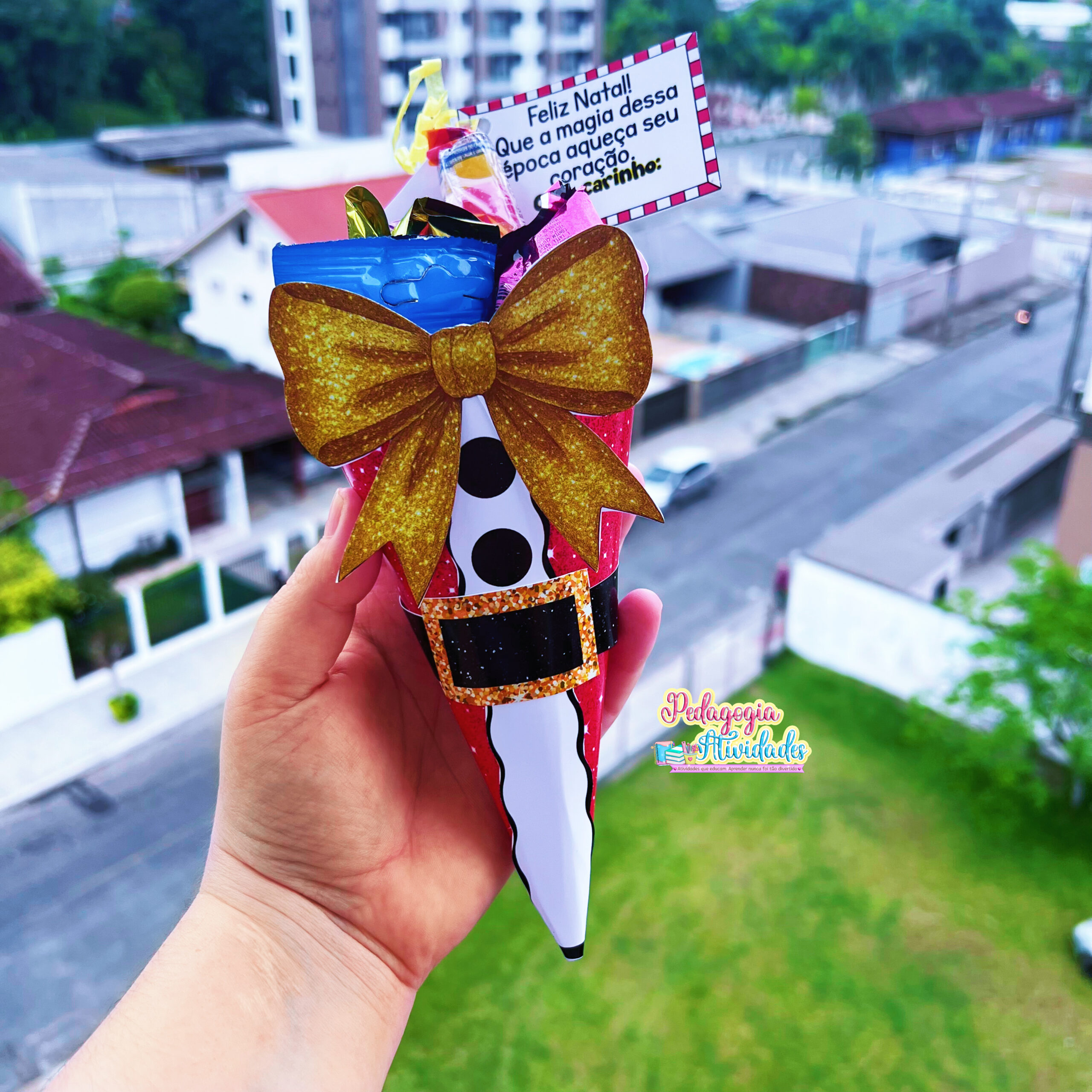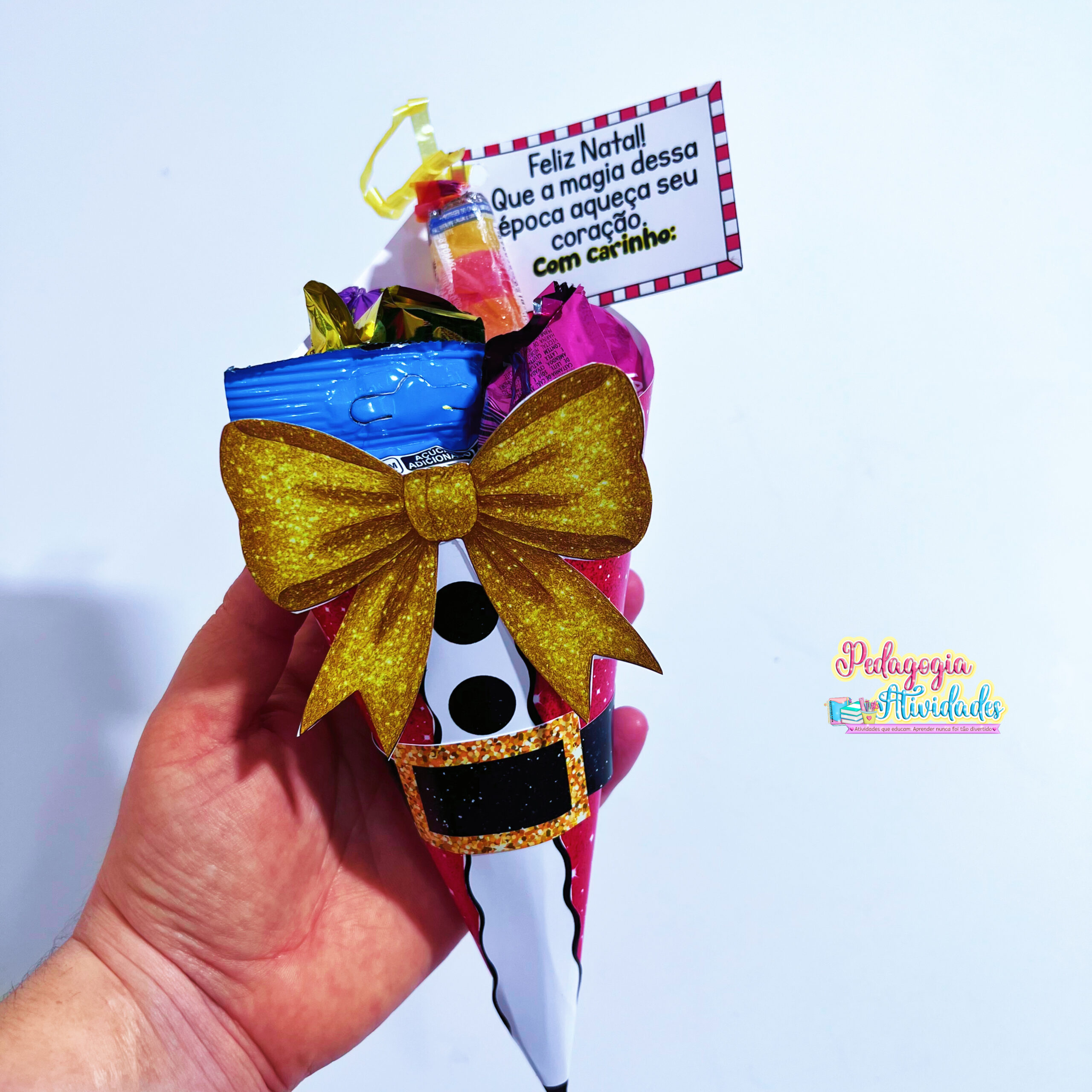 As crianças vão amar receber esse cone natalino recheado de doces, feito com carinho e pensado para espalhar o clima mágico do Natal por toda a escola! ❤️