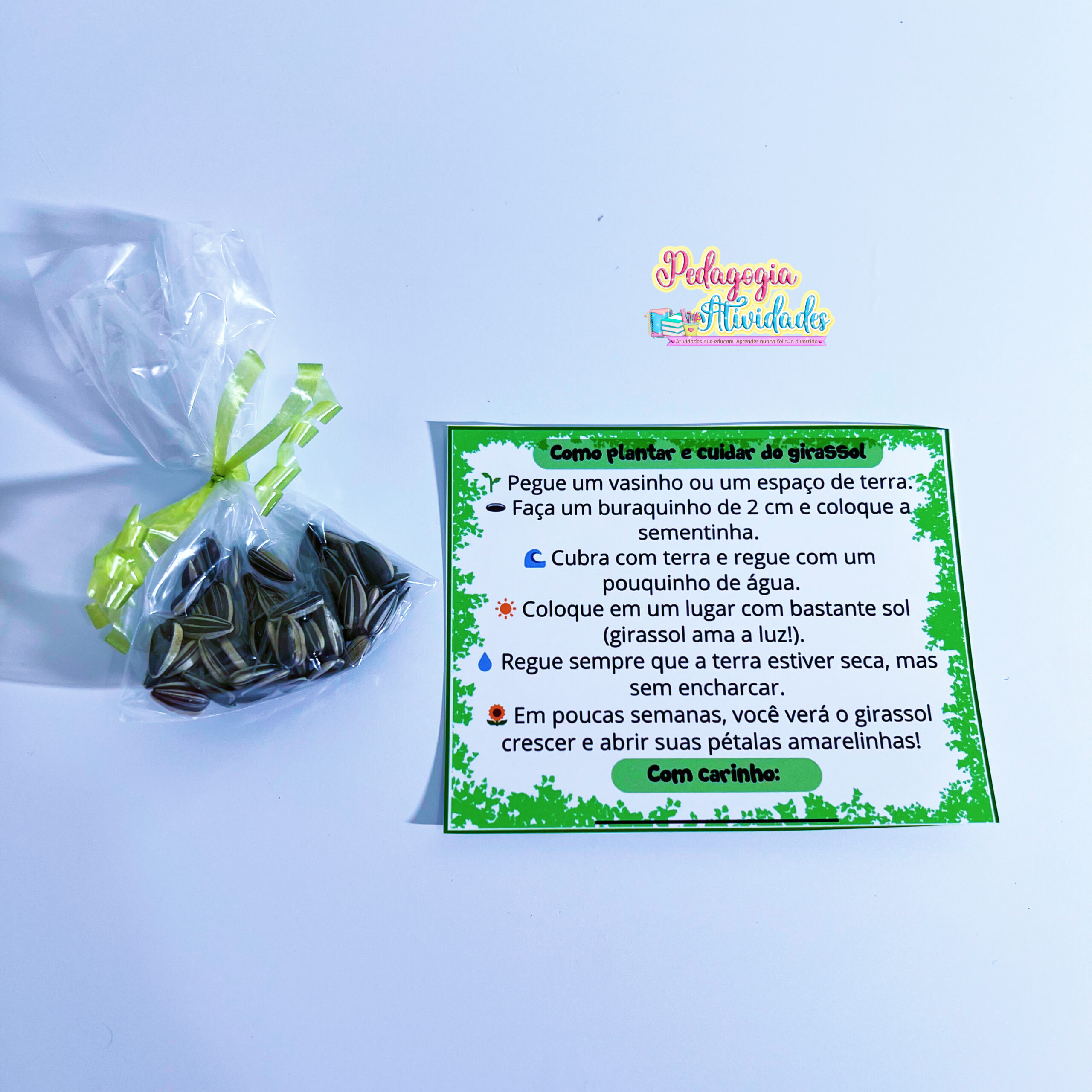 🤍 Dentro acompanha sementes de girassol 🌻 e instruções de como plantar e cuidar.