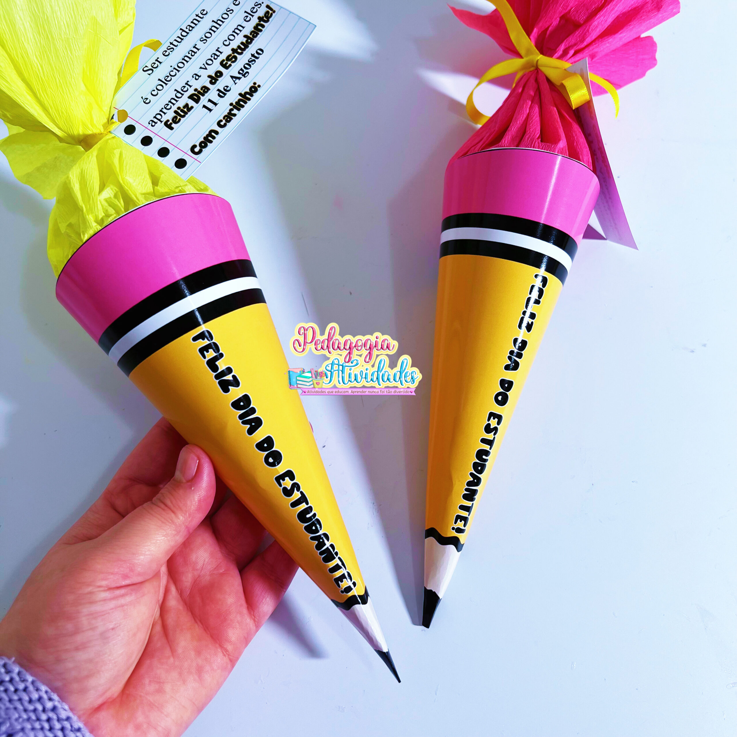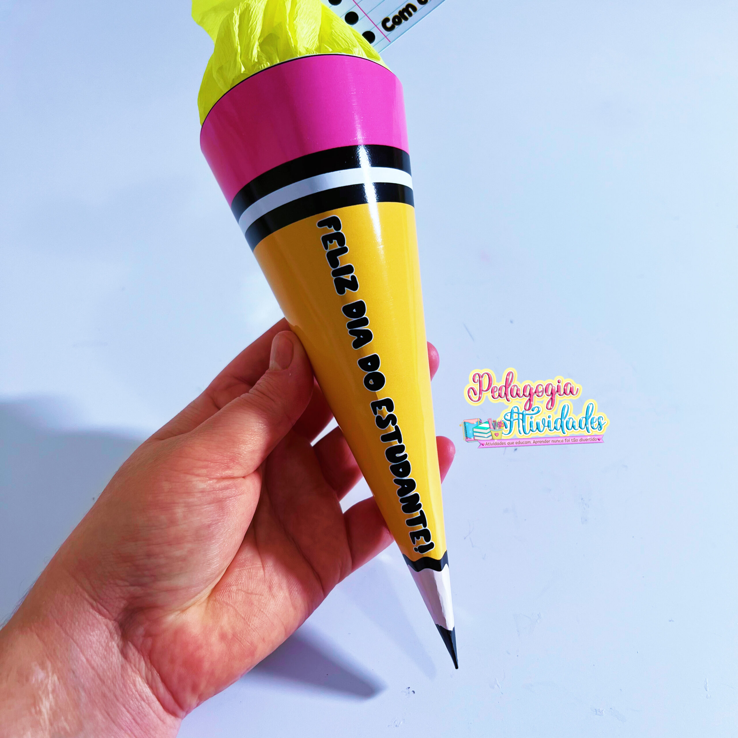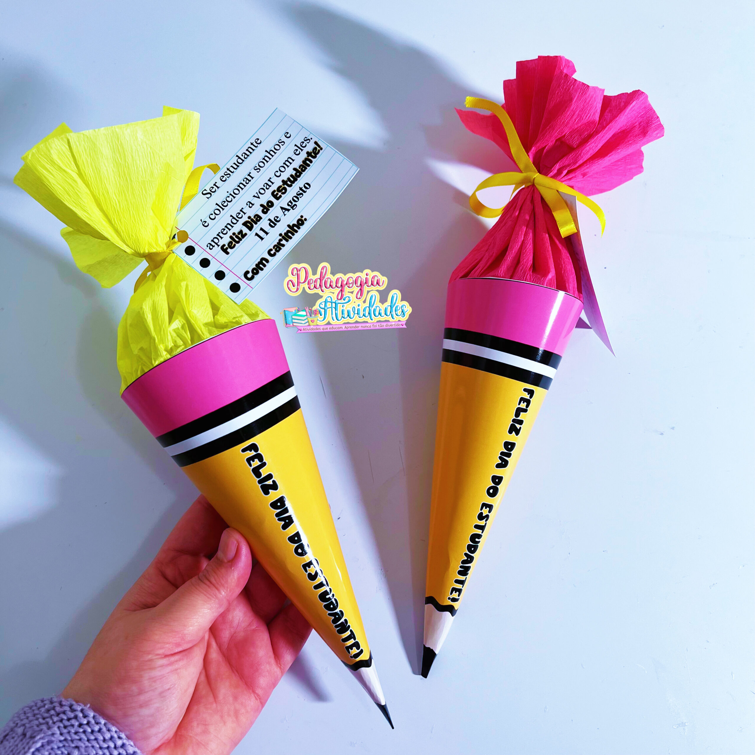 🍭 Cone Lápis para colocar doces – Dia do Estudante