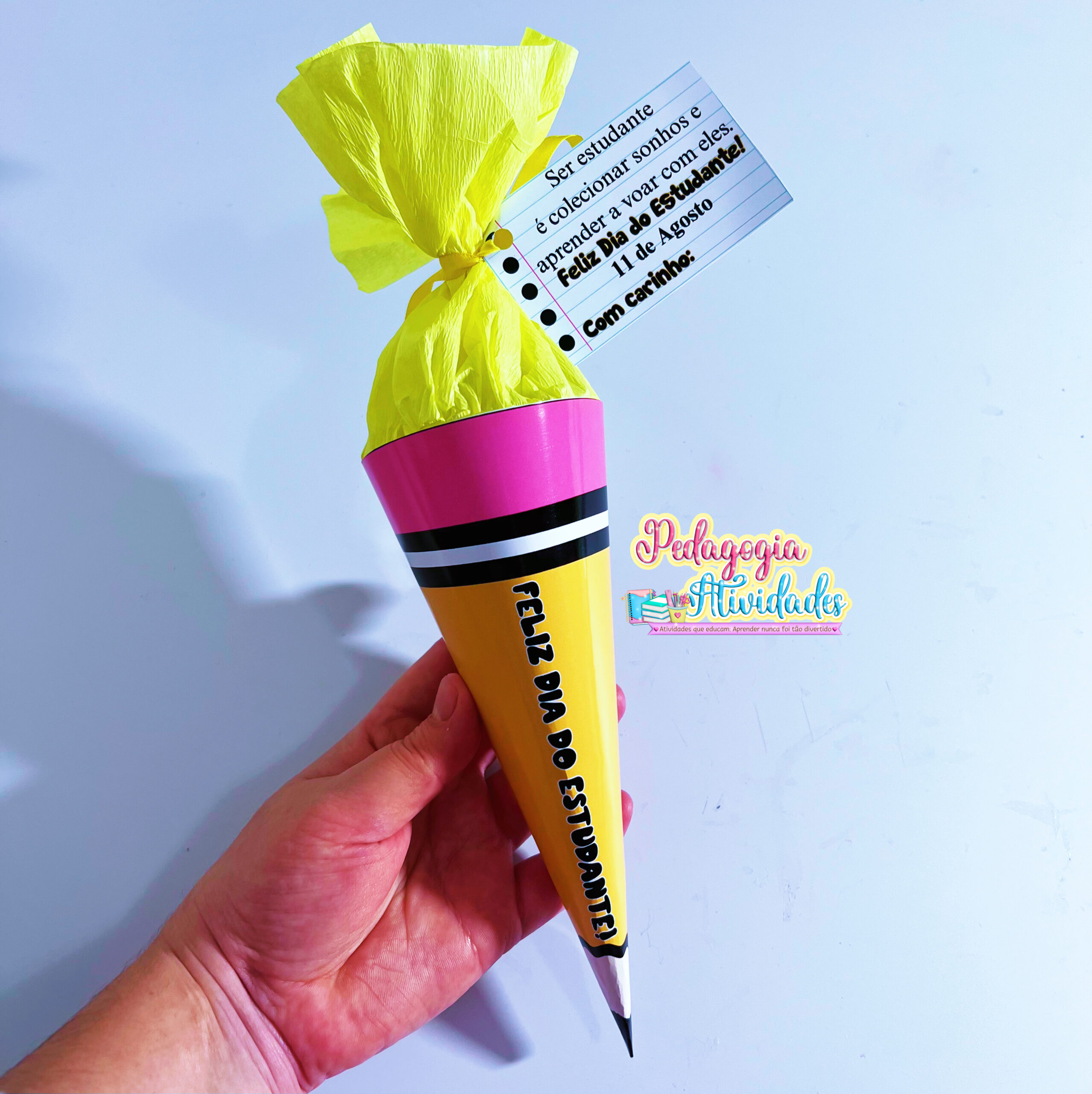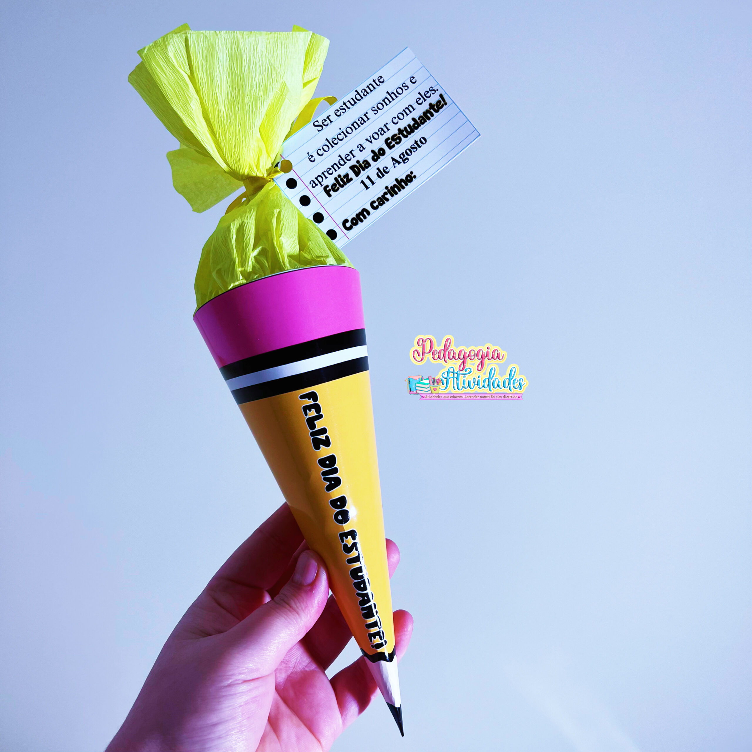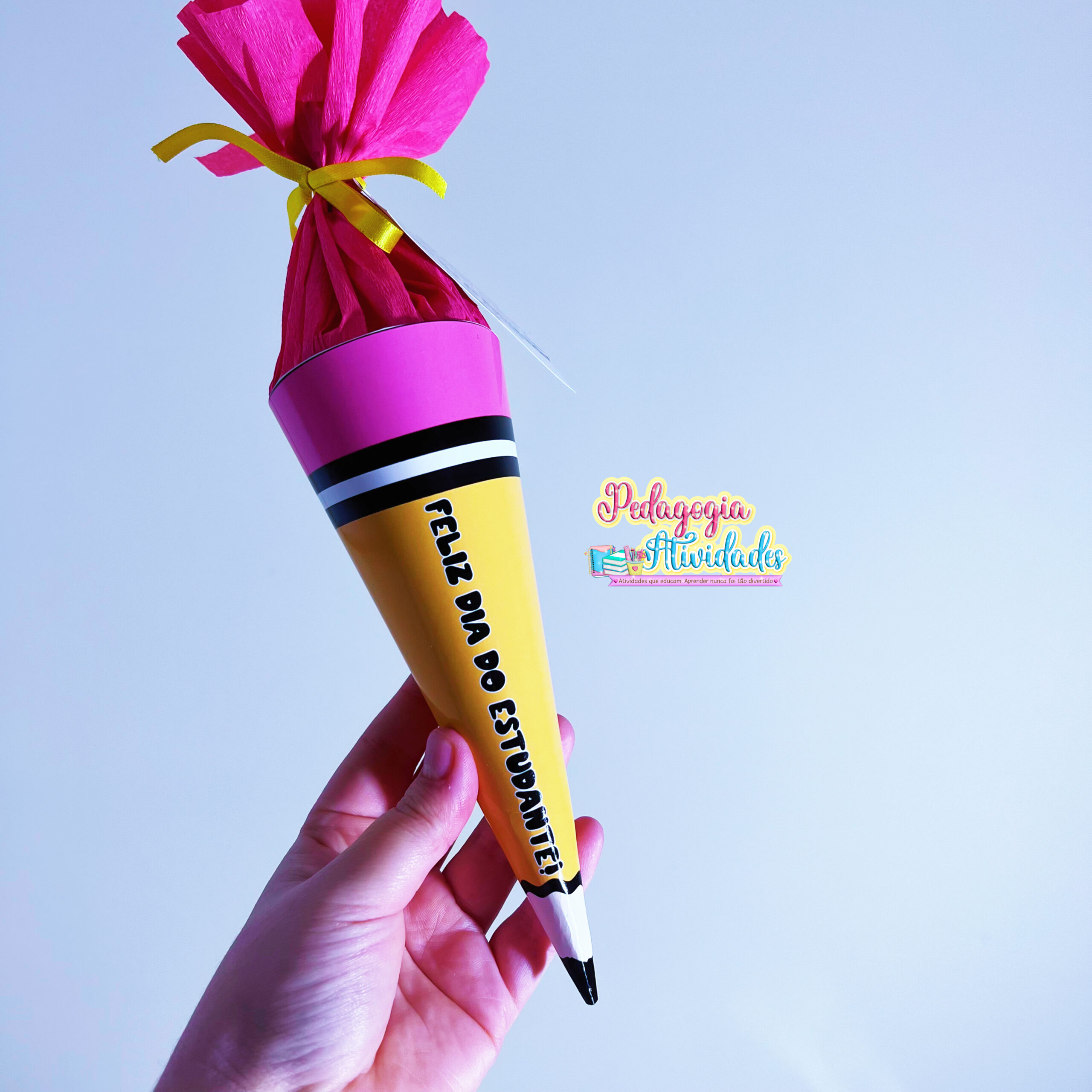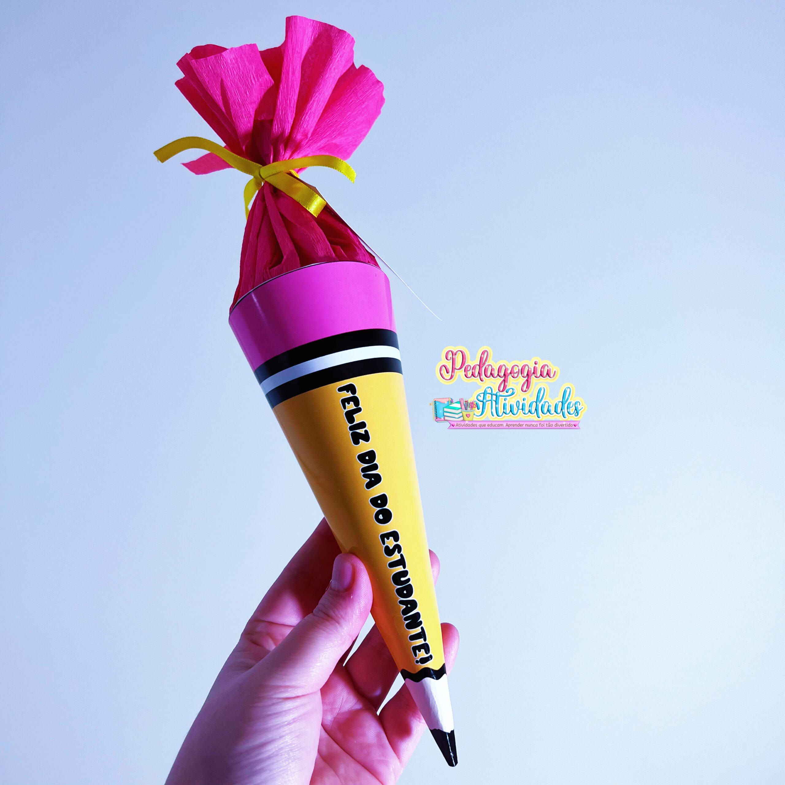 🍭 Cone Lápis para colocar doces – Dia do Estudante