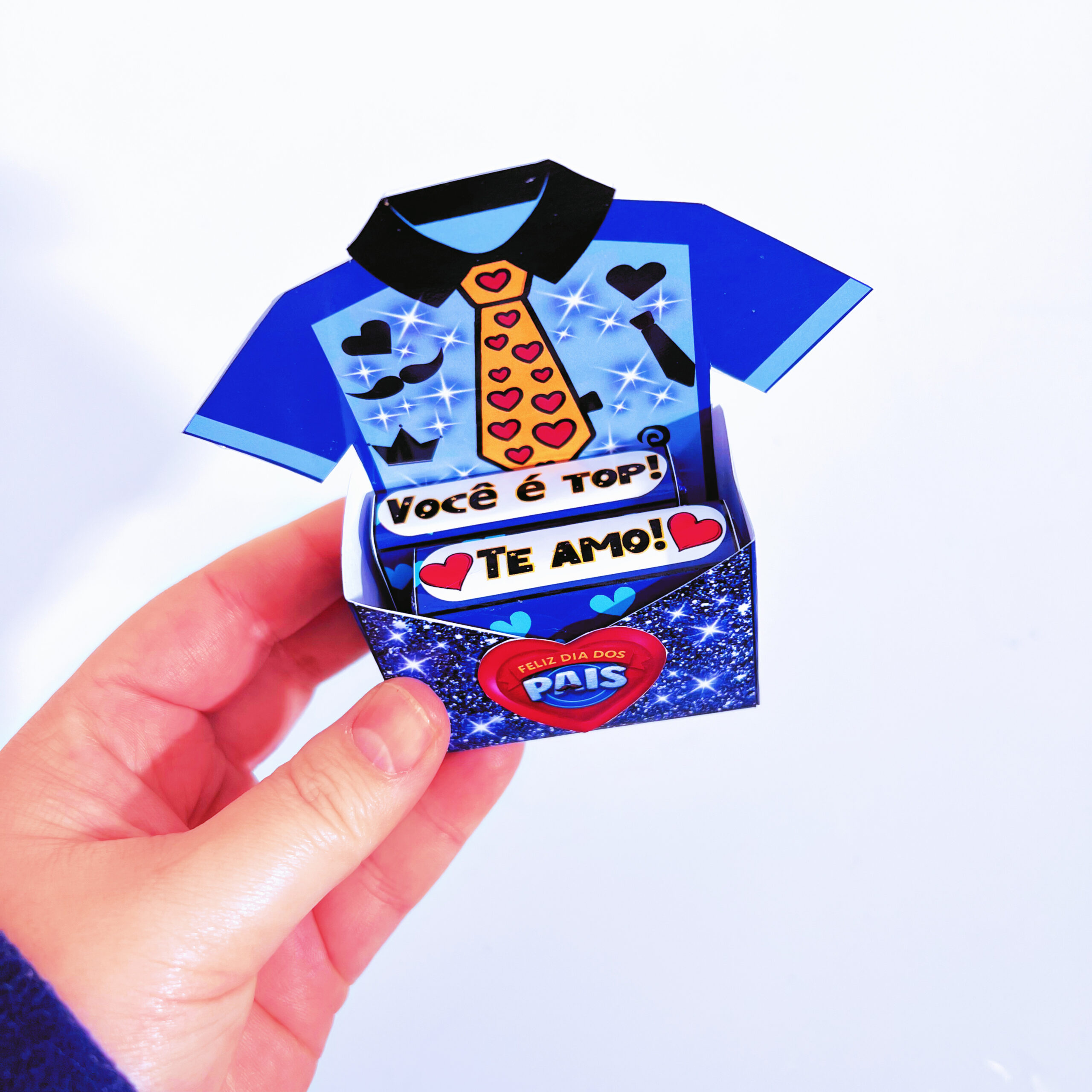 Esse cartão em formato de camisa vai arrancar sorrisos e emocionar no Dia dos Pais com criatividade, interatividade e MUITO carinho! 💙