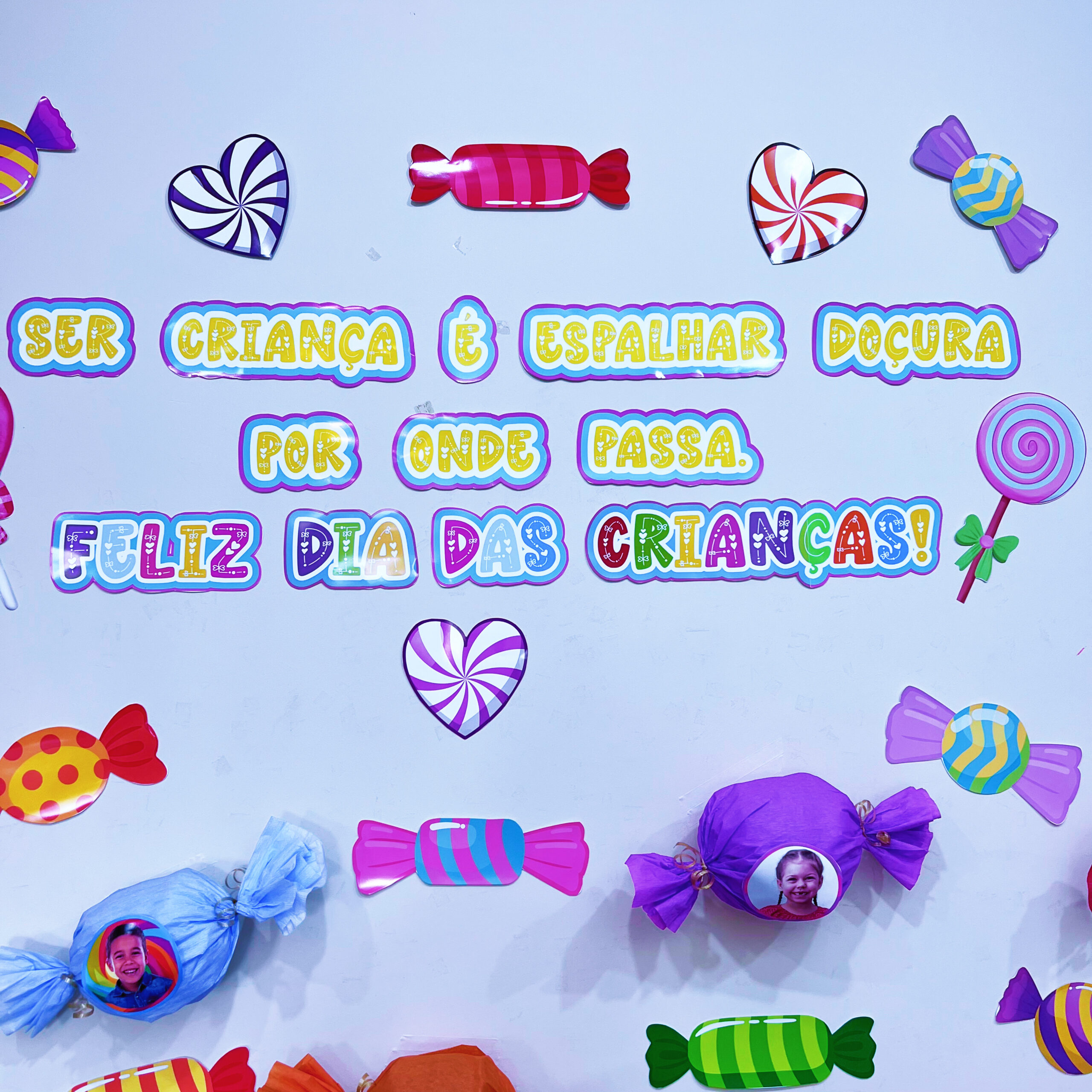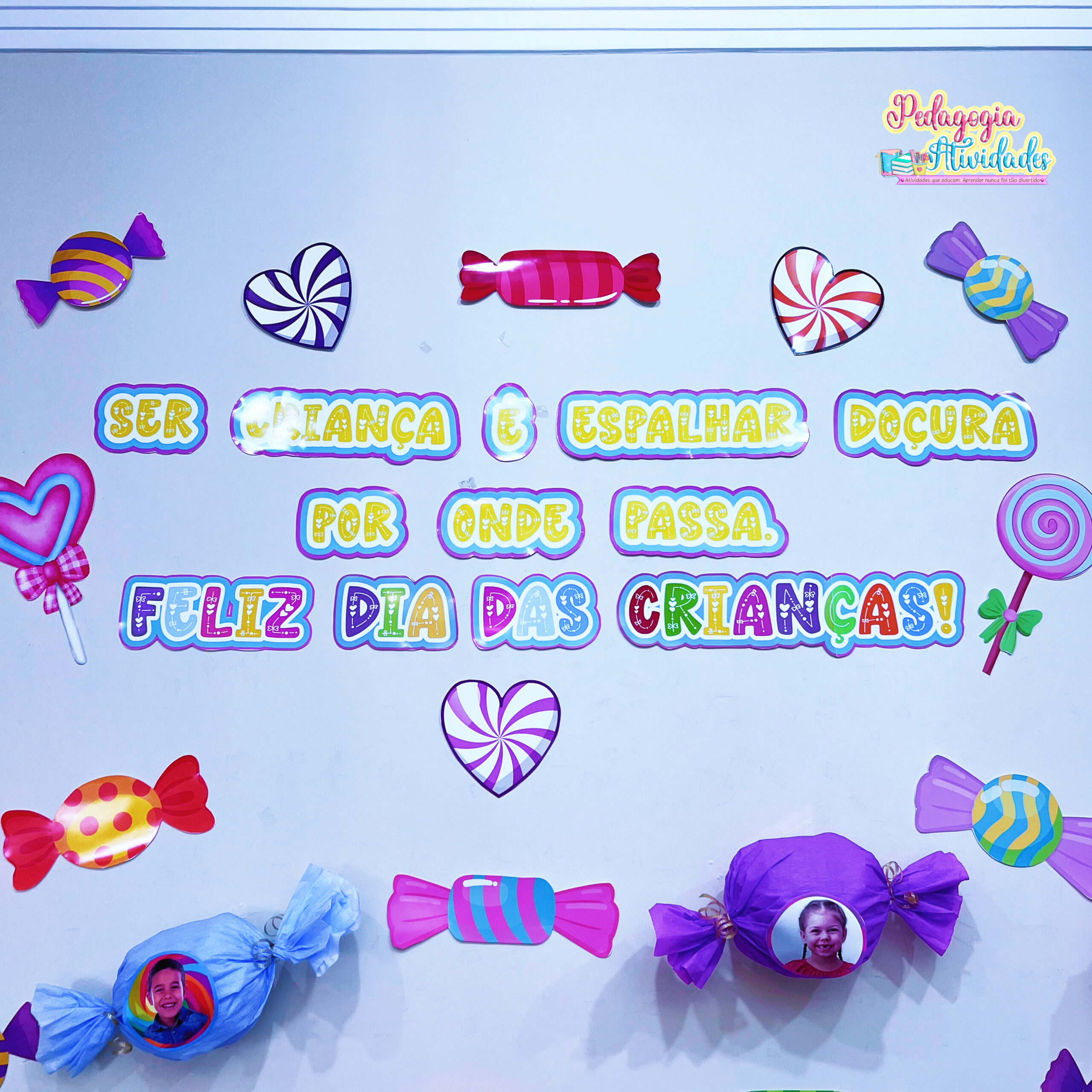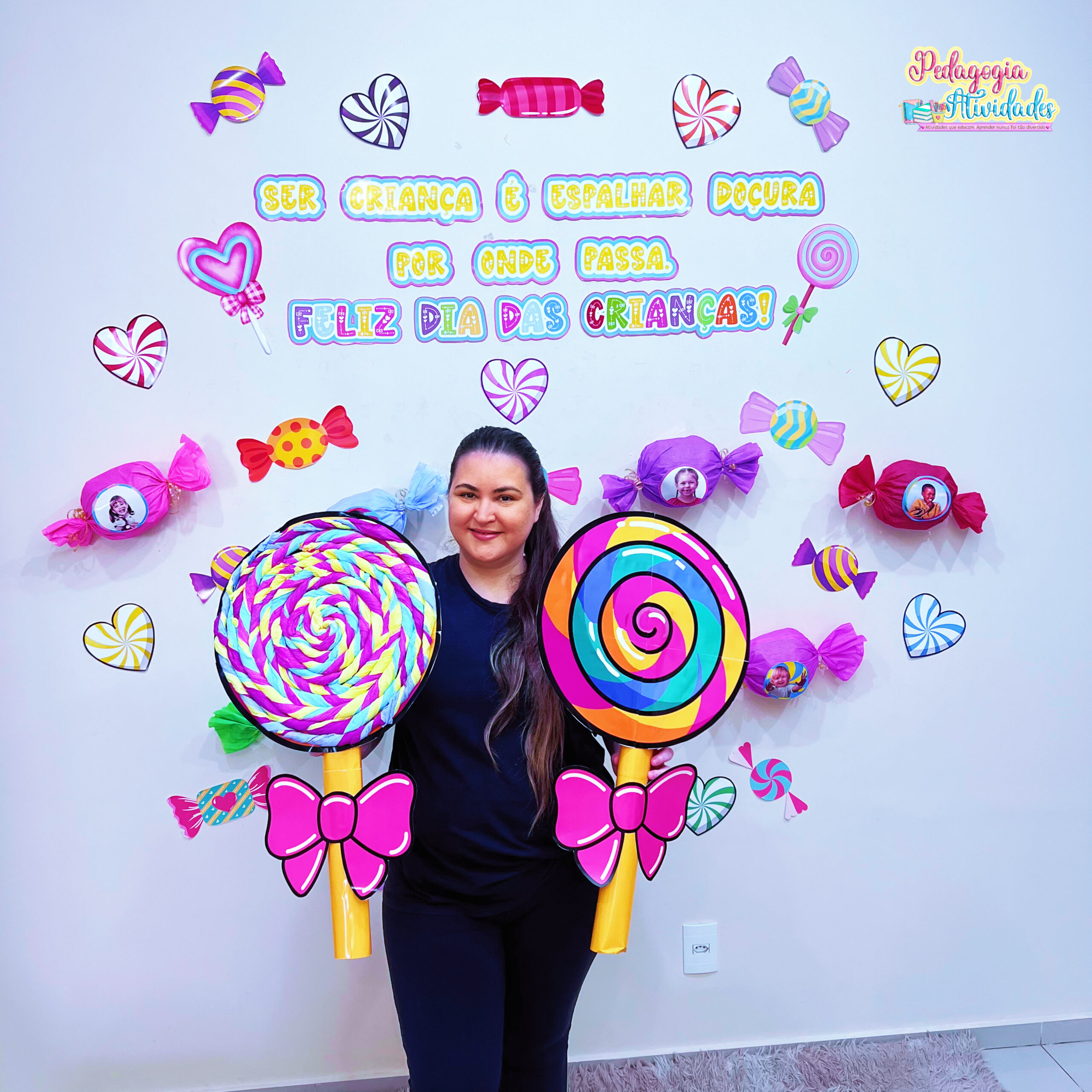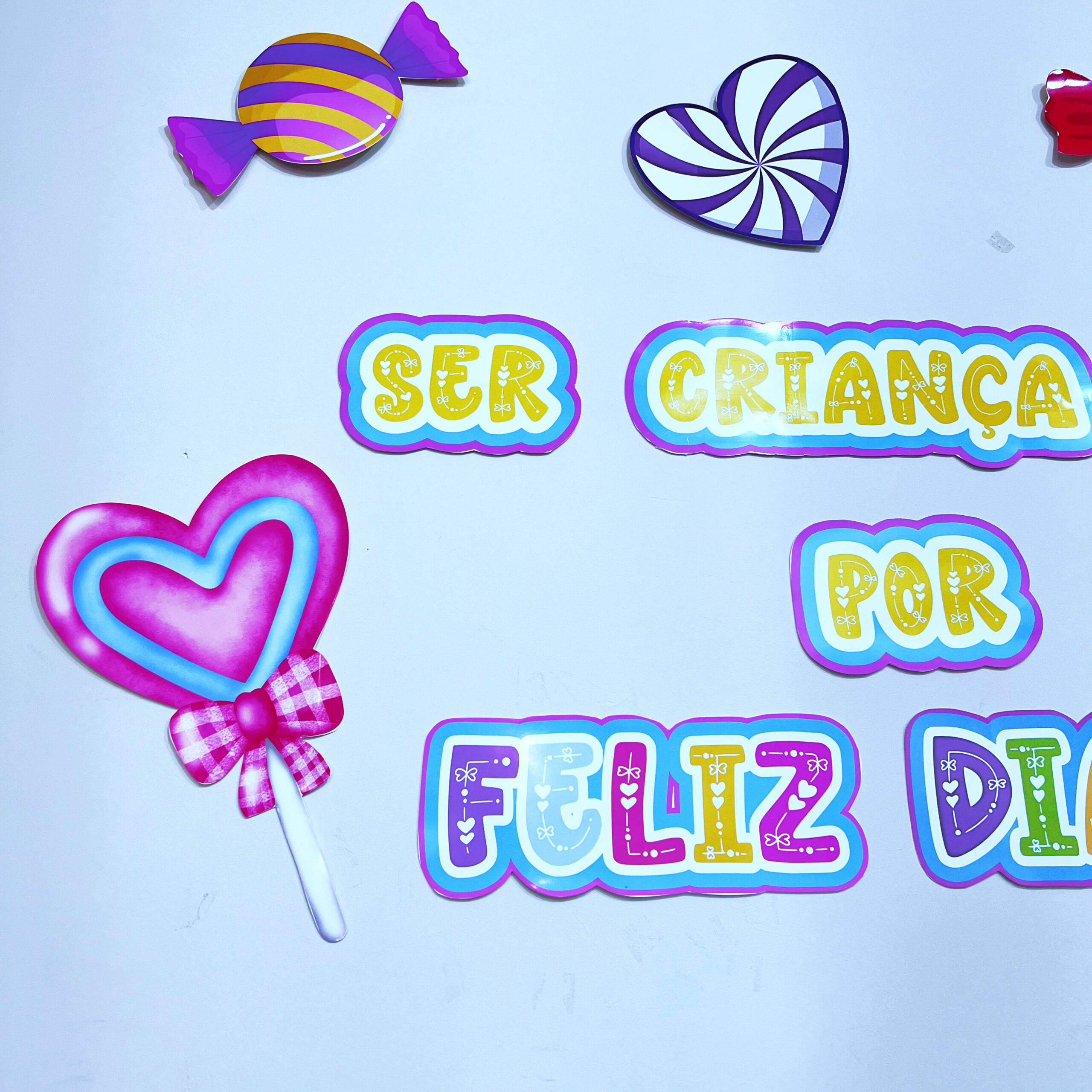 🎉 Painel 3D Dia das Crianças – Tema Doces 🍭✨