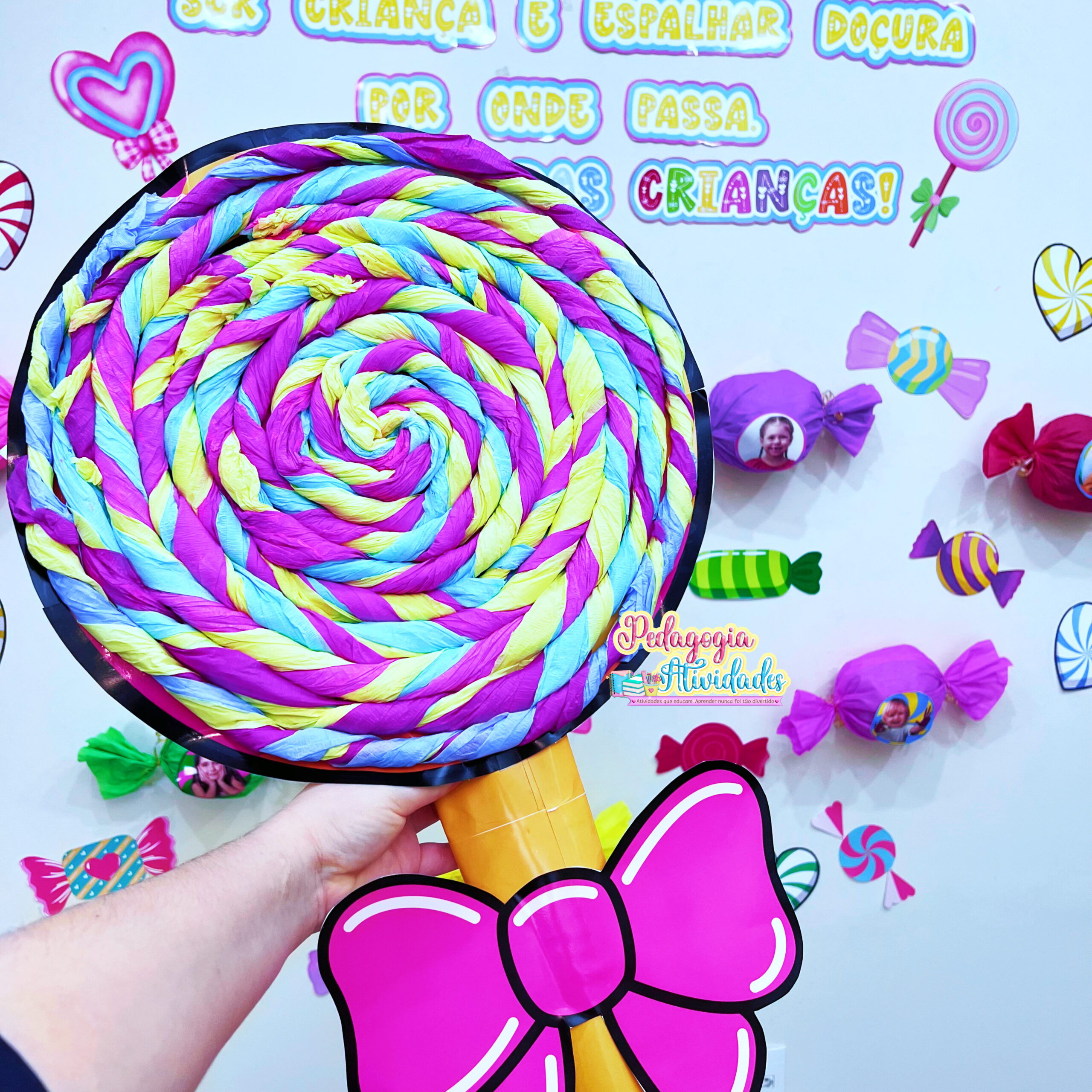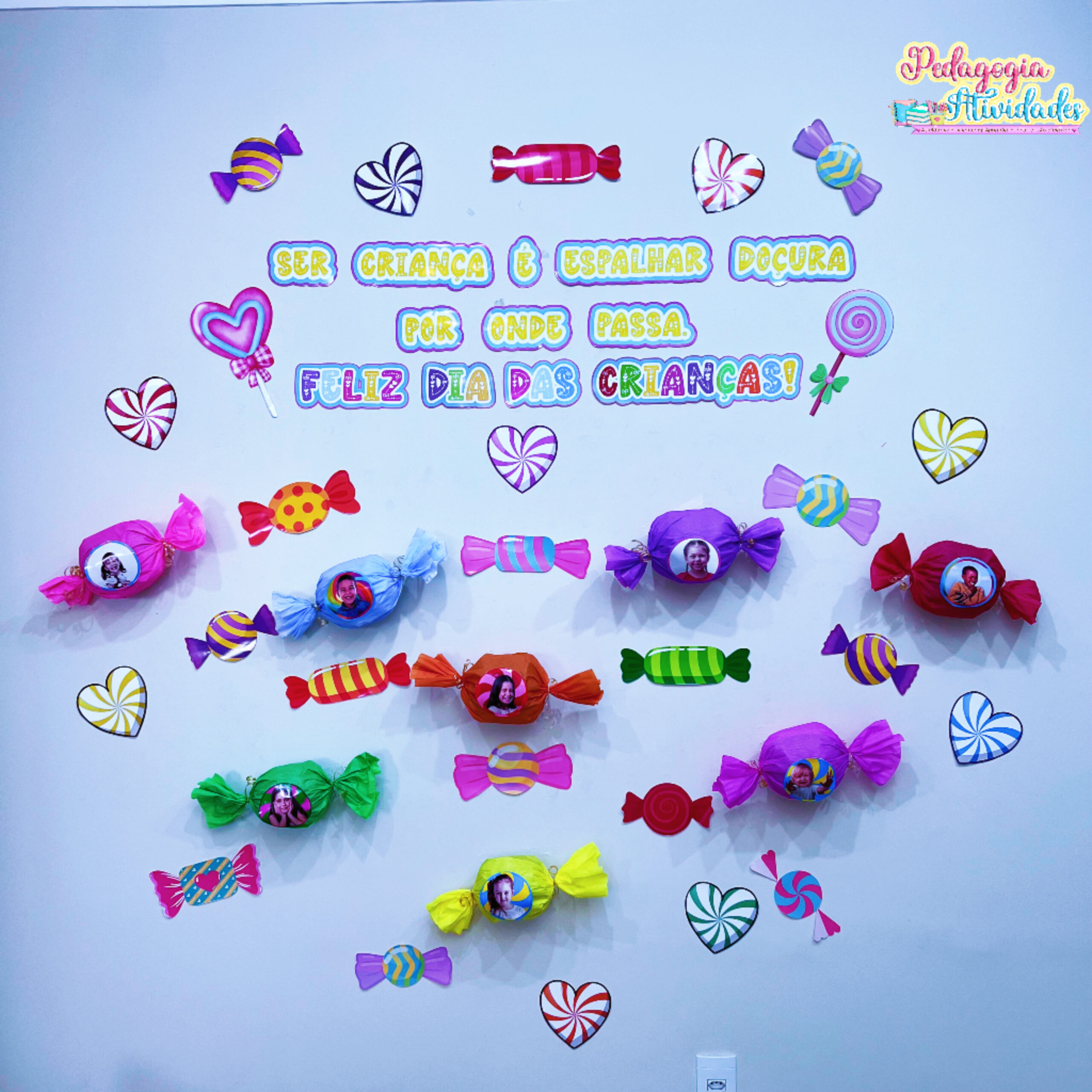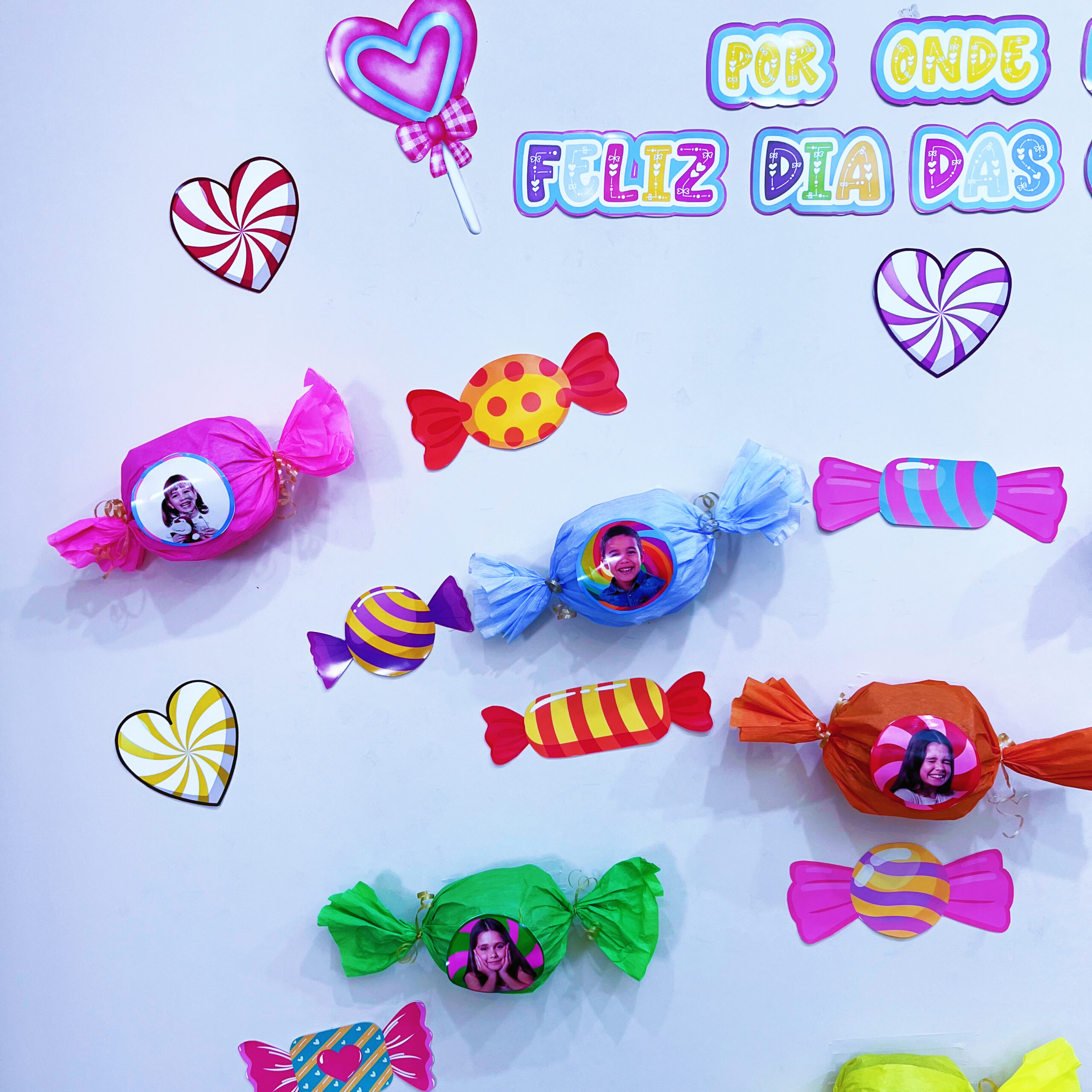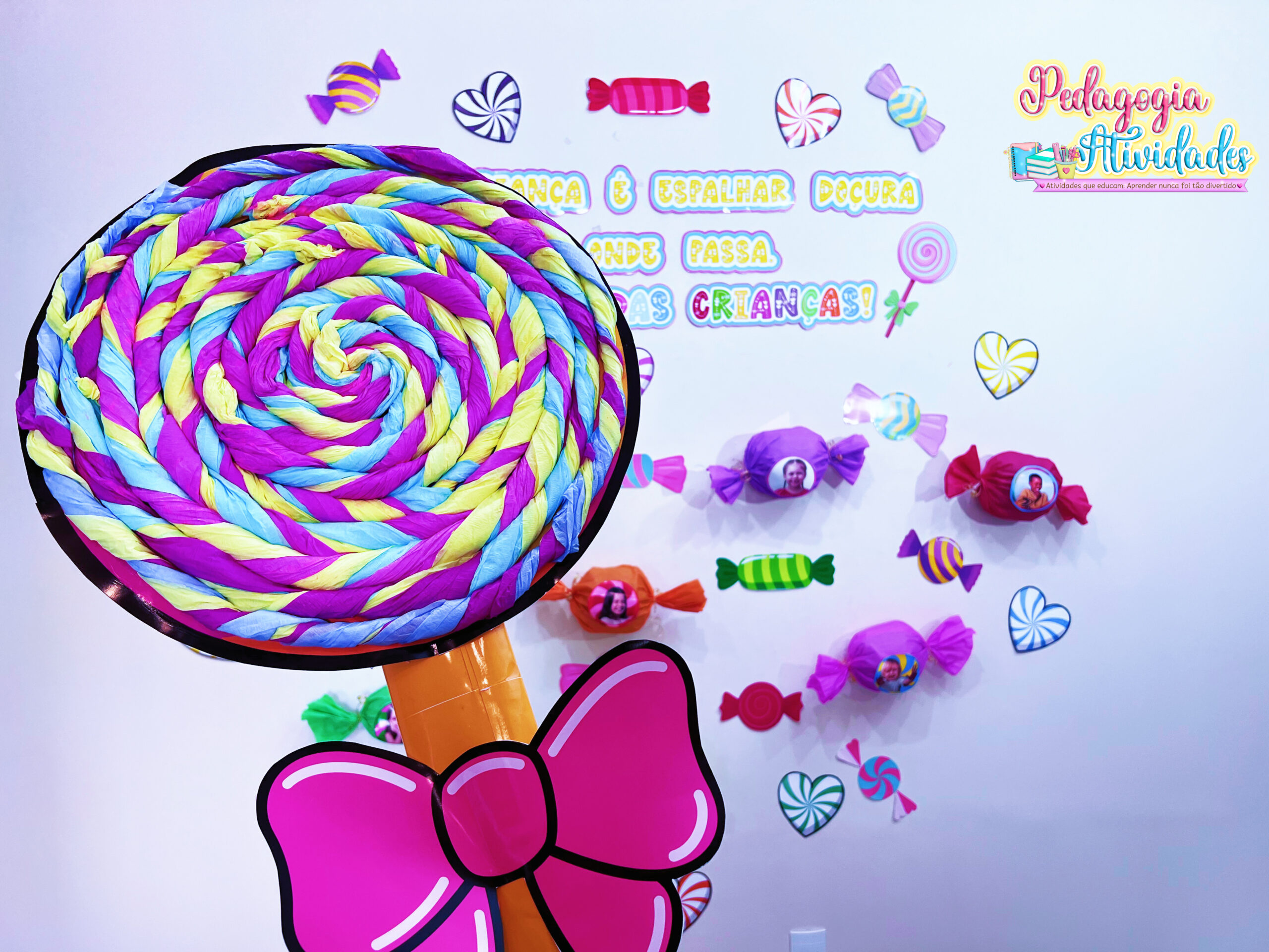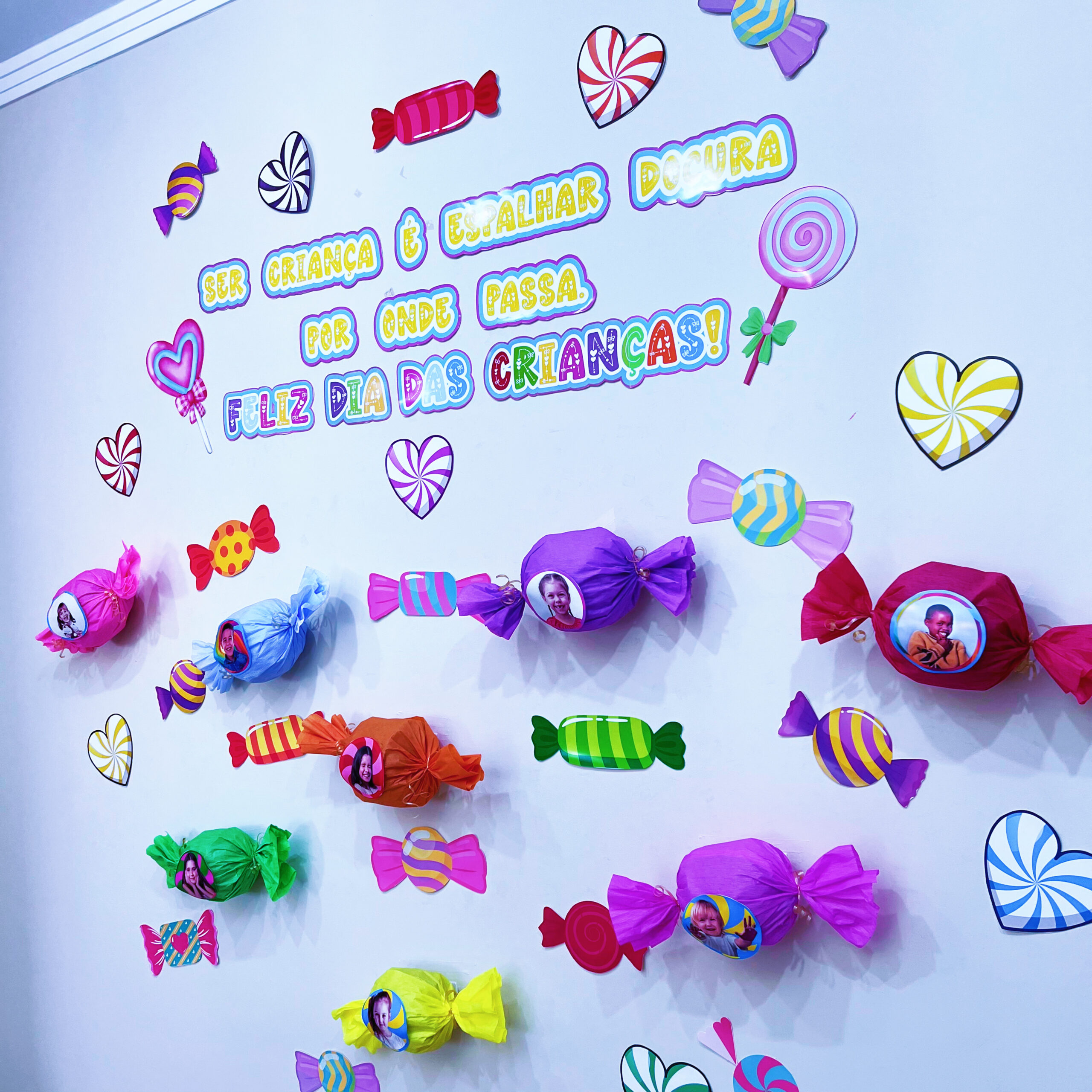 🎉 Painel 3D Dia das Crianças – Tema Doces 🍭✨