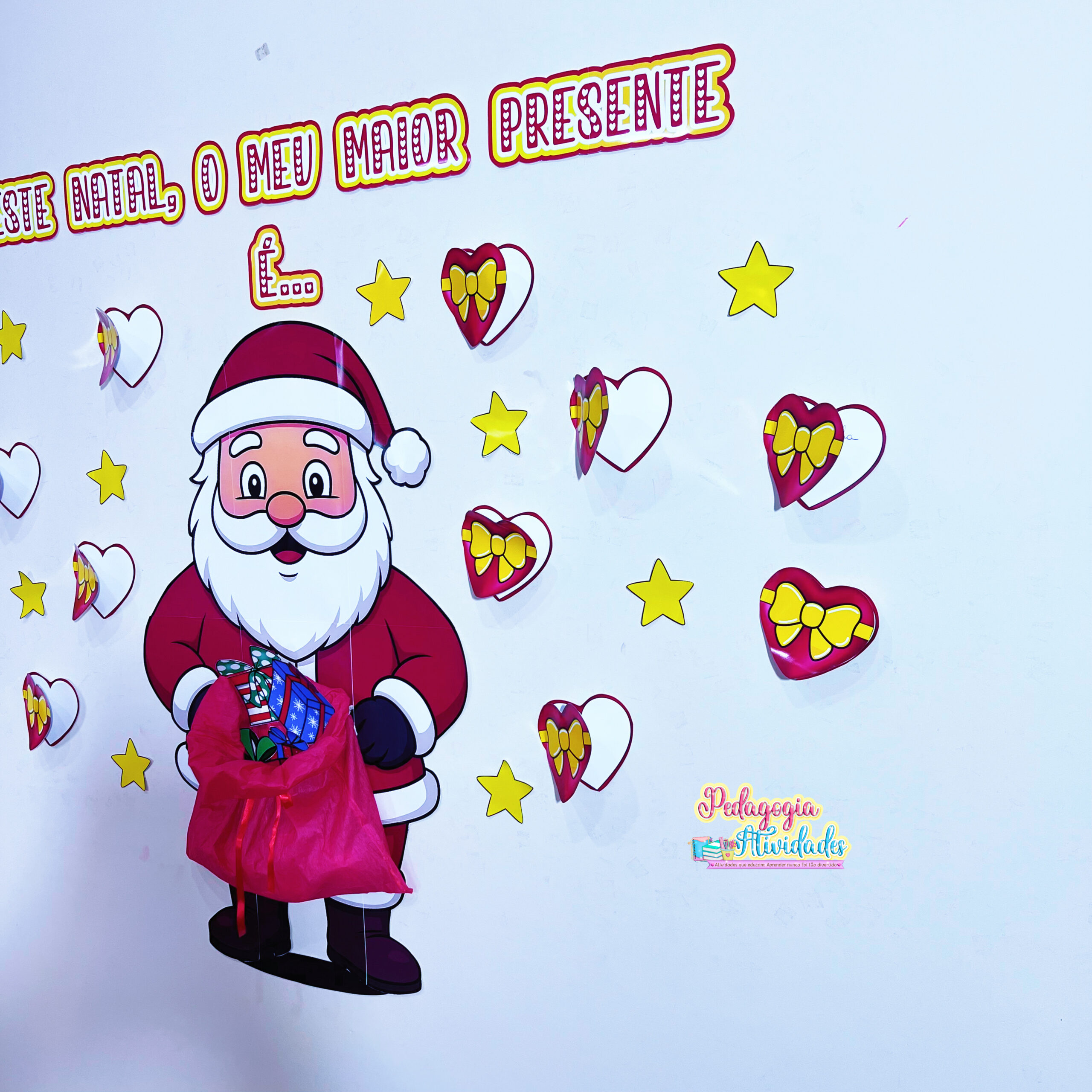 Esse painel natalino vai transformar sua sala em um cenário mágico, com cada aluno escrevendo e desenhando o seu “maior presente neste Natal”. 💖