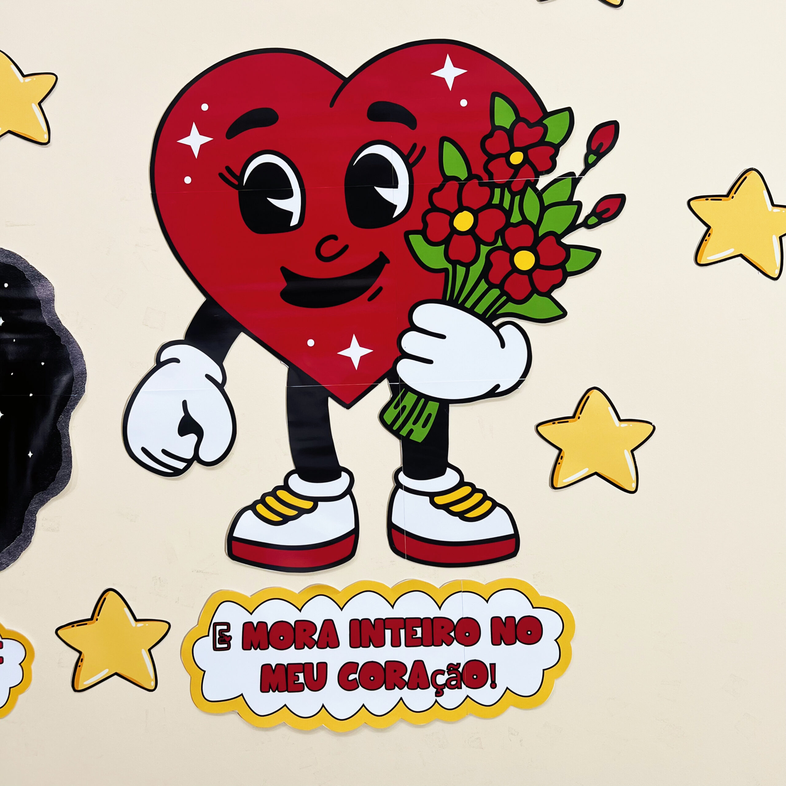 🔹 Um grande coração, com a mensagem: “Ele mora inteirinho no meu coração!”