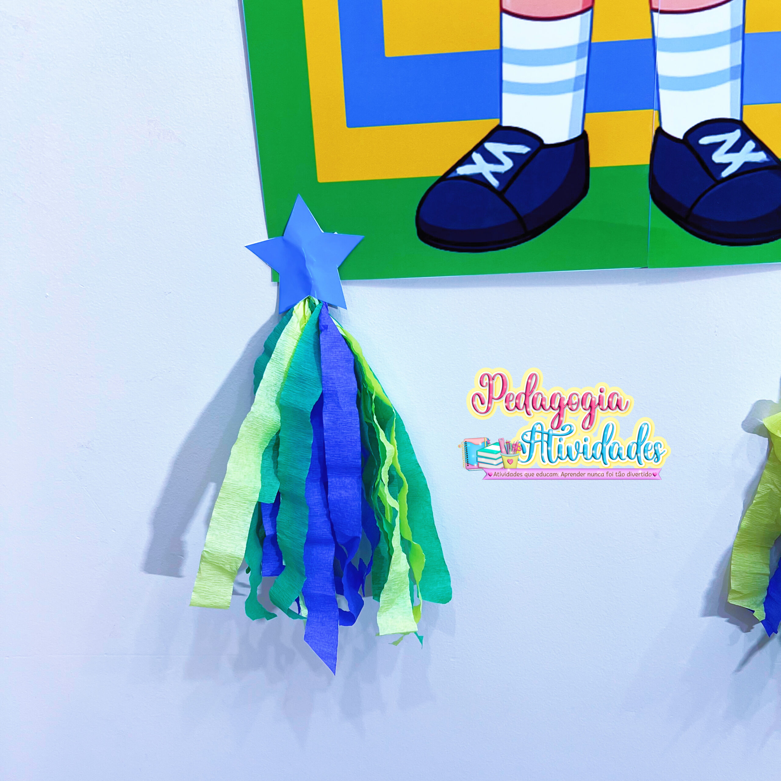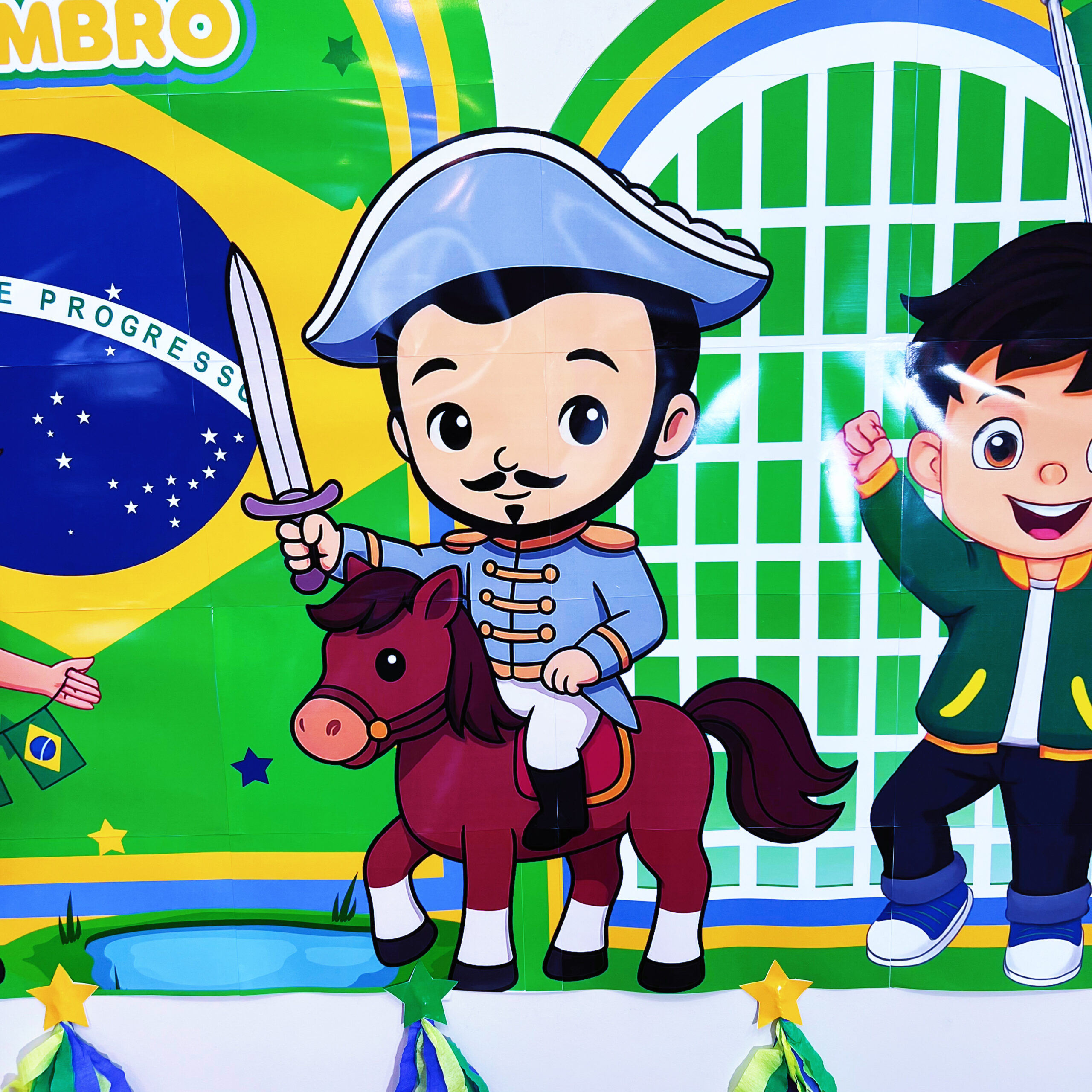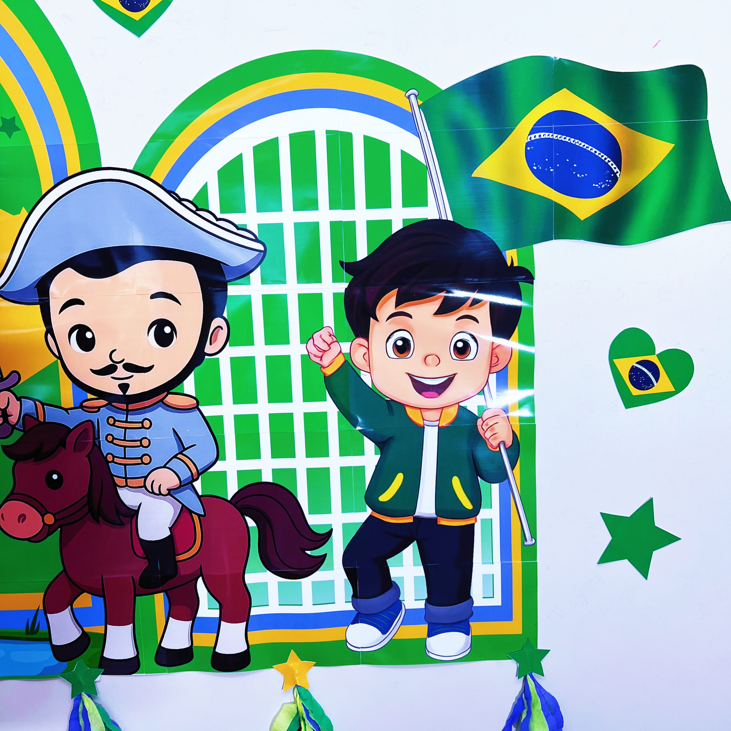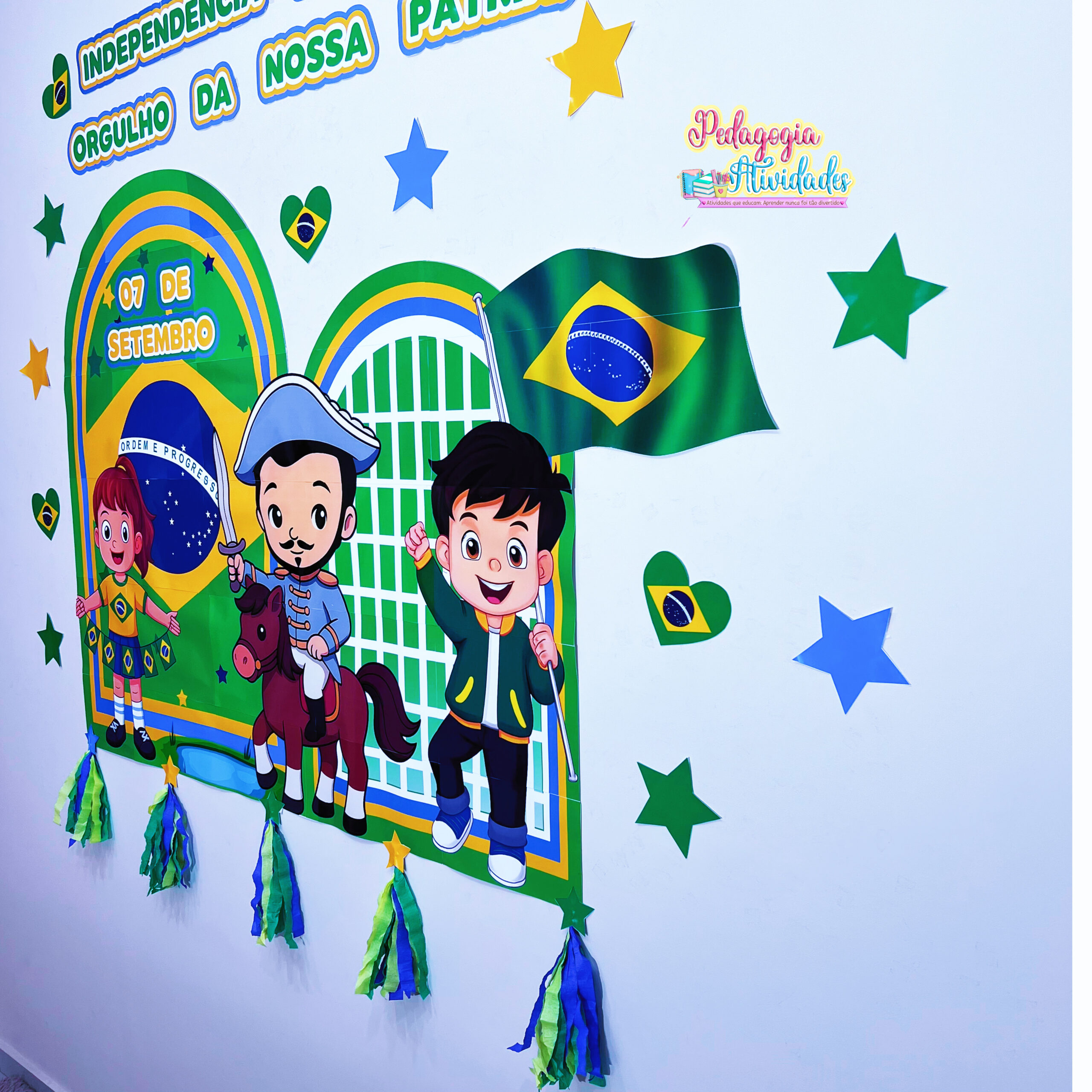 O painel traz toda a atmosfera da data e, para complementar, o cartão em formato 3D revela uma criança segurando a bandeira do Brasil, tornando a atividade interativa e inesquecível.