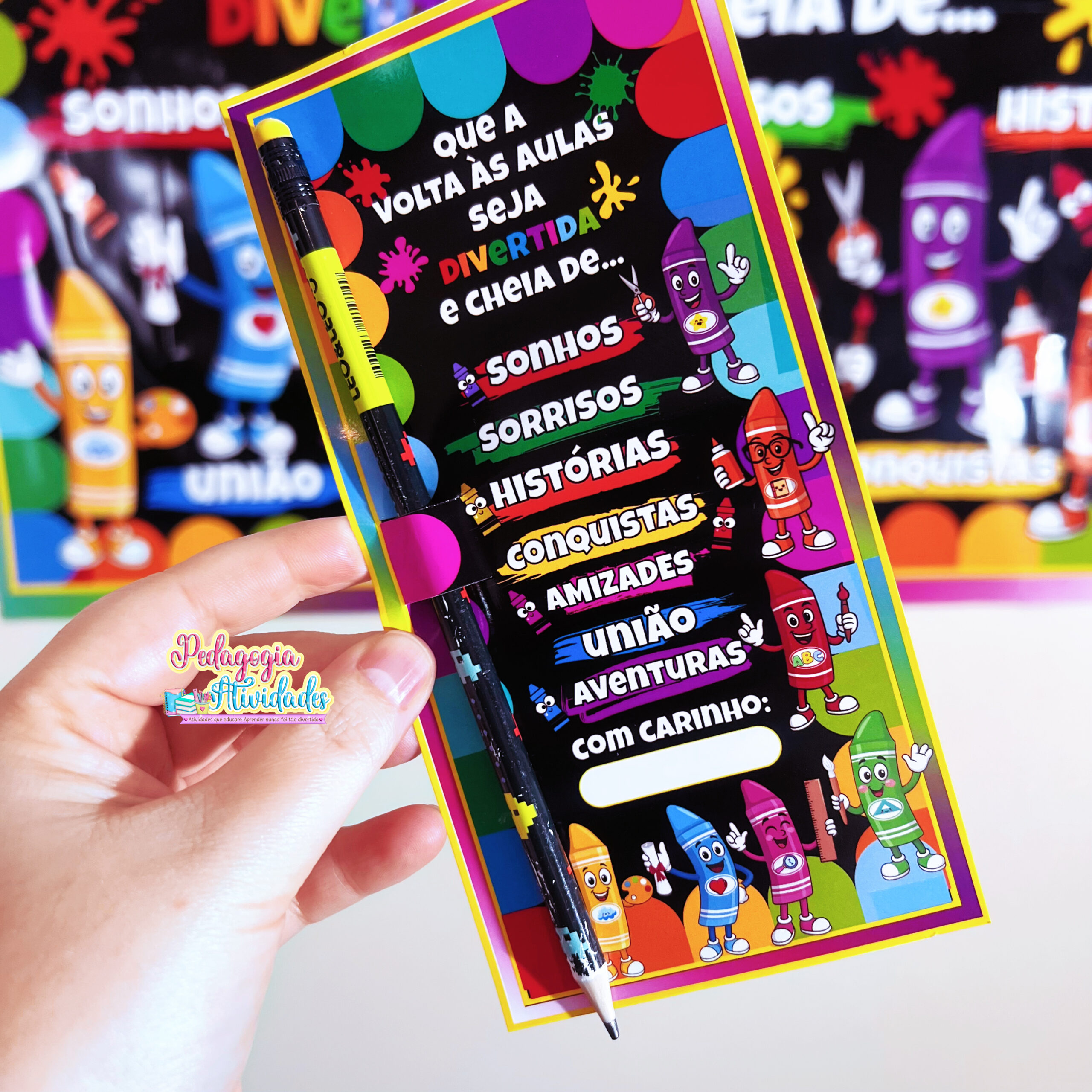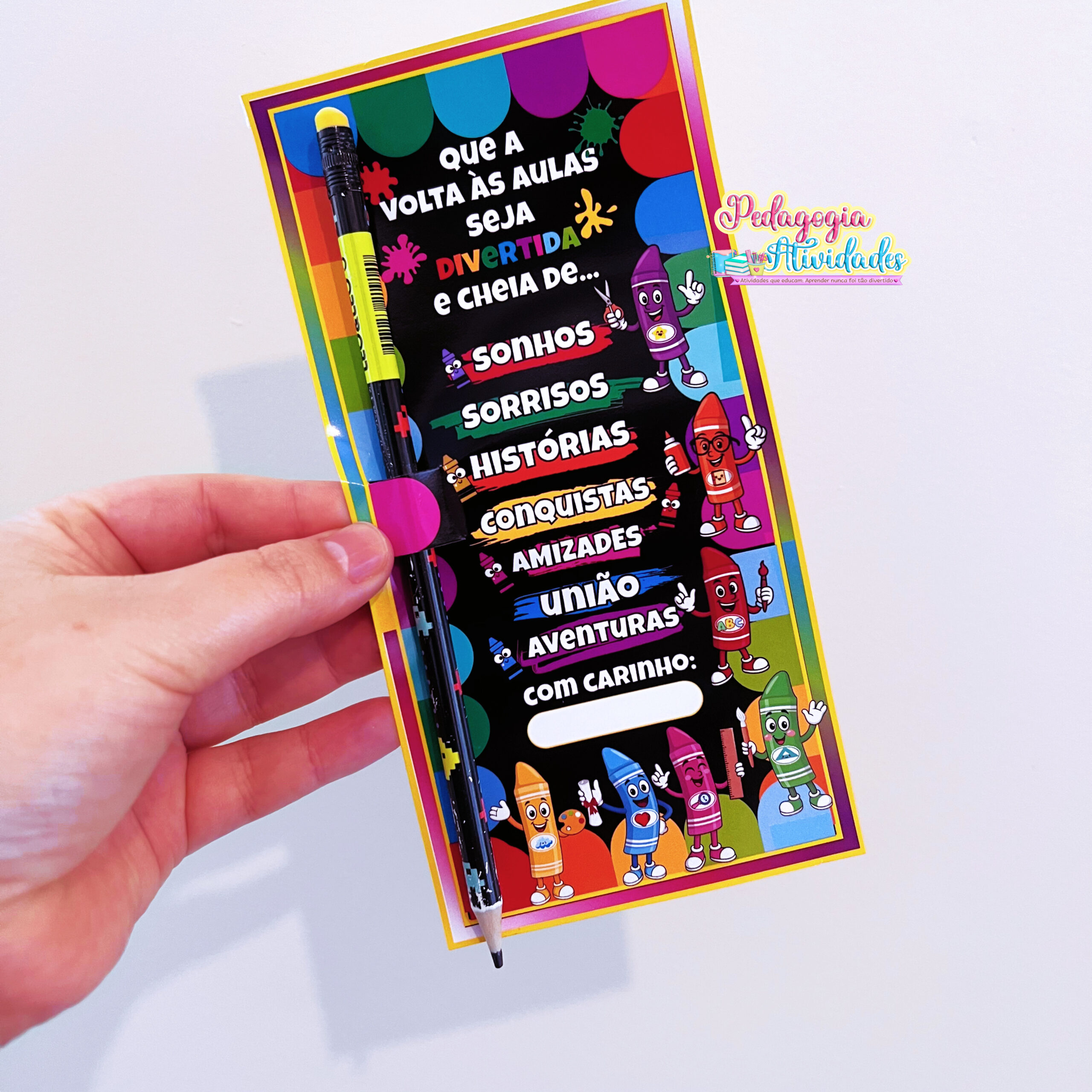 ✔️ Cartão de lembrancinha para encaixar um lápis ou caneta (acolhimento com mimo!)