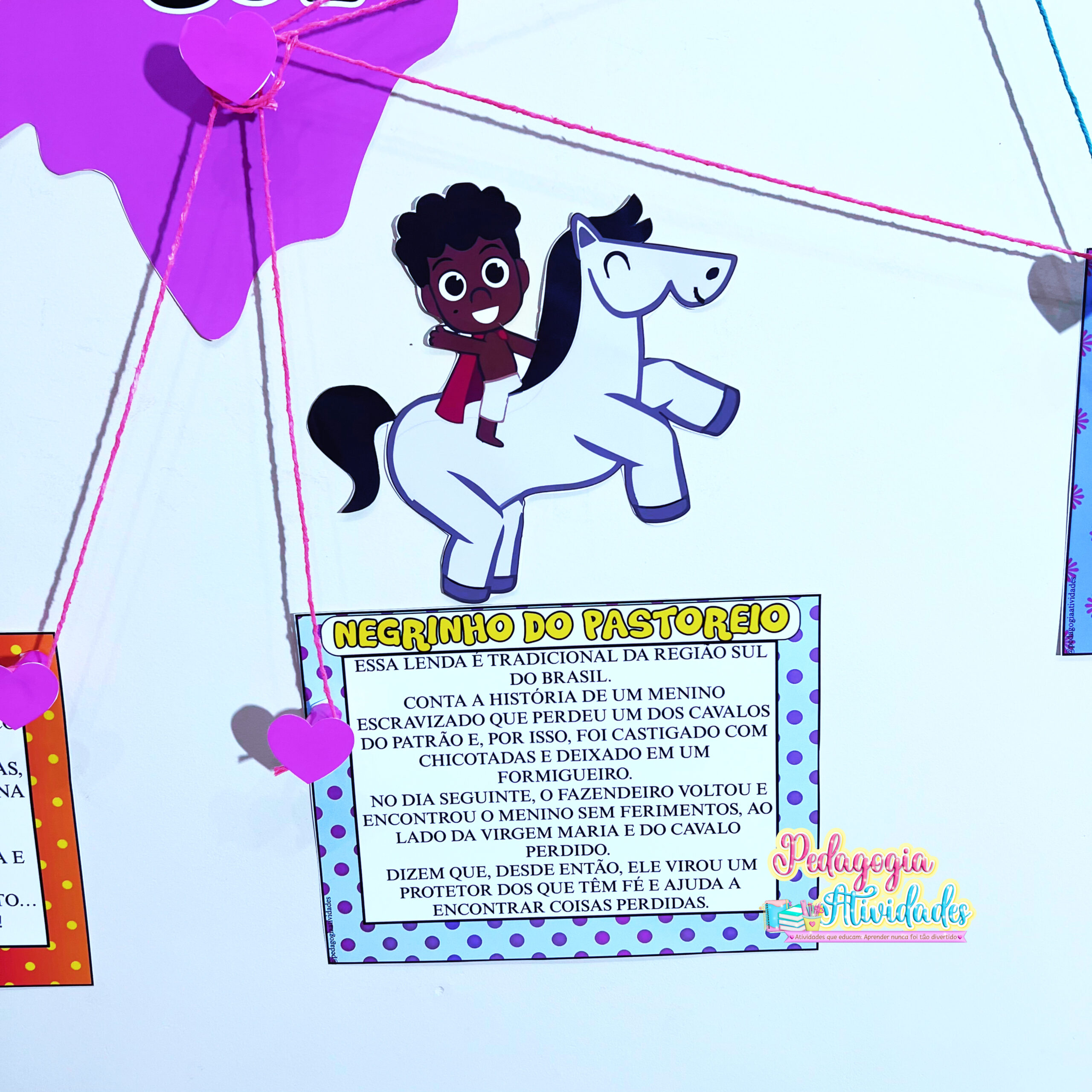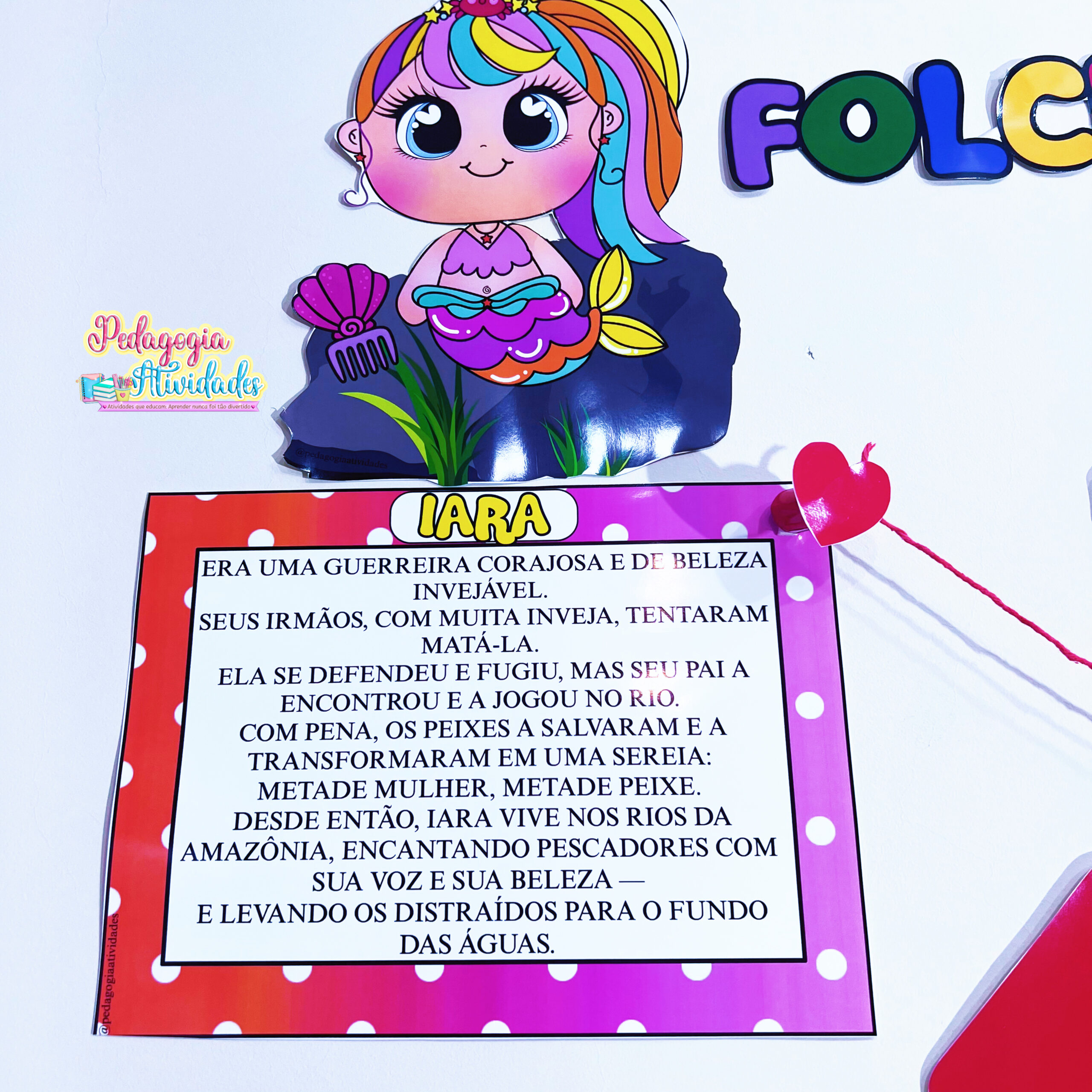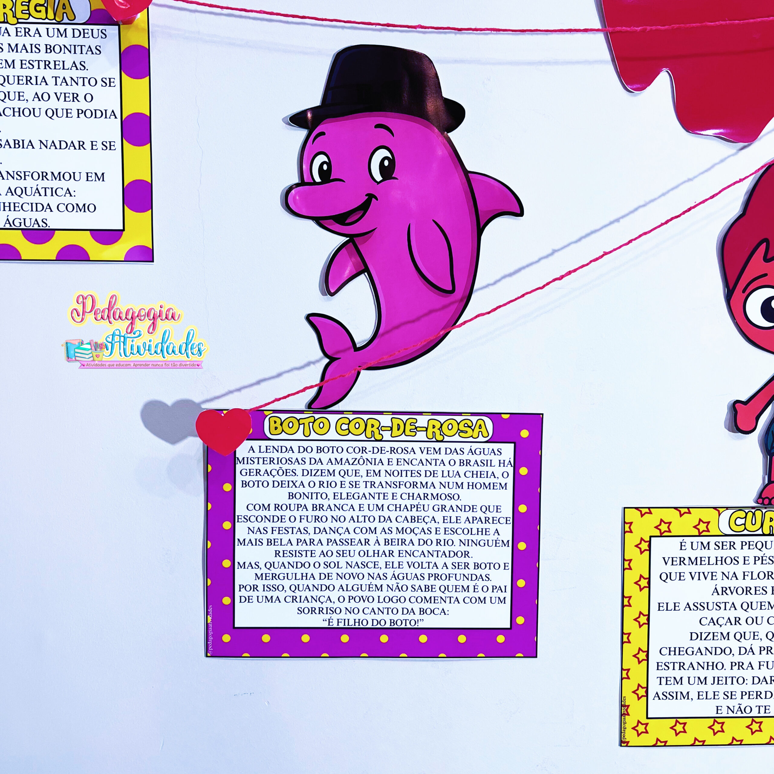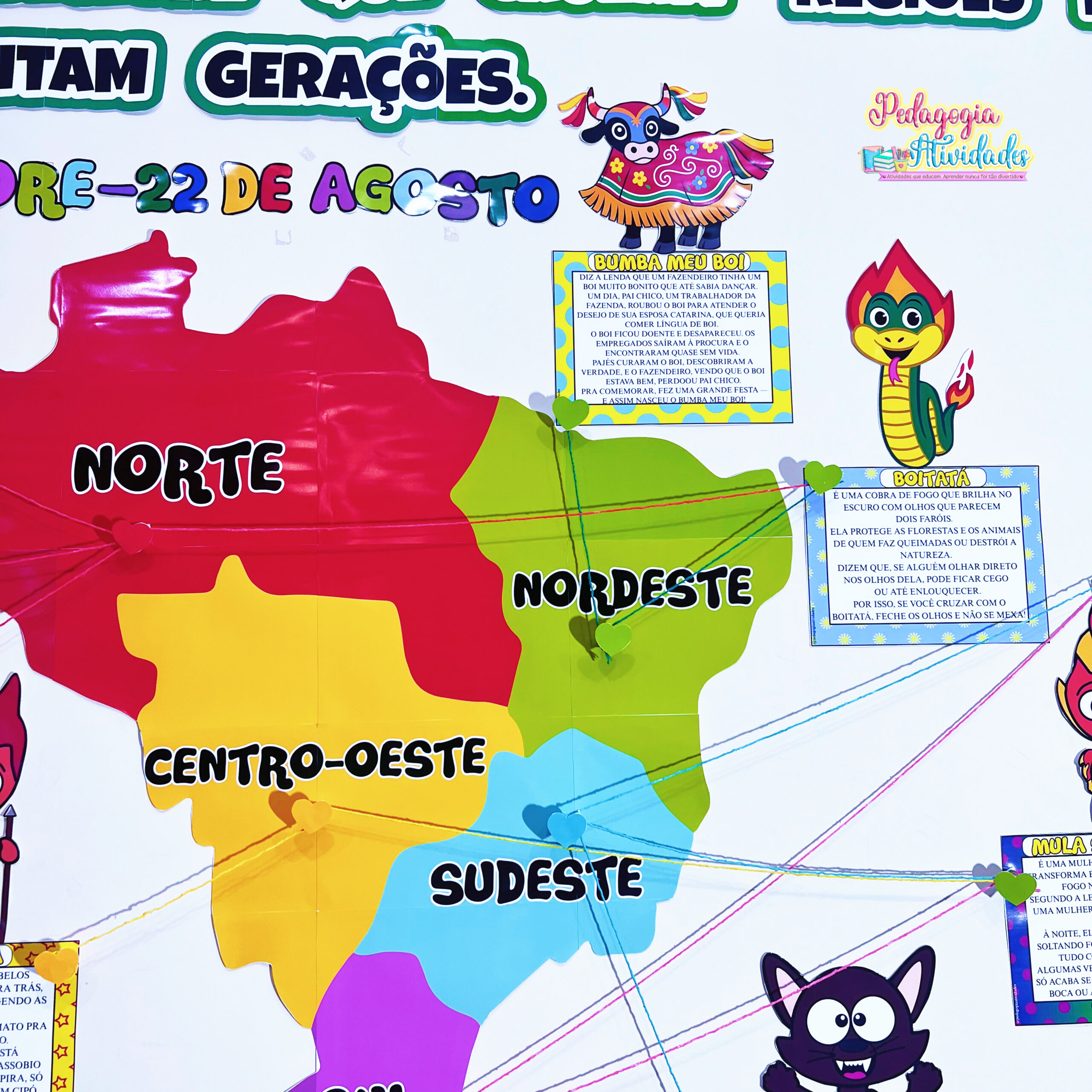 ✔️ Painel com 11 personagens e suas lendas (Iara, Vitória-Régia, Boto Cor-de-Rosa, Curupira, Saci, Negrinho do Pastoreio, Lobisomem, Boitatá, Cuca, Mula sem Cabeça e Boi-Bumbá)