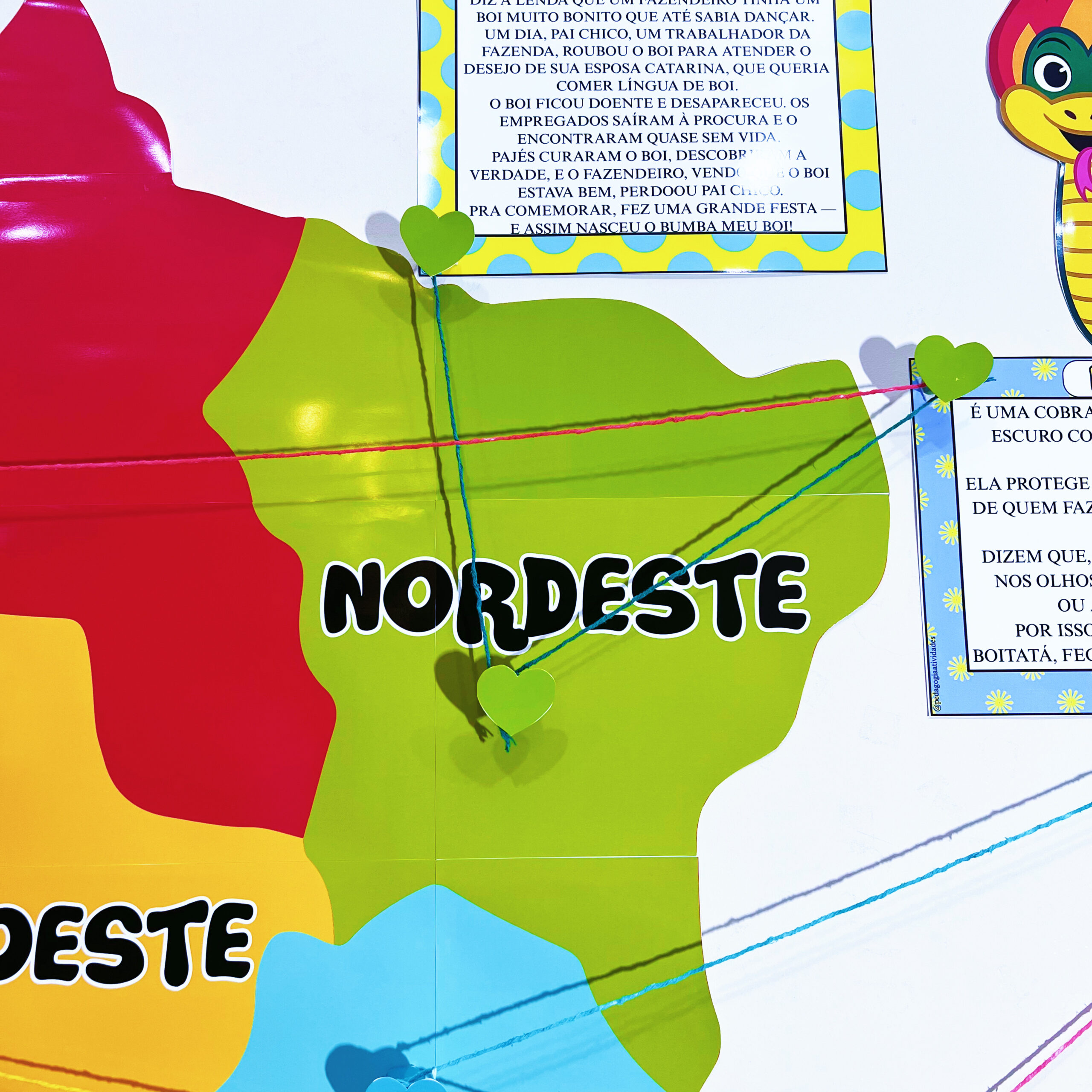 🔥 Um painel interativo que leva as crianças a ligarem cada personagem à sua região de origem, criando um verdadeiro mapa mental das nossas tradições.