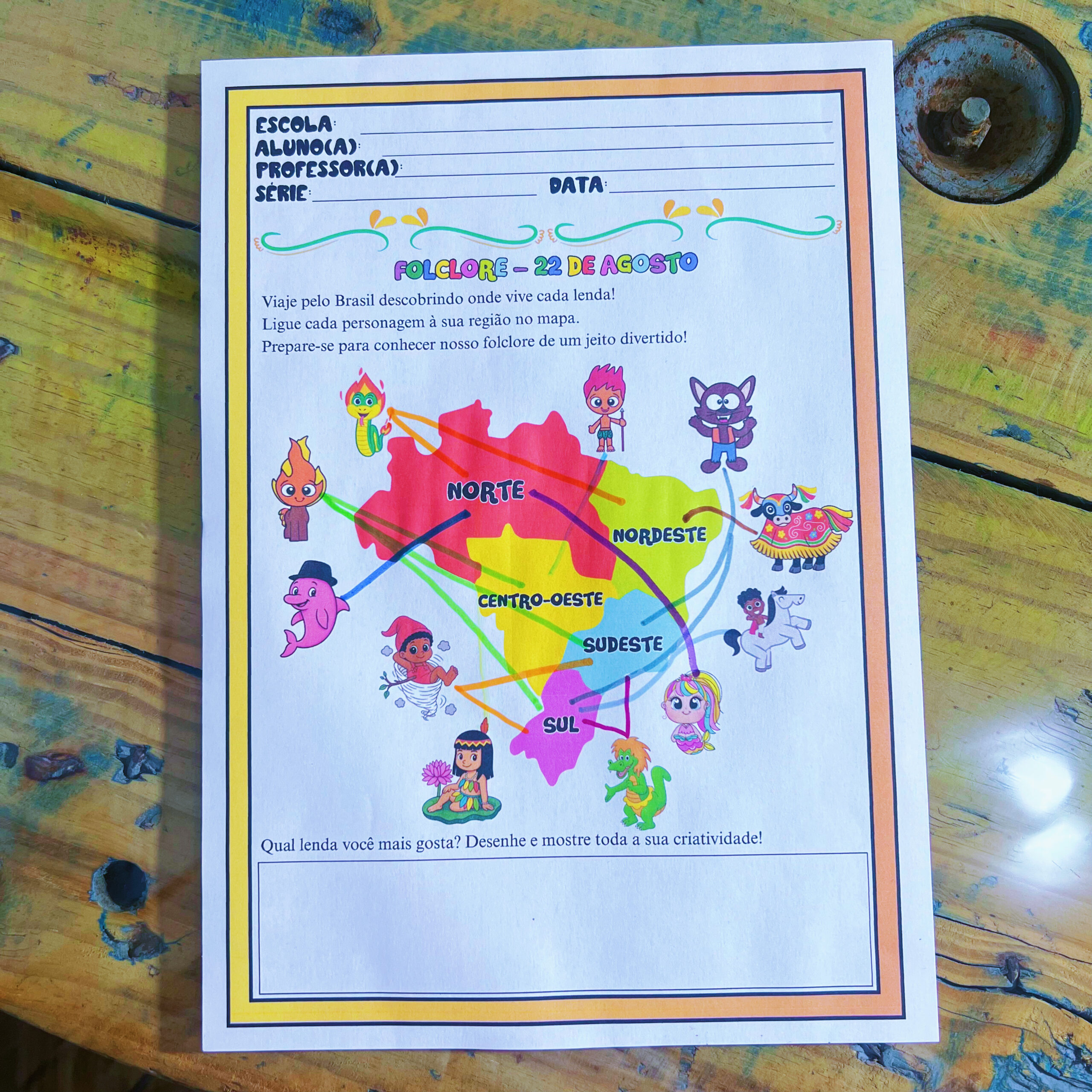 ✔️ Atividade extra: folha para ligar cada lenda à sua região