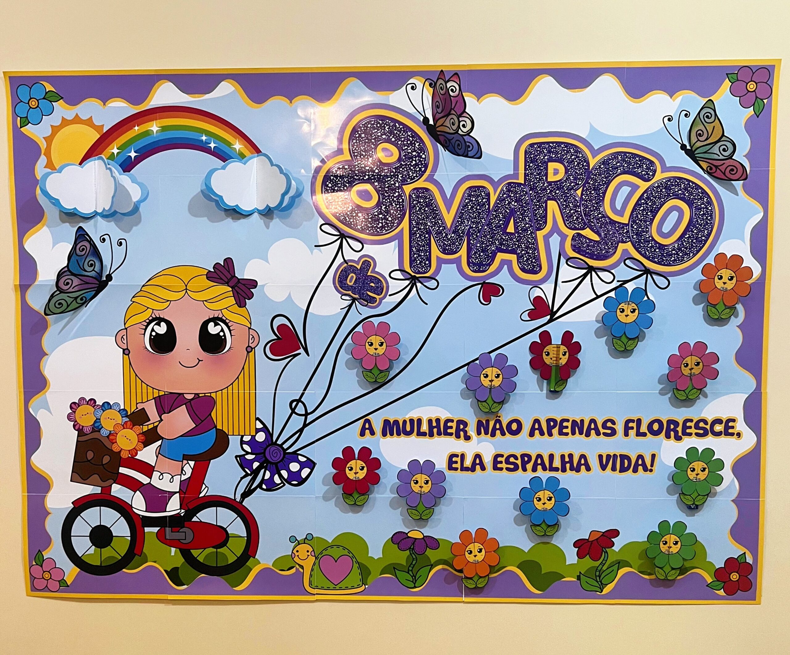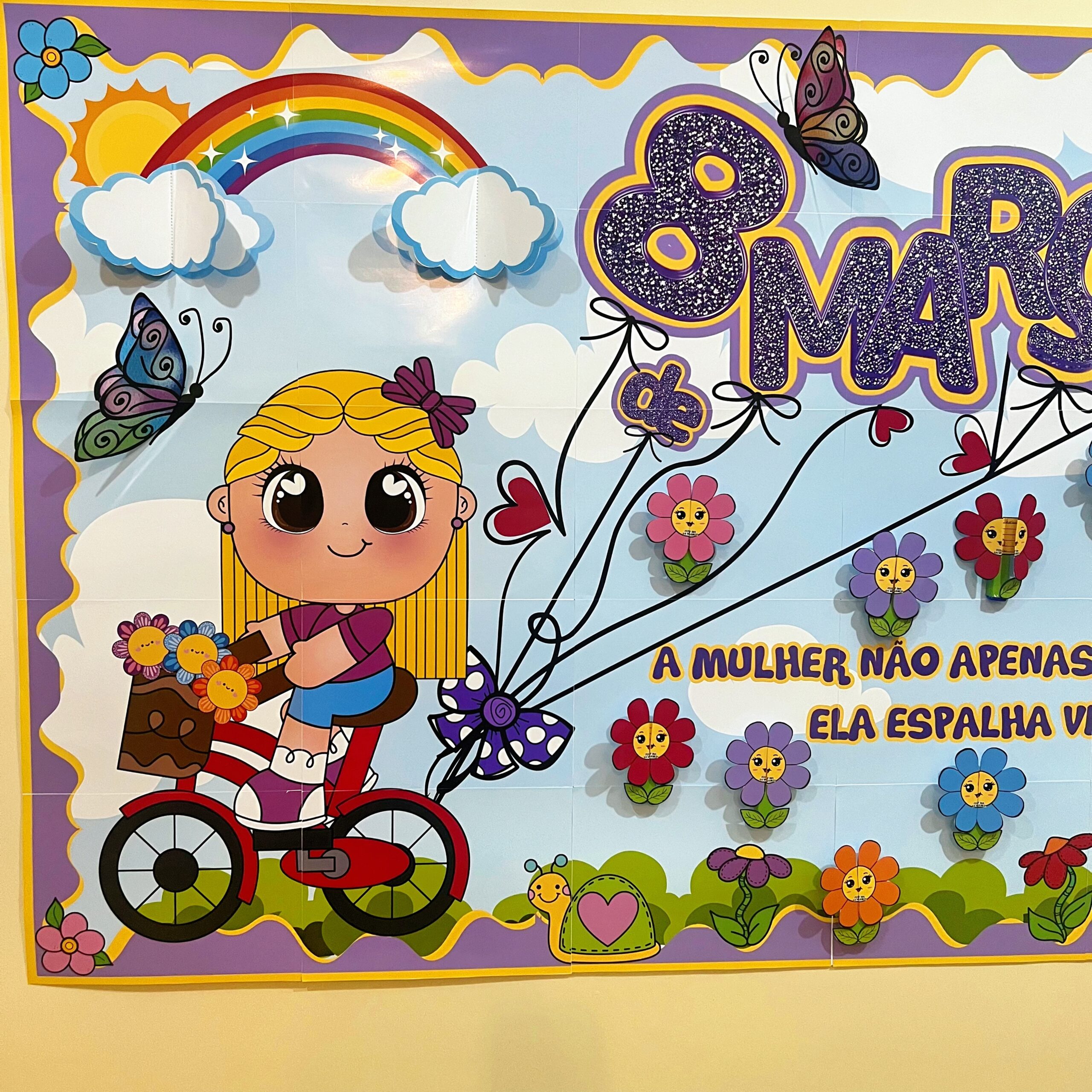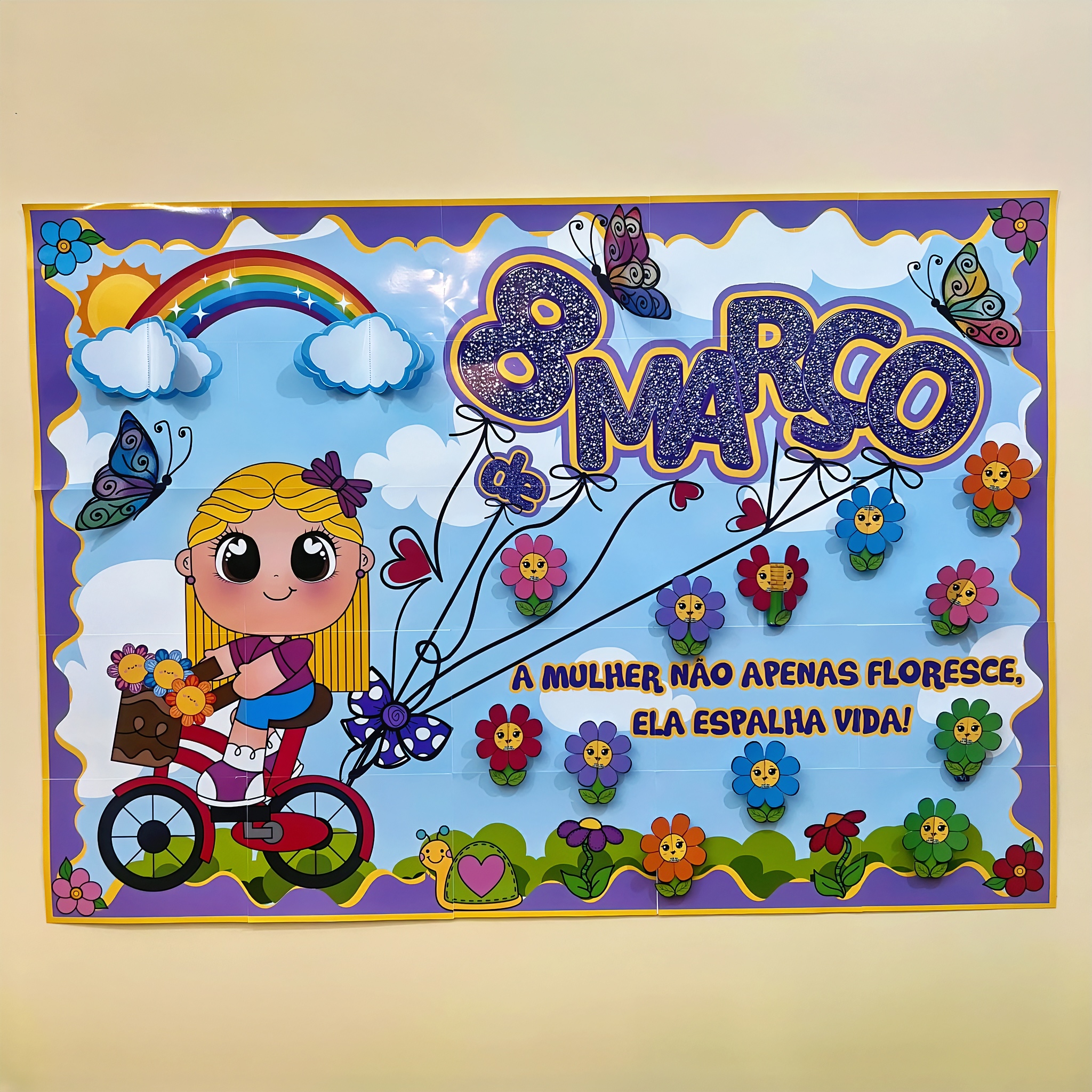 Transforme sua sala de aula ou evento escolar em um momento inesquecível, celebrando o empoderamento e a força das mulheres! Este painel encantador traz elementos 3D, flores e a palavra “MULHER” em um acróstico, criando um ambiente de aprendizagem lúdico e envolvente para todos os alunos. 🌸✨