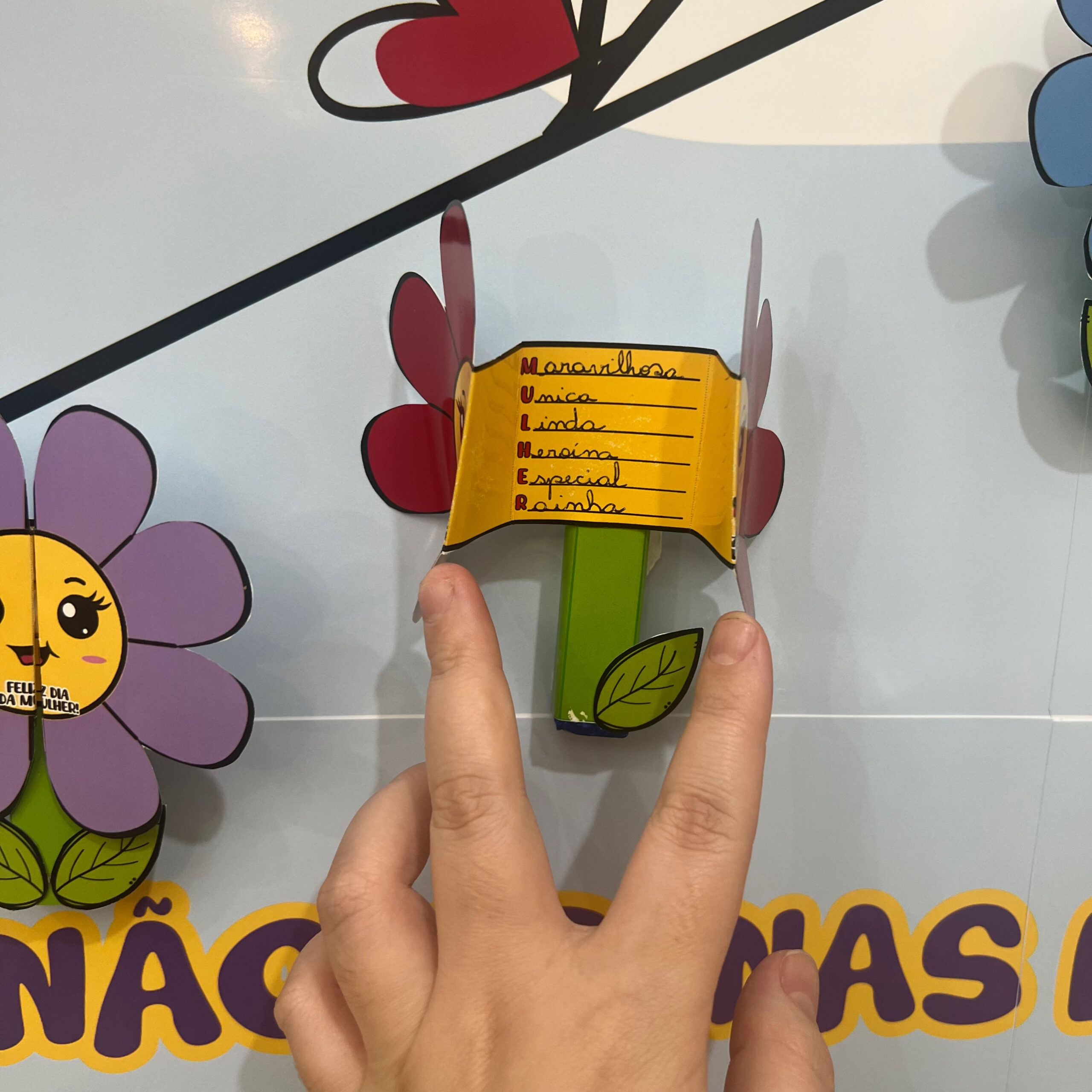 🎁 BÔNUS ESPECIAL! Ganhe uma linda e simbólica lembrancinha com um Bis colocado no caule da flor, para presentear seus alunos com ainda mais alegria! 🍫🌸