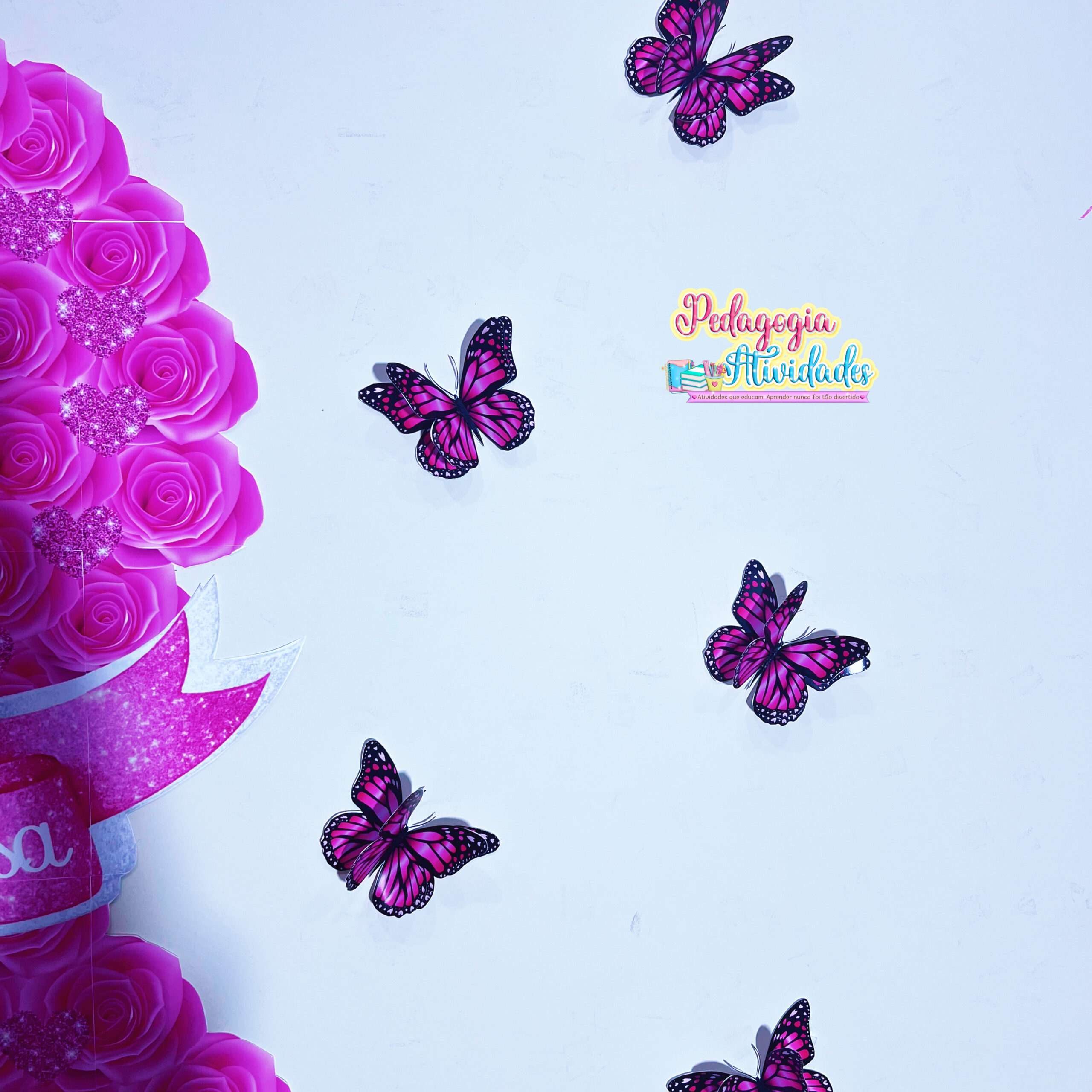 Basta imprimir, recortar e montar: componha o laço com flores, adicione as borboletas 3D e, se quiser, inclua um espelho para criar um cantinho reflexivo e cheio de amor-próprio. 💖