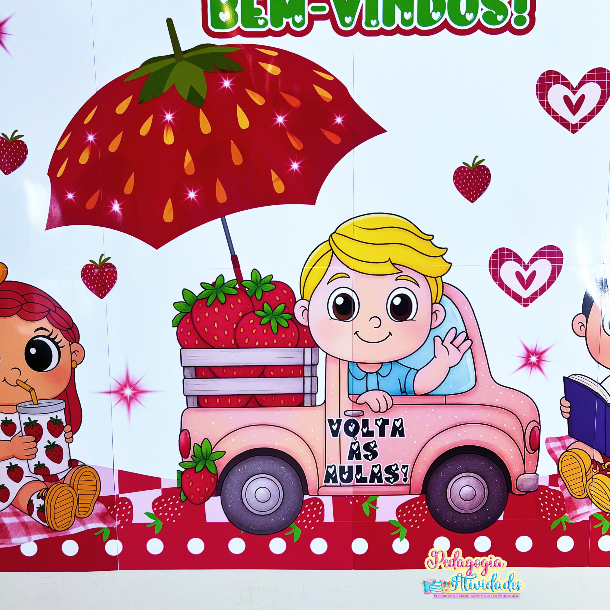 Monte esse painel com os alunos e transforme o retorno em um momento inesquecível — cheio de afeto, cor e encantamento! 🍓💖
