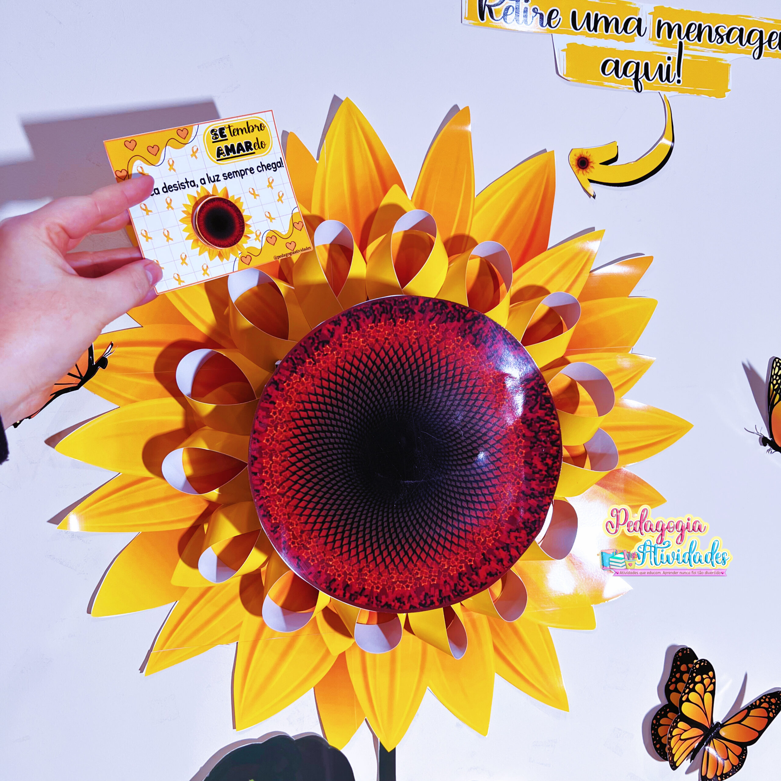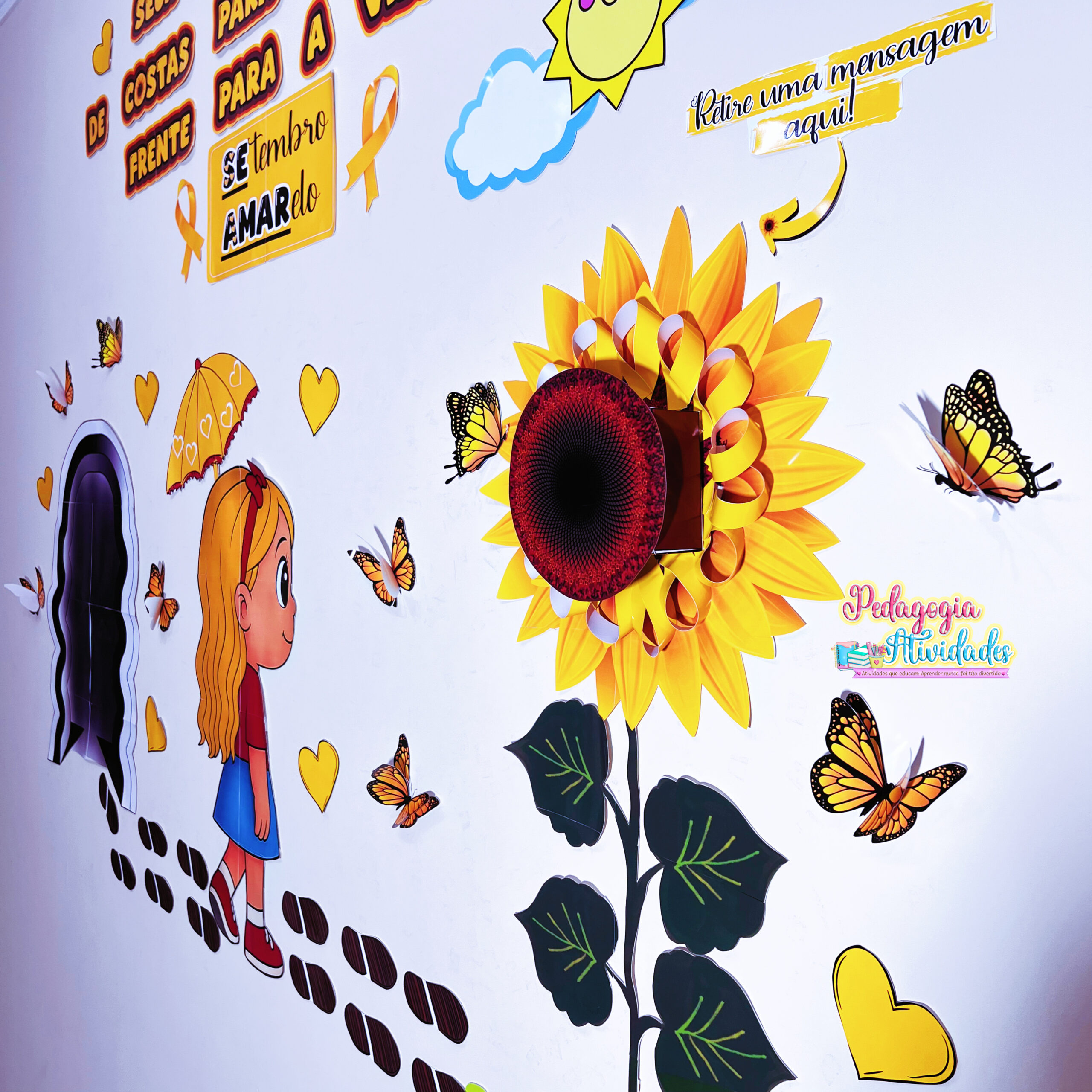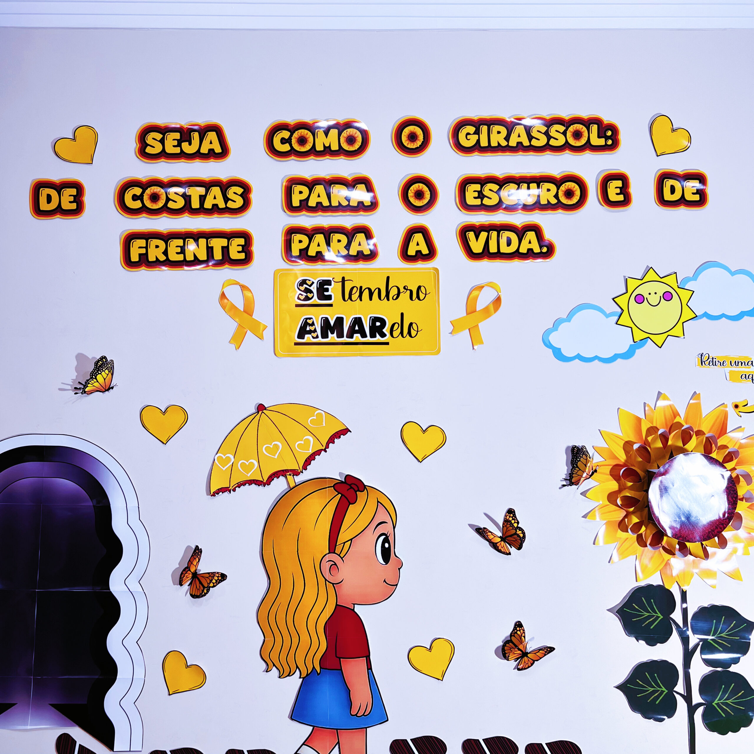 🔥 Um painel interativo que une mensagem de valorização da vida com a simbologia do girassol, trazendo reflexão, acolhimento e esperança para os alunos.