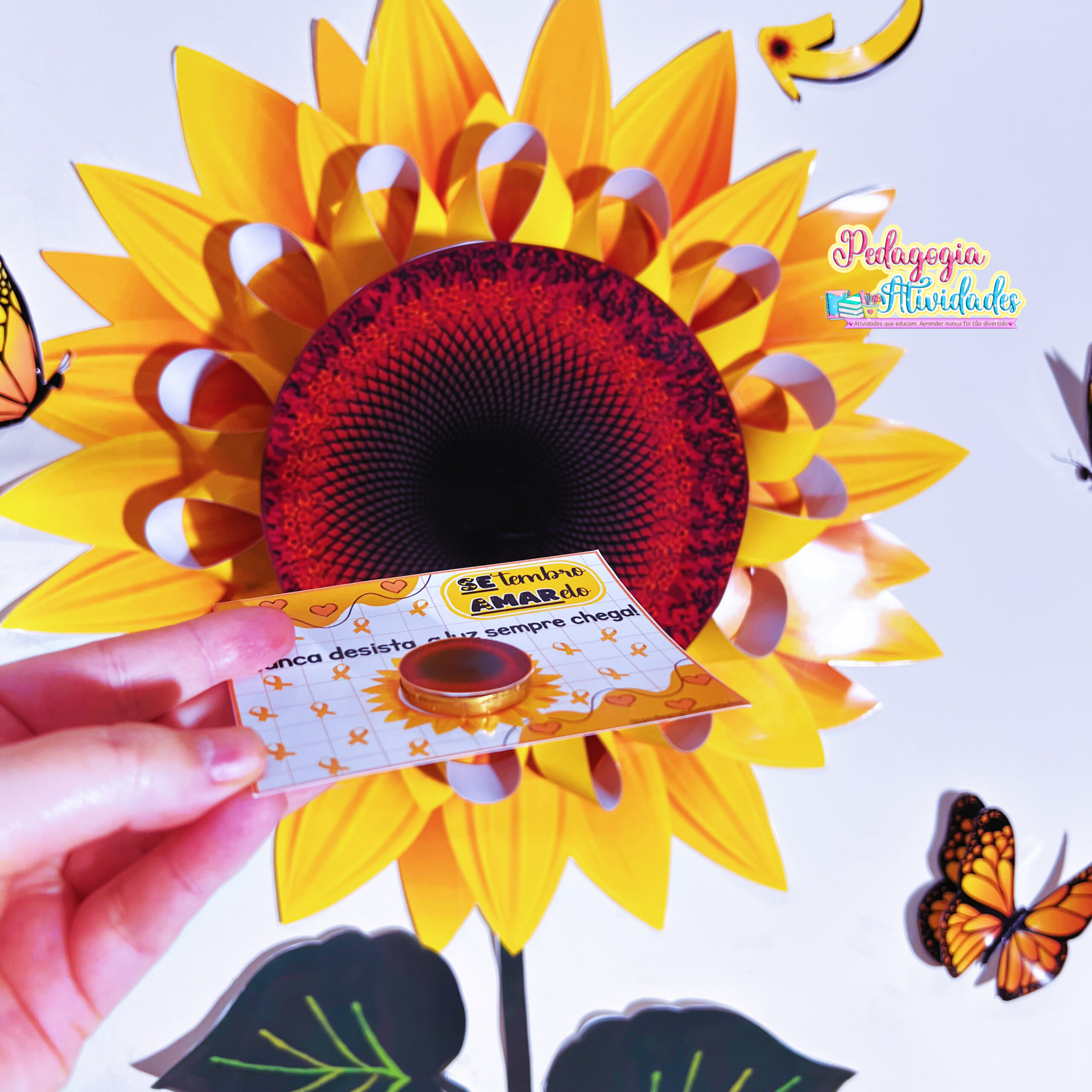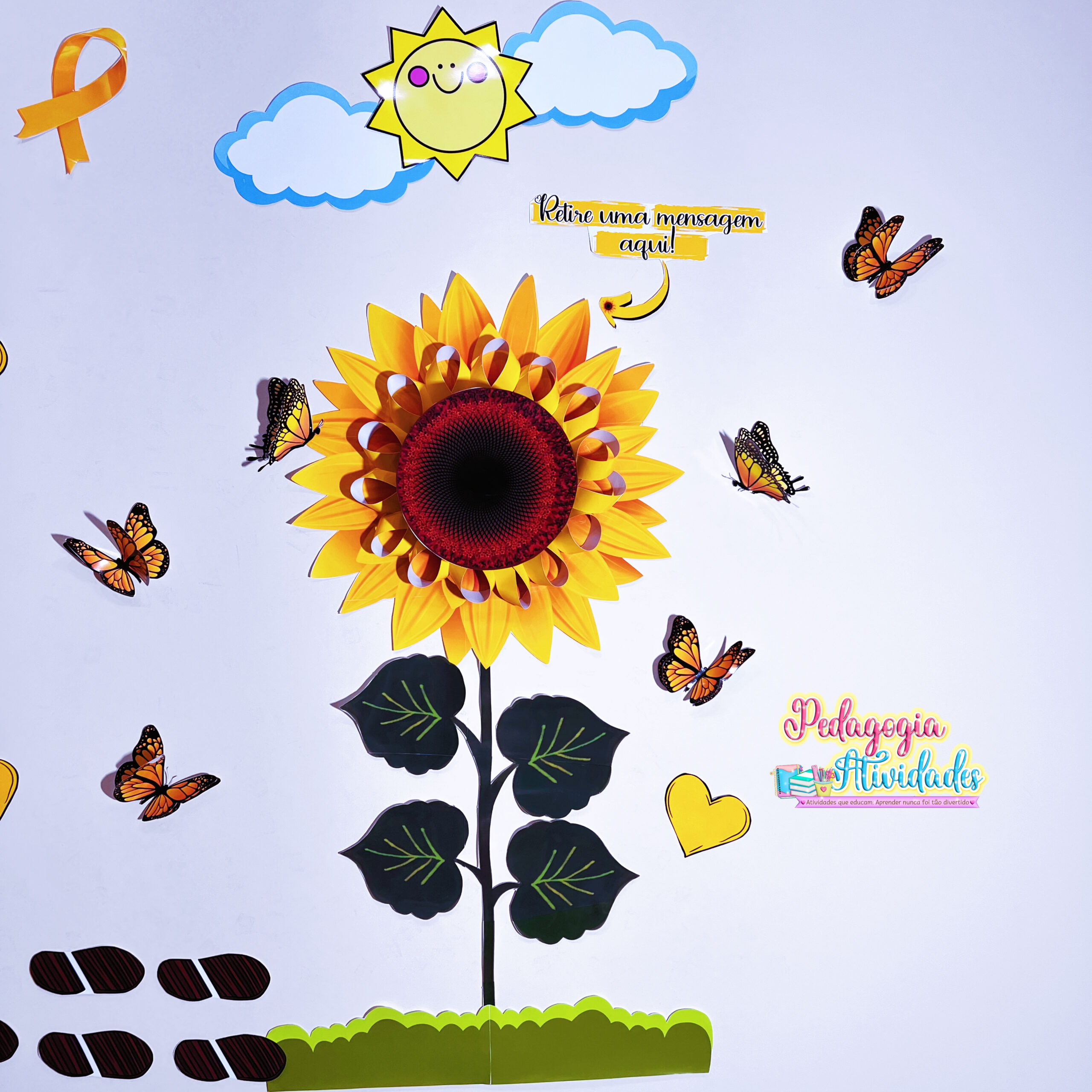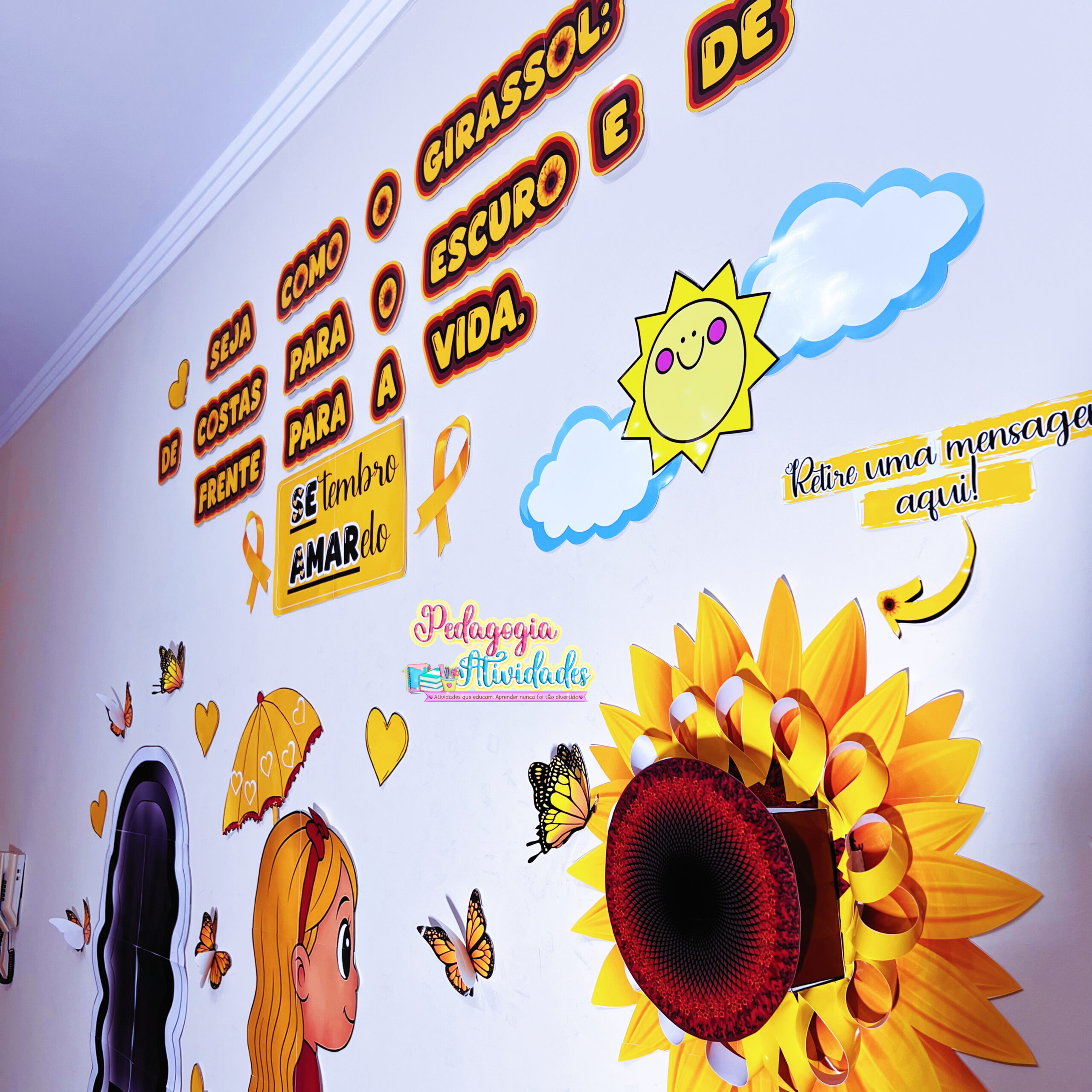 🔥 Um painel interativo que une mensagem de valorização da vida com a simbologia do girassol, trazendo reflexão, acolhimento e esperança para os alunos.