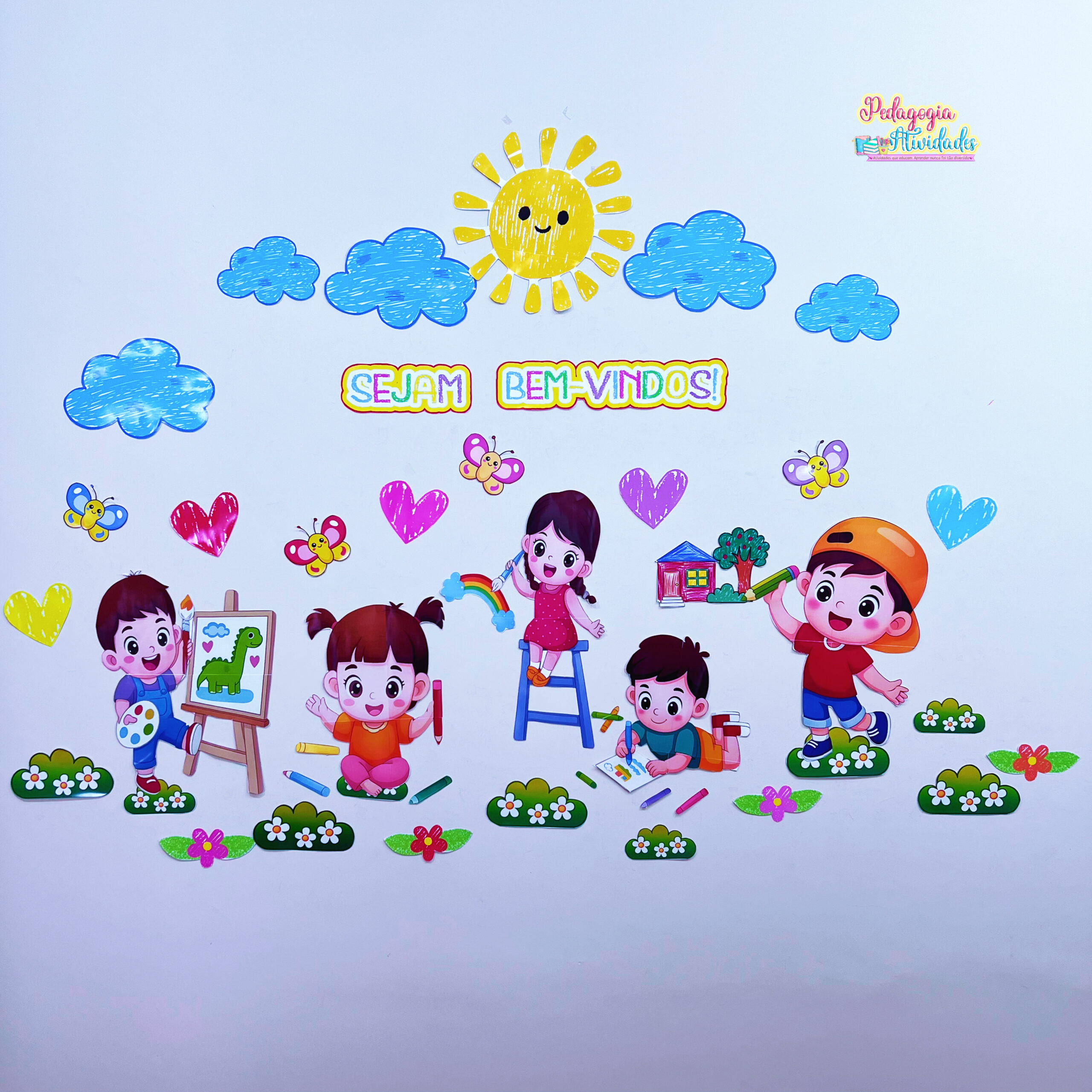 Ideal para acolhida, painéis de boas-vindas, decoração de salas, corredores e espaços escolares, ele cria um ambiente convidativo, lúdico e perfeito para registros fotográficos 📸🎈
