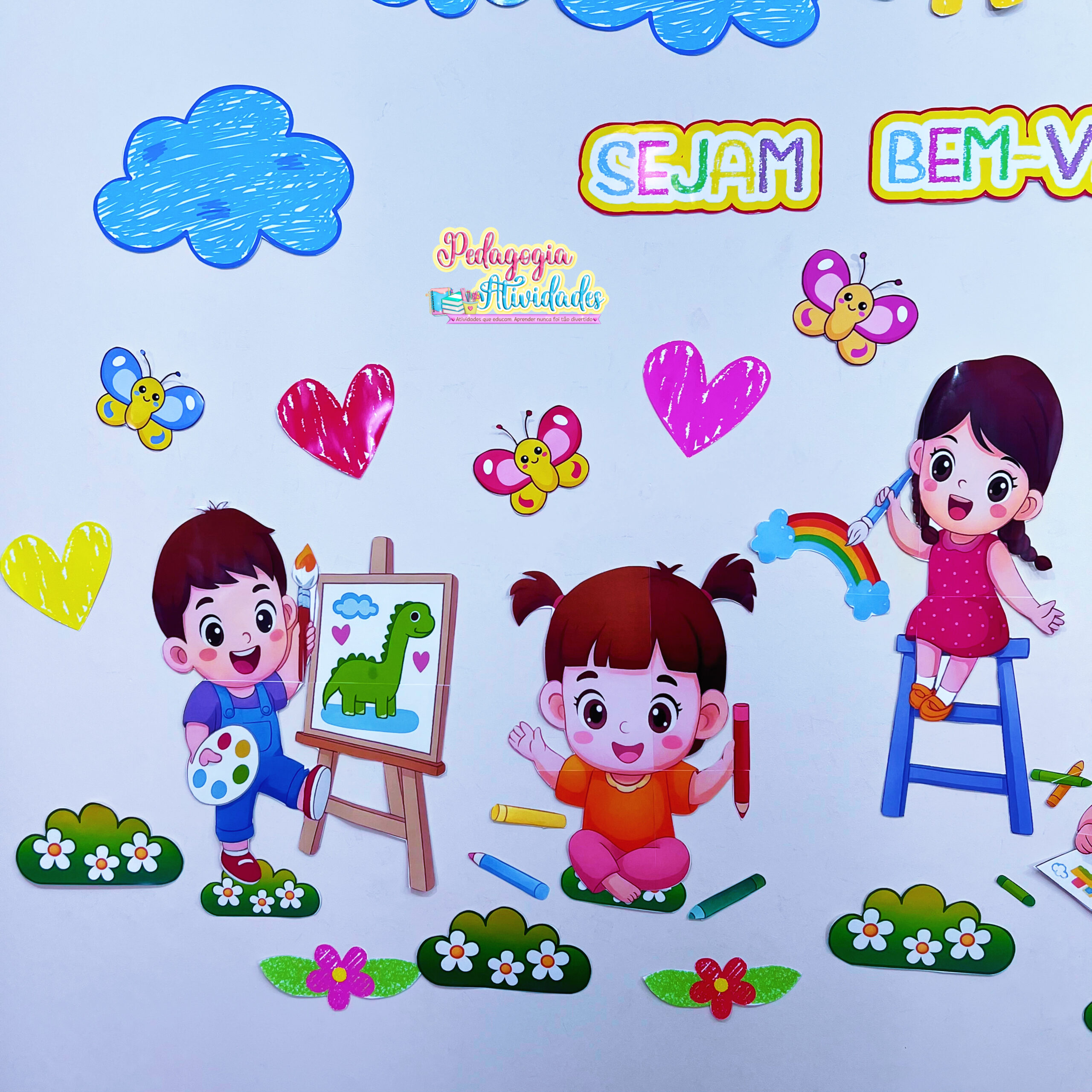 Com ilustrações infantis, cores vibrantes e uma proposta visual leve, o painel deixa a volta às aulas muito mais especial e inesquecível ✨📚
