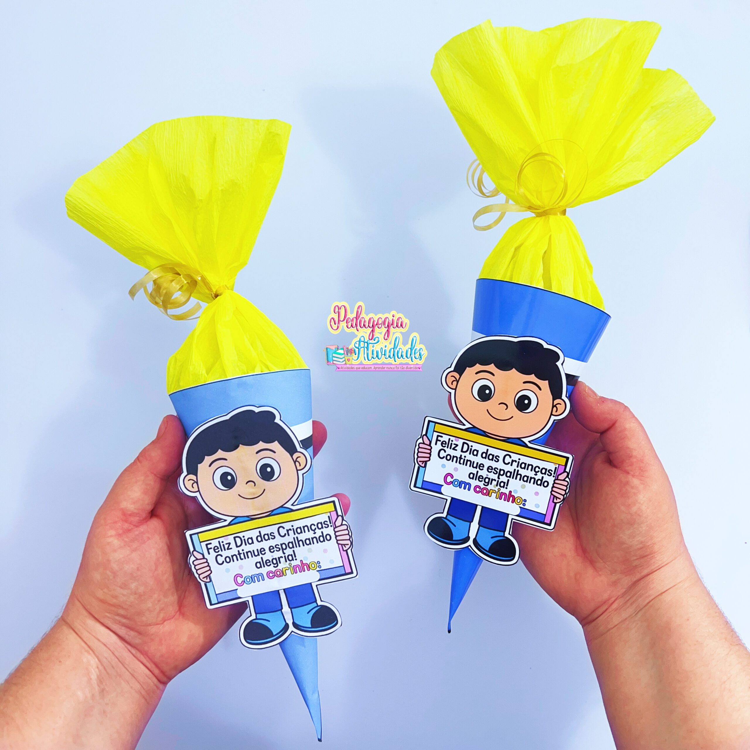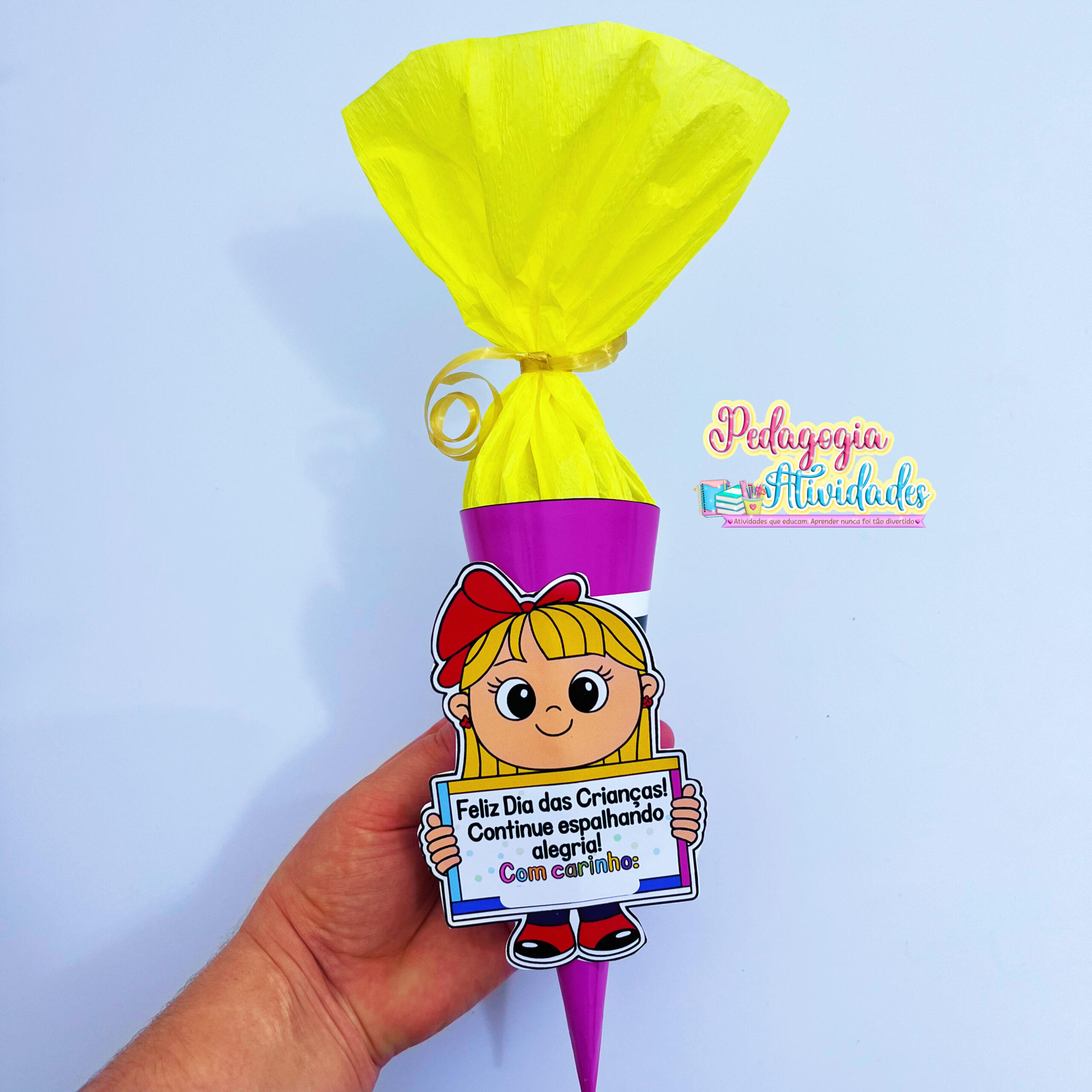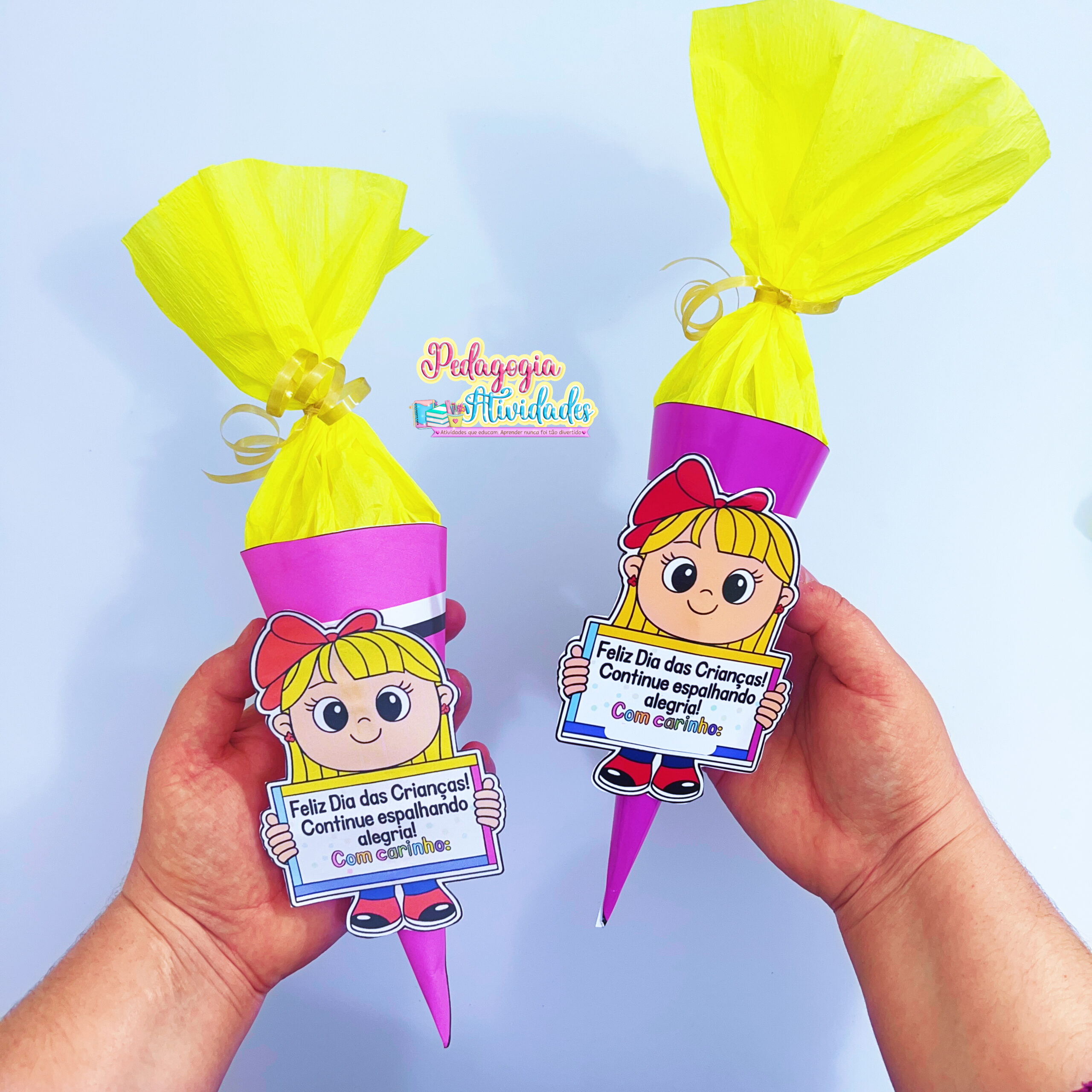 Porta Lembrancinha em Formato de Cone – Dia das Crianças