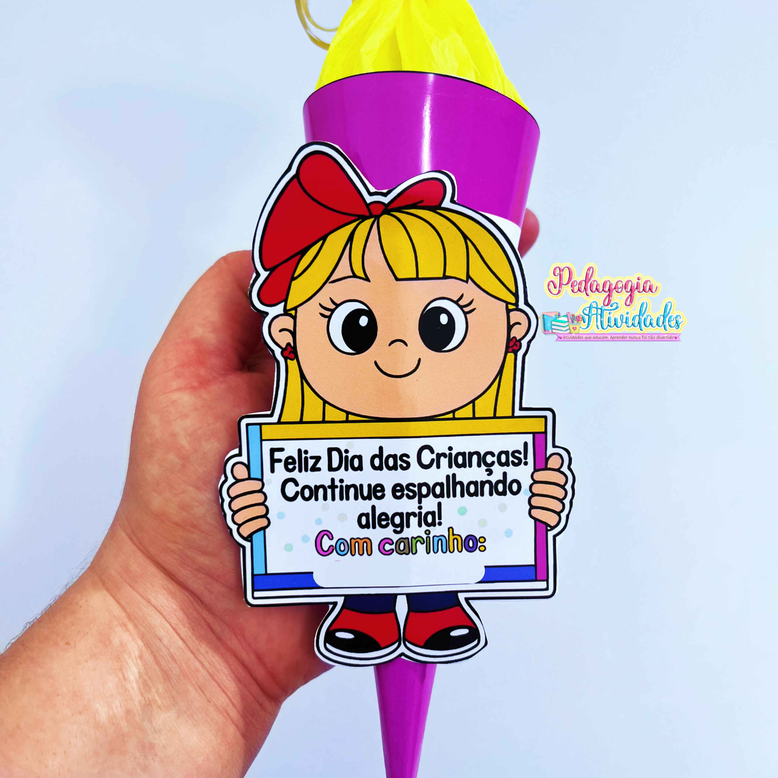 🎉 Porta Lembrancinha em Formato de Cone – Dia das Crianças 🎉