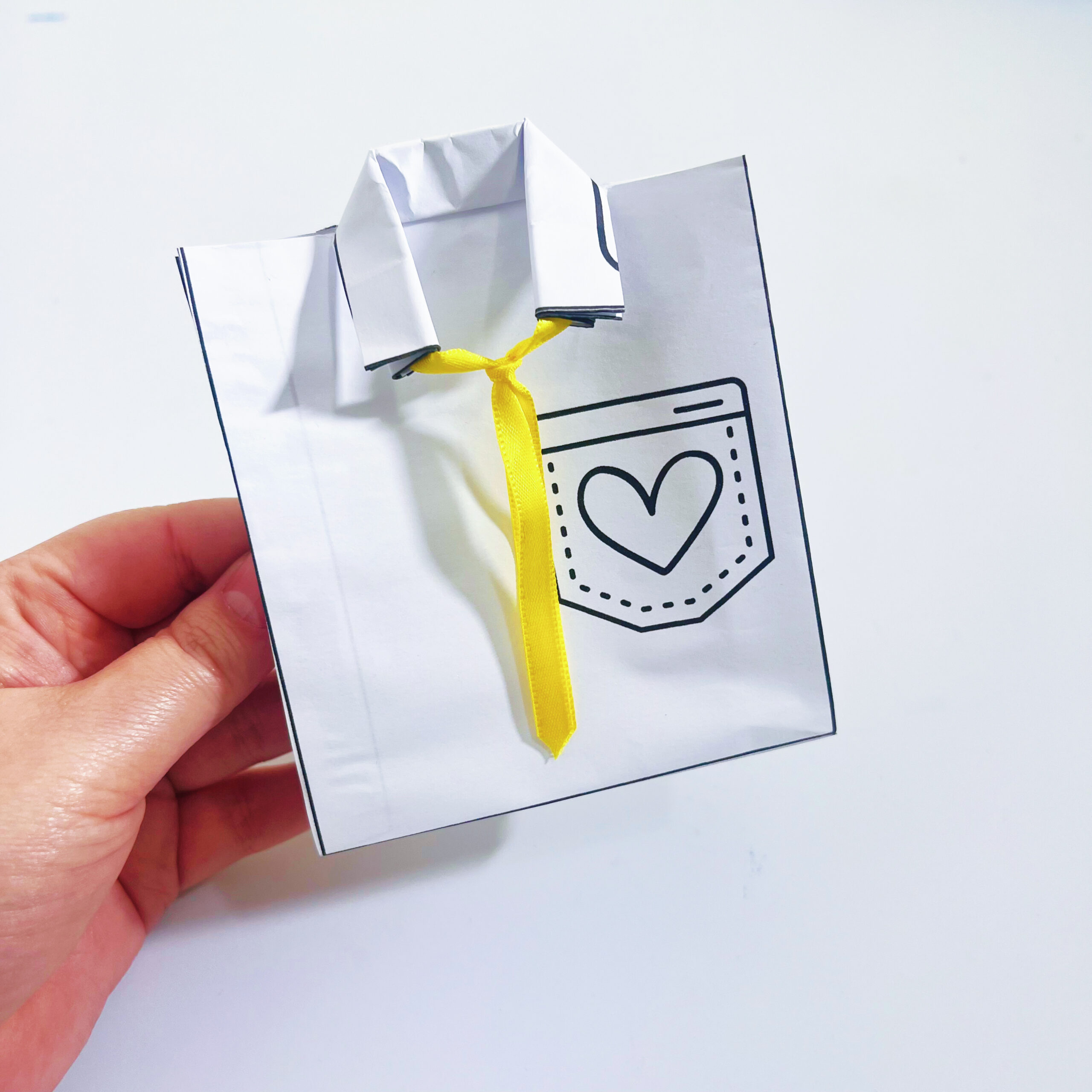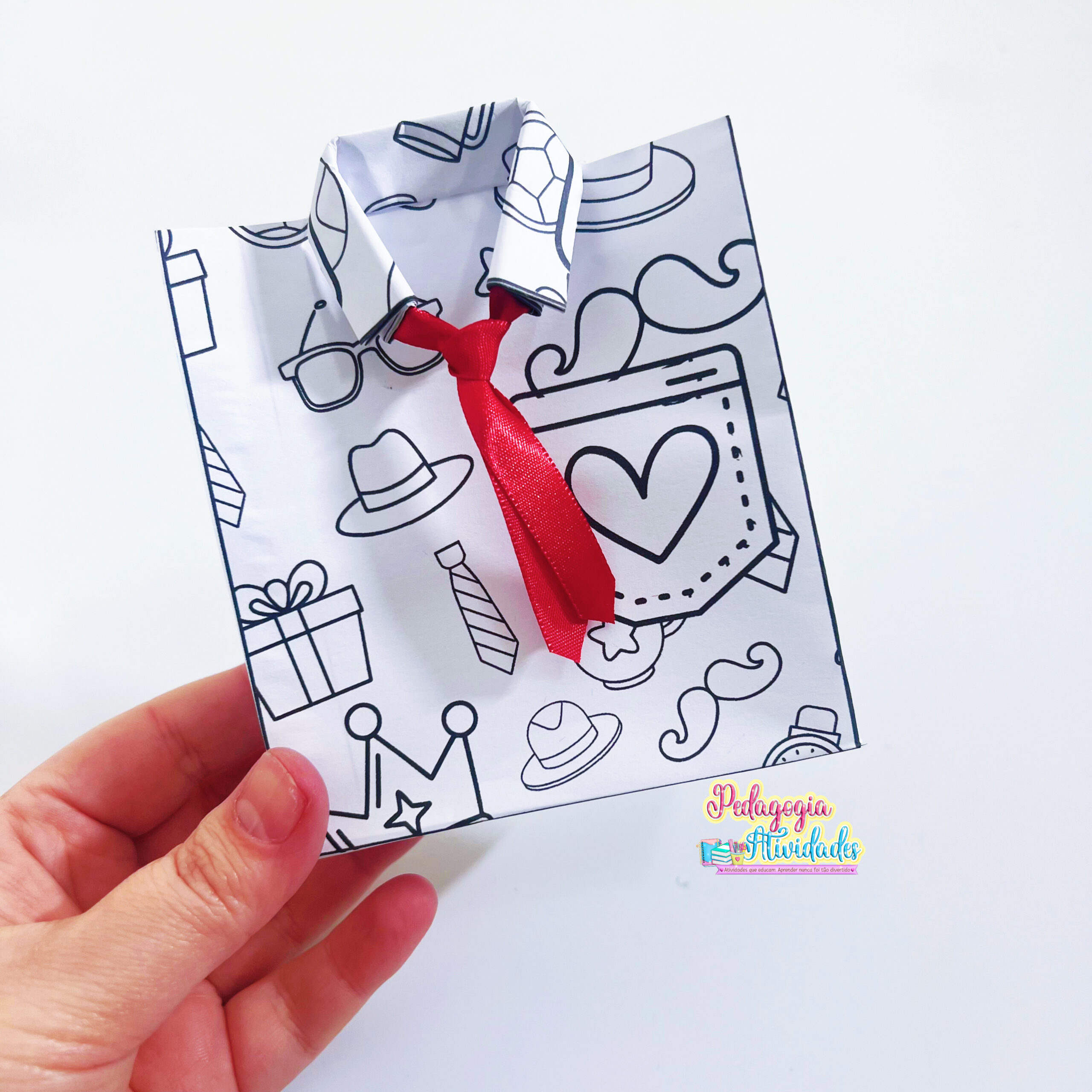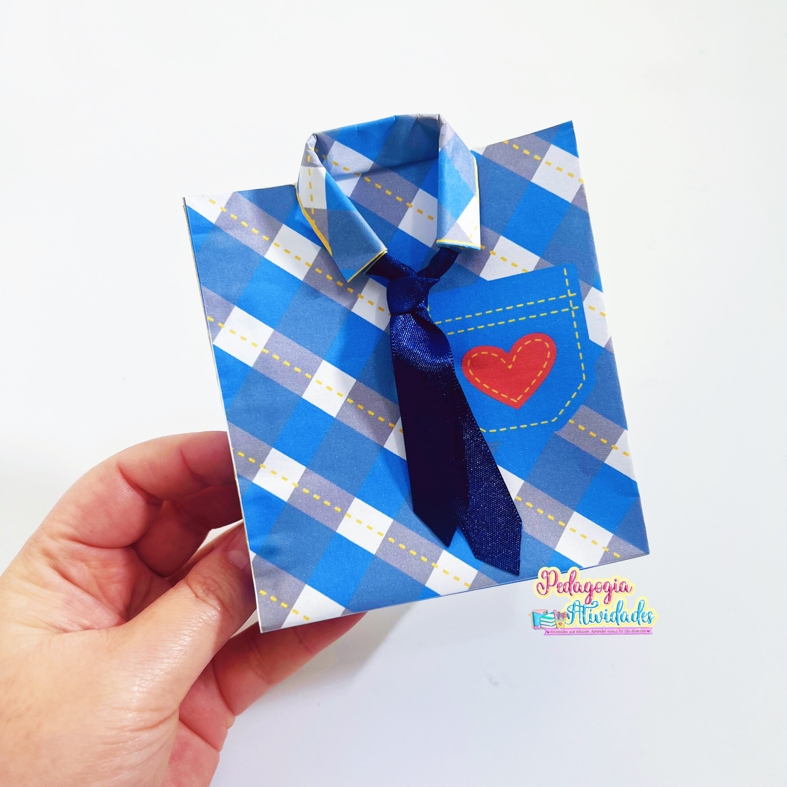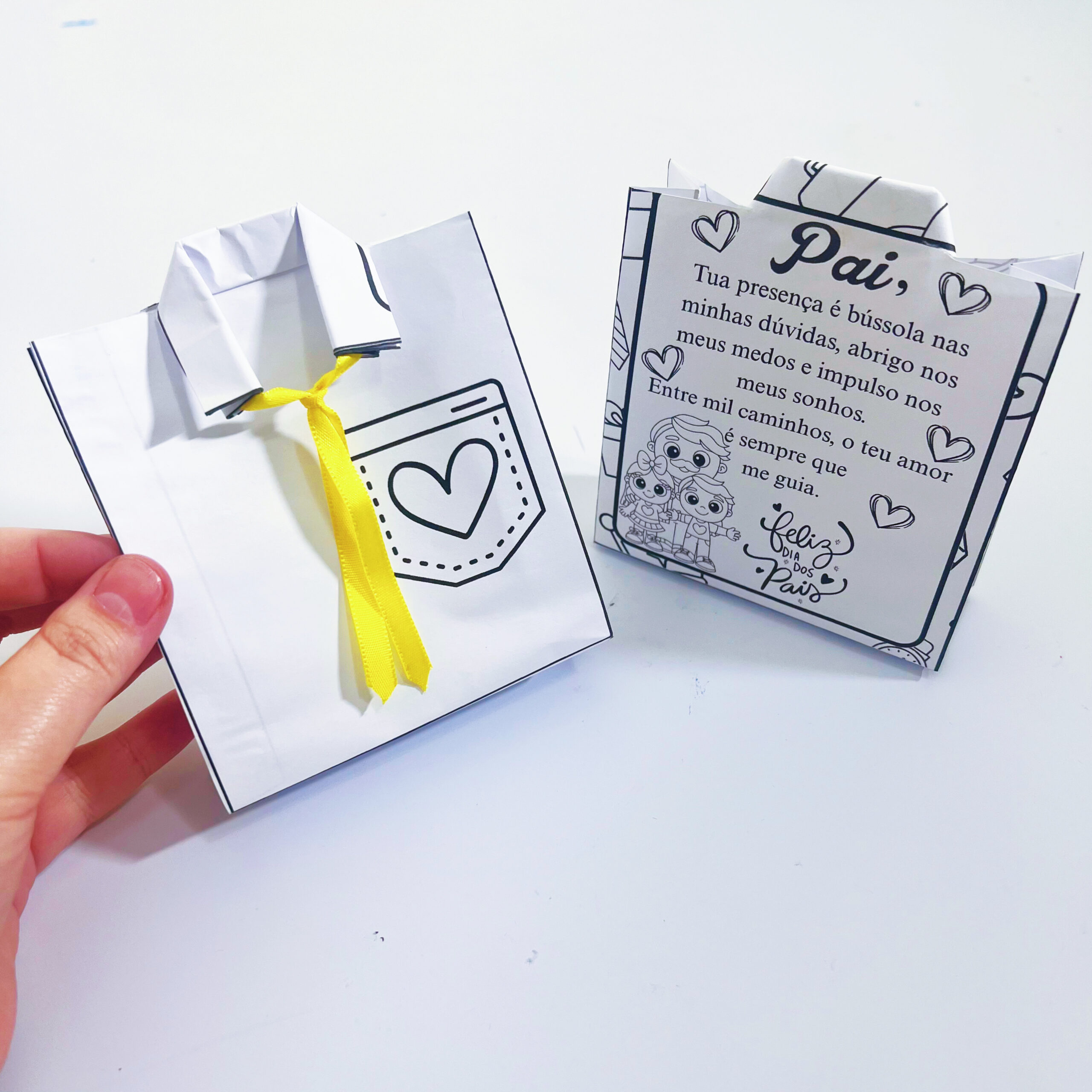Transforme uma simples folha em uma camisa personalizada com espaço para bombons, doces ou bilhetinhos especiais!