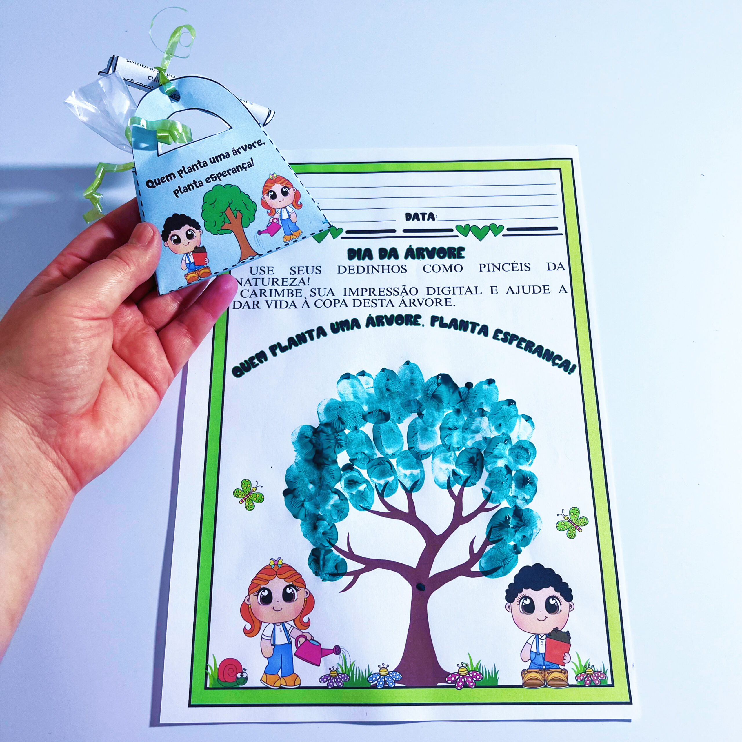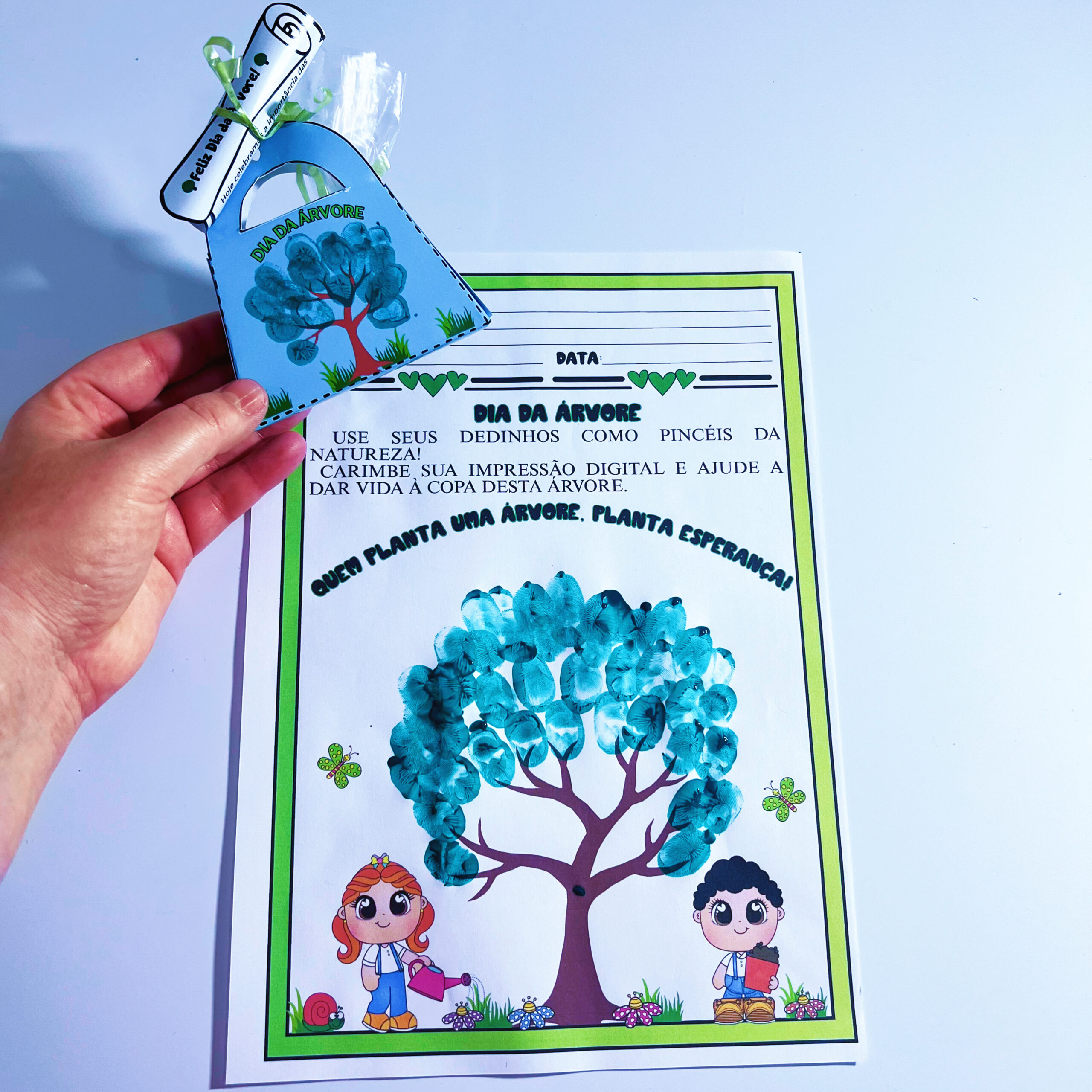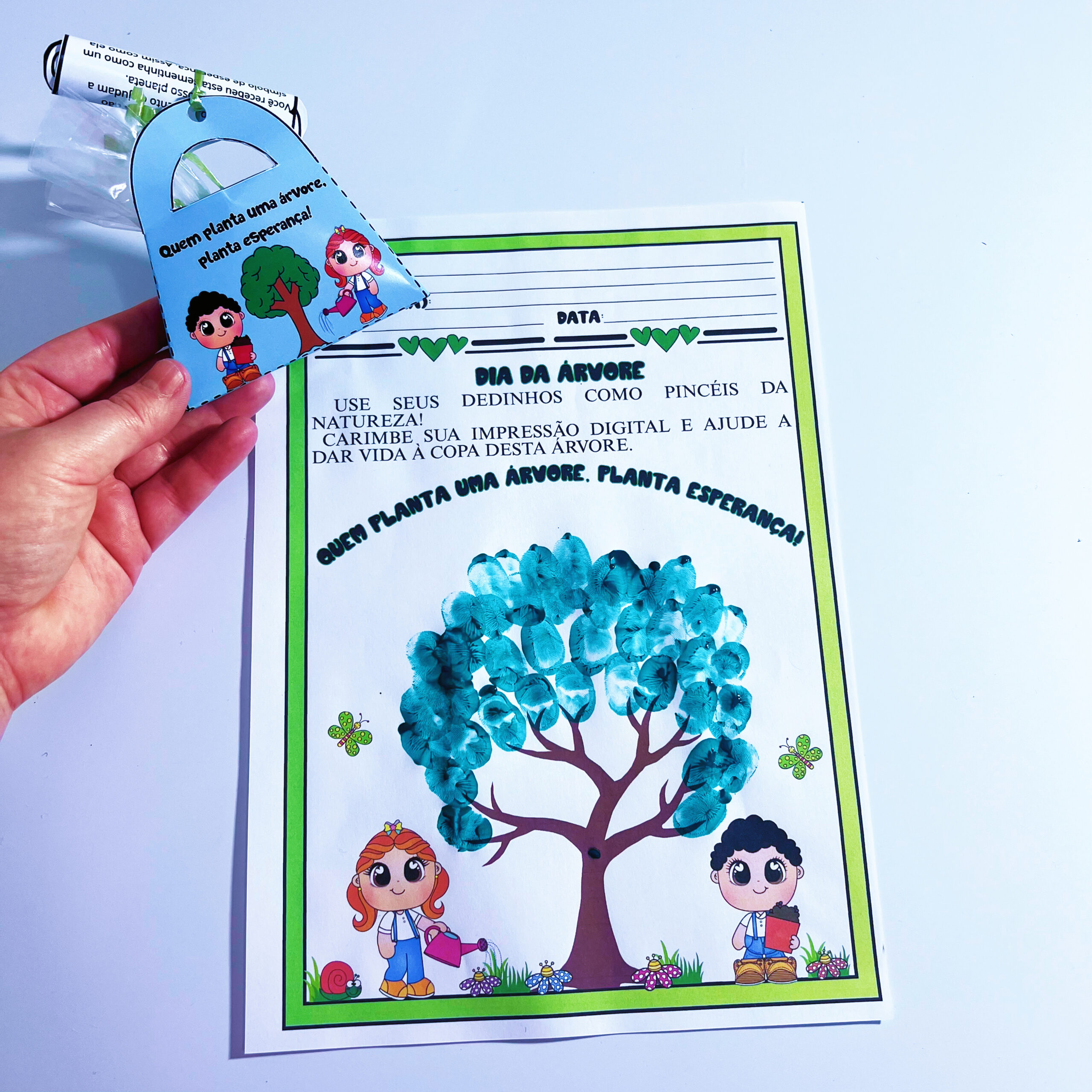 ✨ Acompanha também uma atividade pedagógica: folha para carimbar as digitais formando uma árvore.