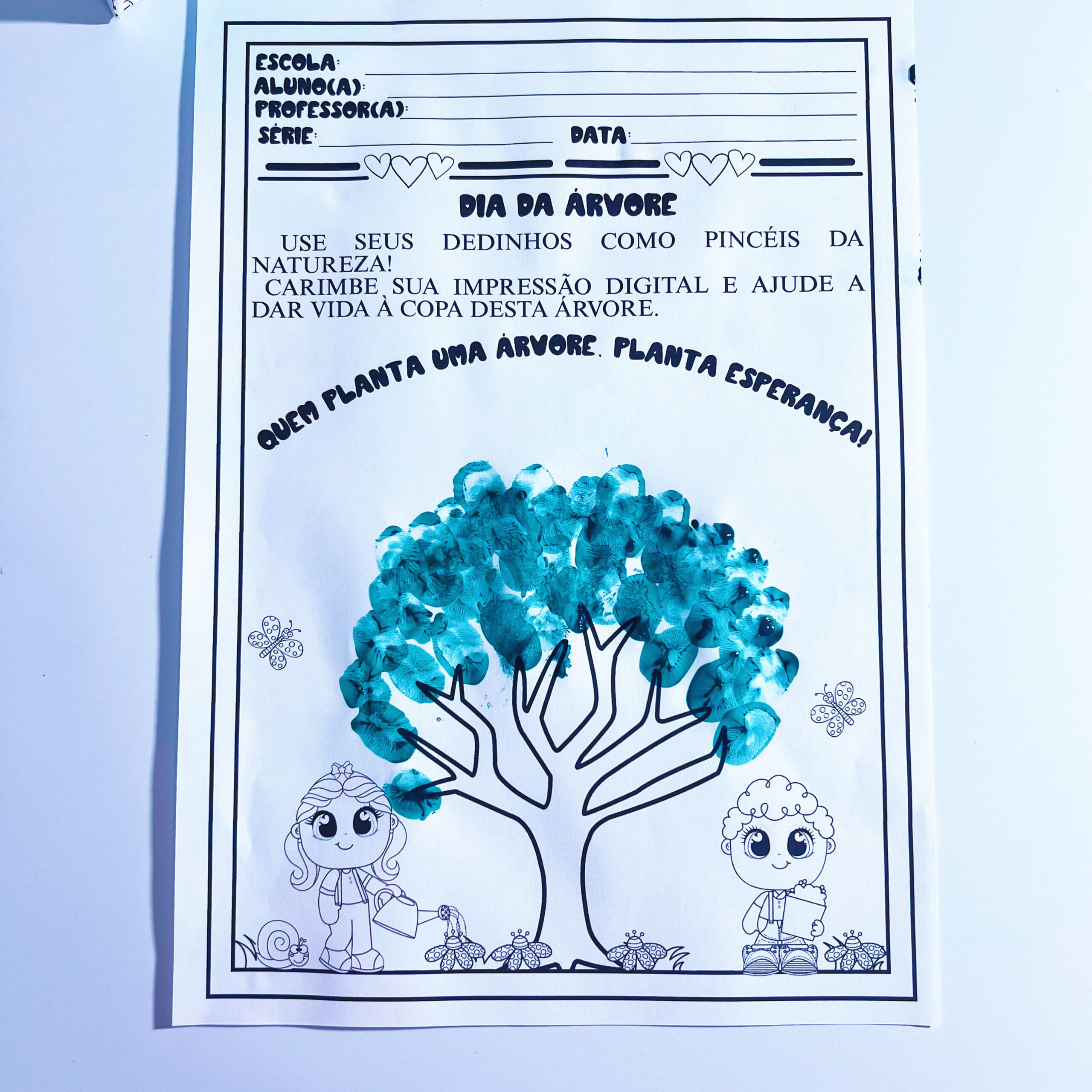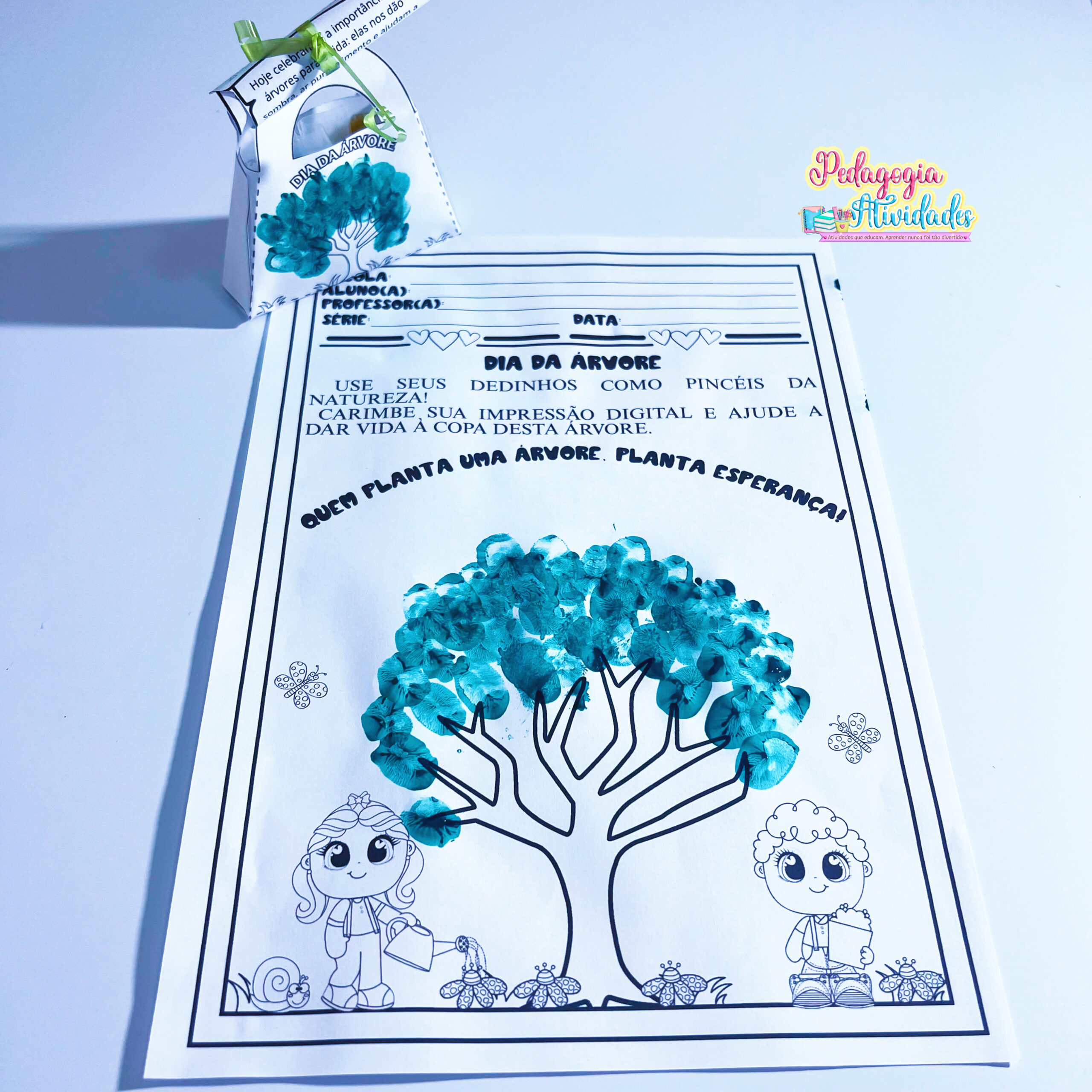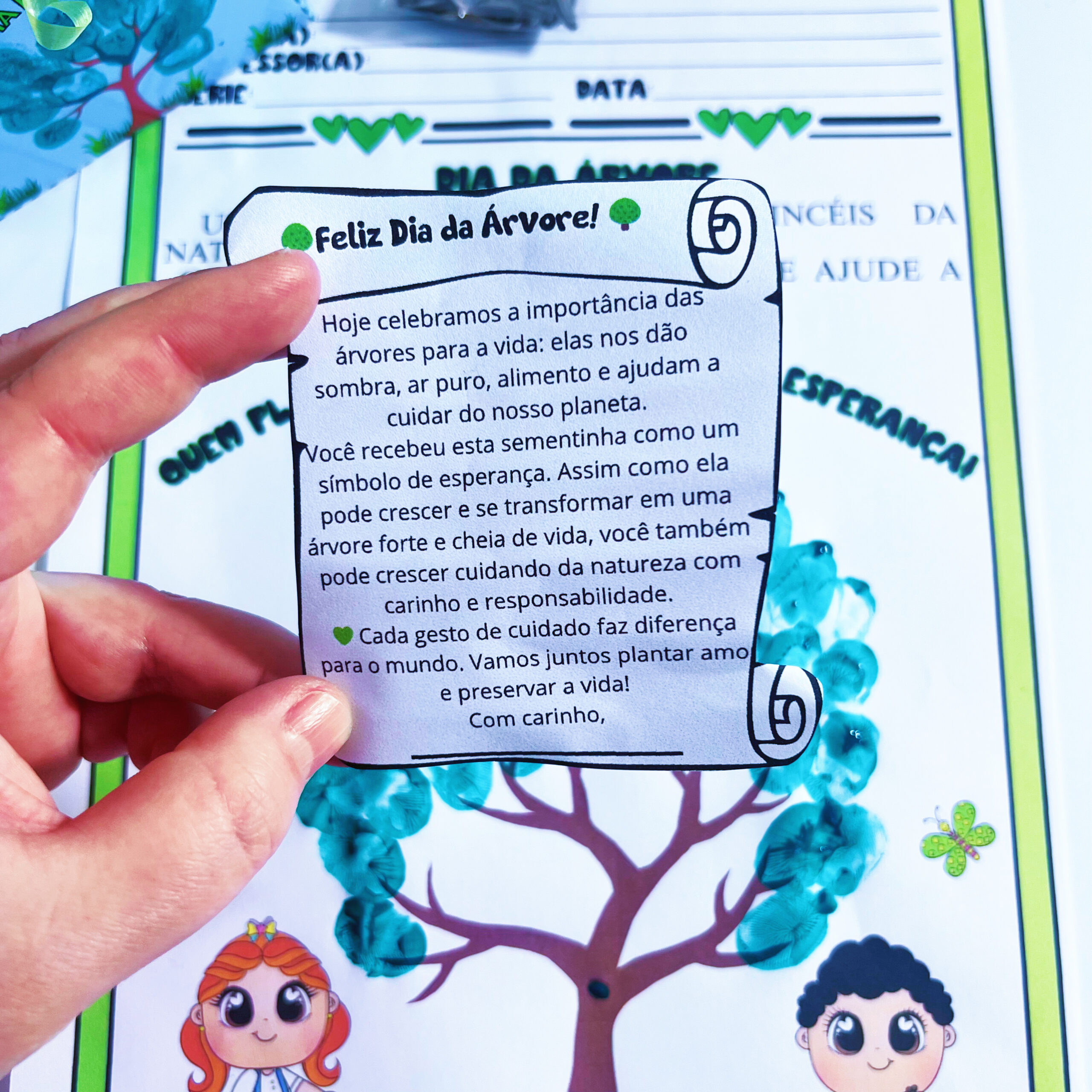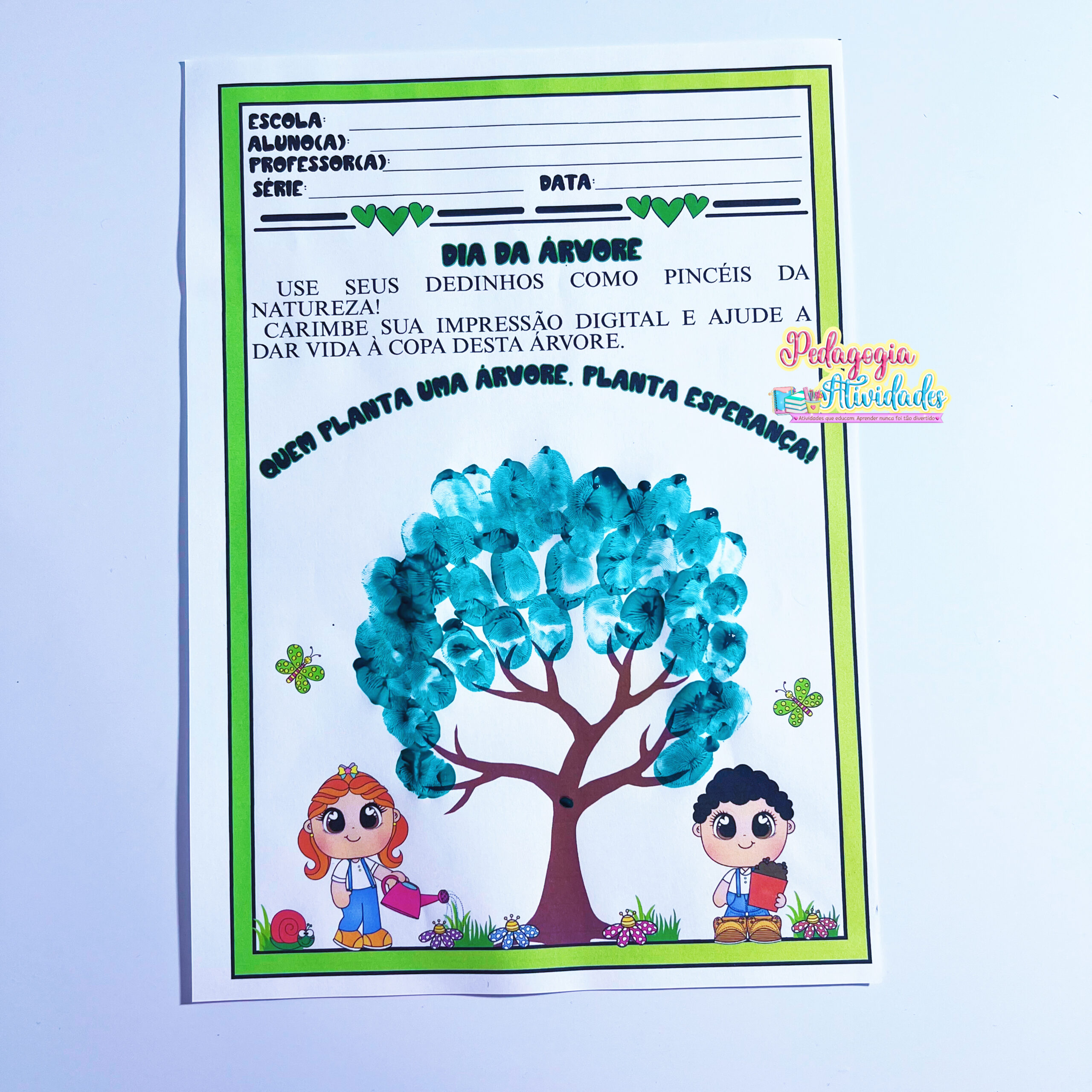 ✨ Acompanha também uma atividade pedagógica: folha para carimbar as digitais formando uma árvore.