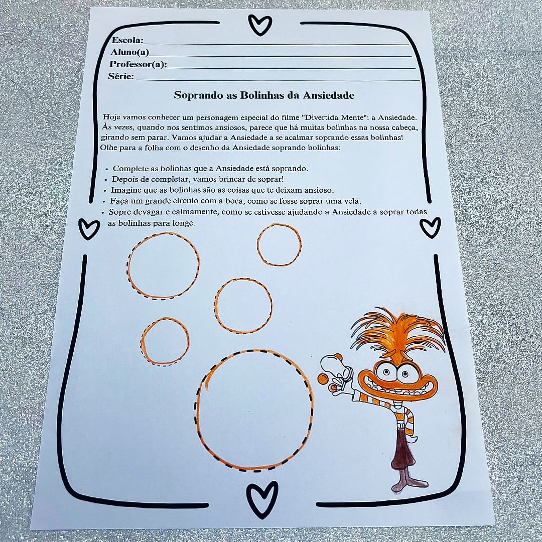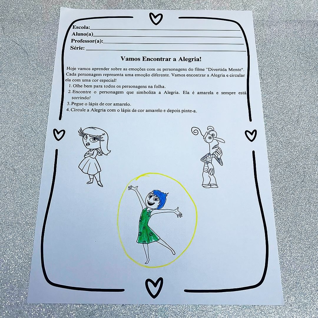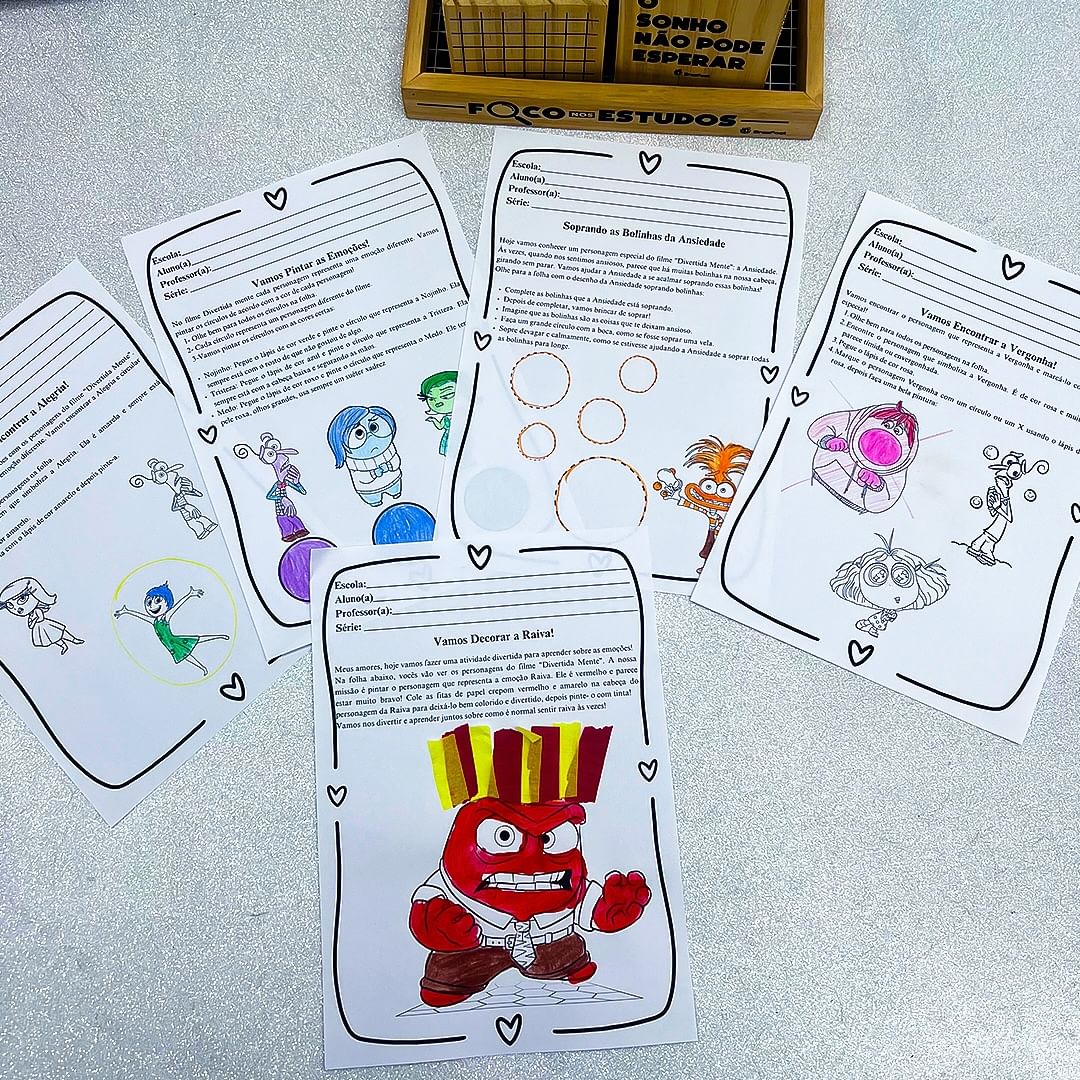 Uma maneira divertida e educativa de ajudar as crianças a identificarem e expressarem suas emoções de forma lúdica e criativa. Inspirado no filme Divertida Mente, este material é ideal para trabalhar as emoções como raiva, alegria, tristeza, medo, vergonha e ansiedade.